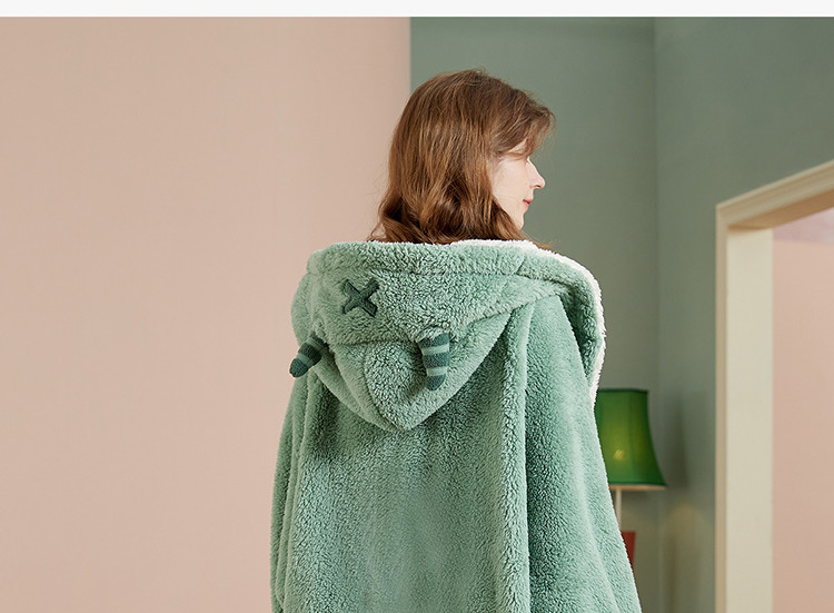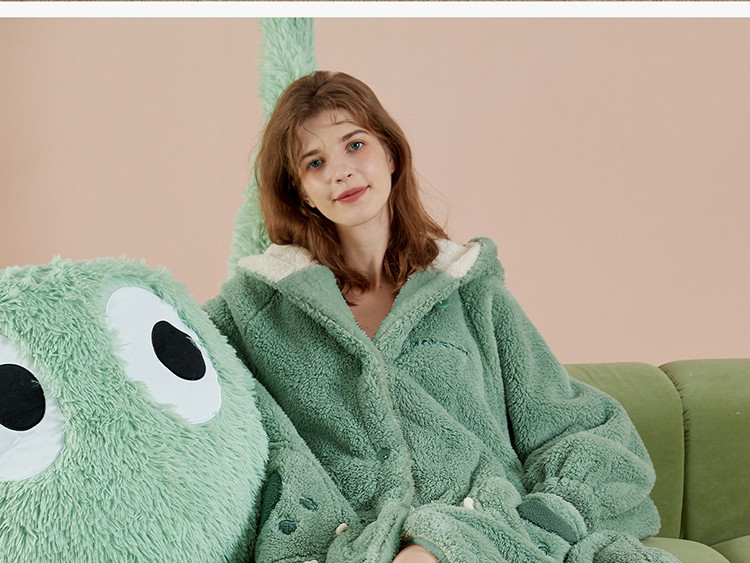 yso冬季女款轻软睡衣卡通可爱珊瑚绒睡袍家居服可外穿D