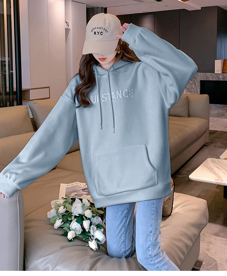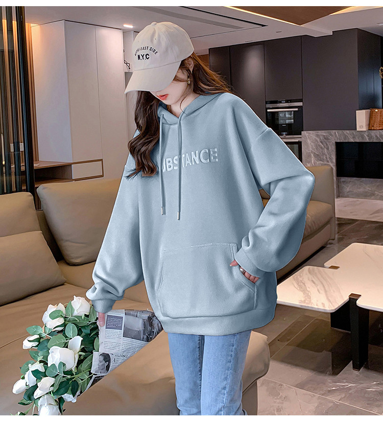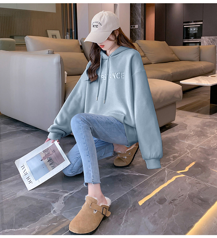 2023秋冬新款女连帽前胸压印字母卫衣时尚遮肉百搭小个子韩版