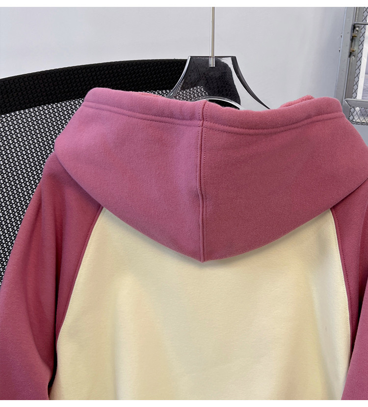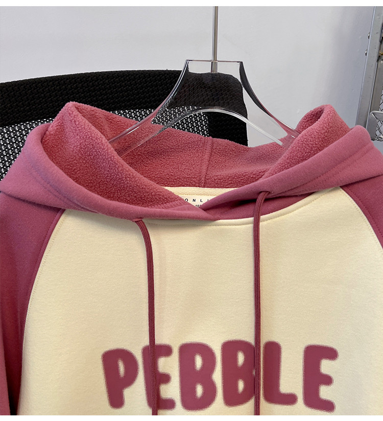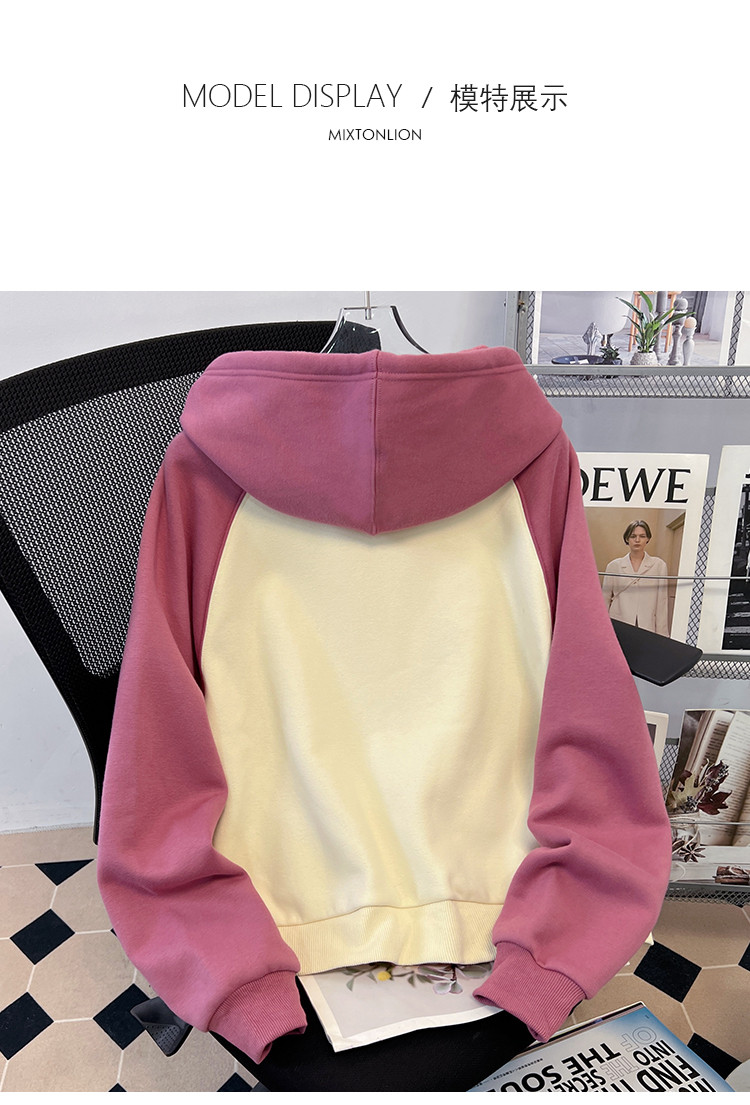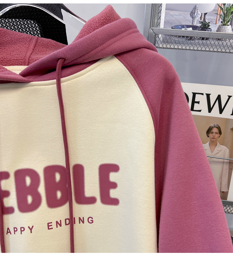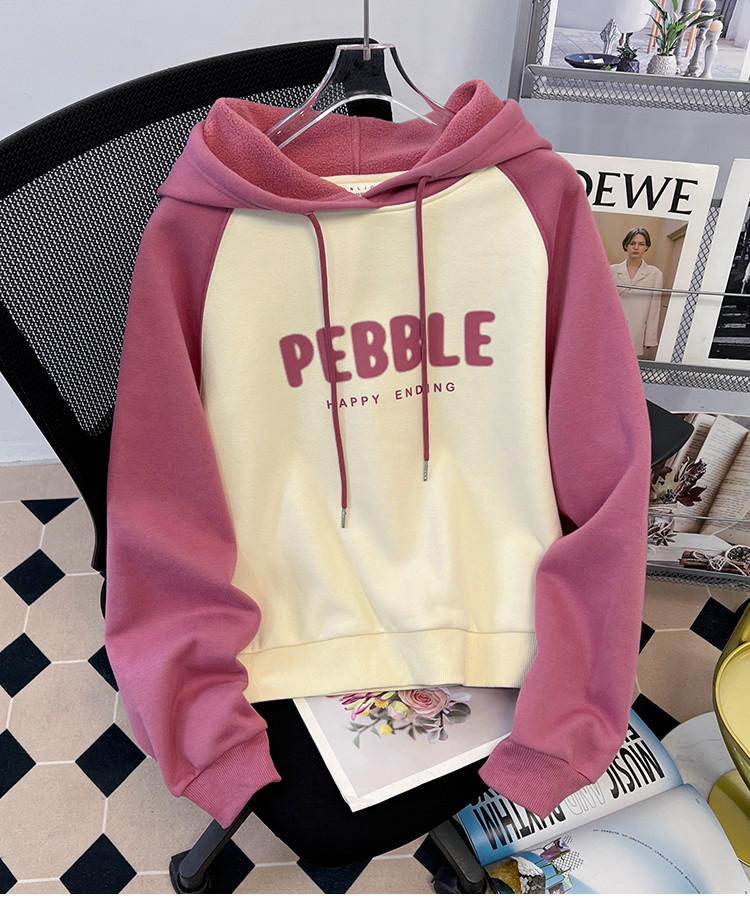 2023秋冬新款女连帽袖子拼接字母短款卫衣减龄小众学院风百搭
