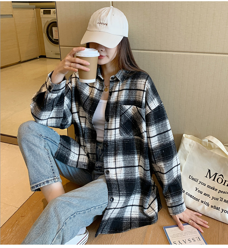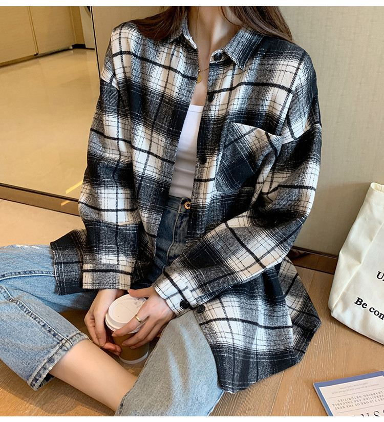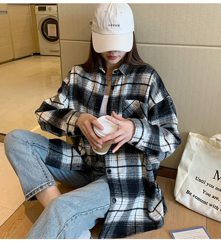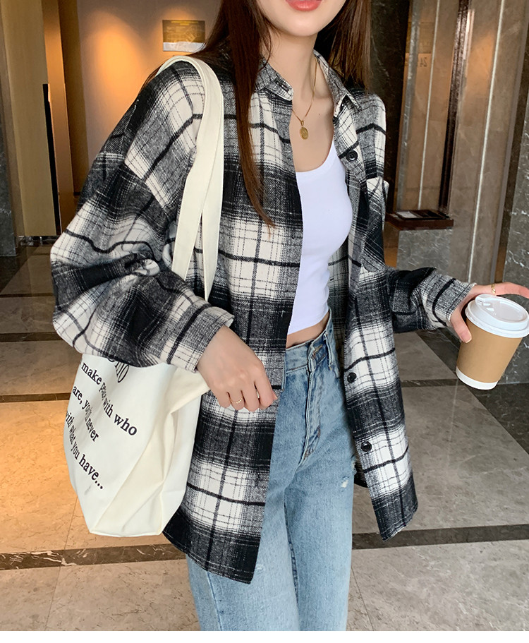 2023秋冬新款女翻领格纹长袖衬衫百搭时髦显瘦气质潮流ins