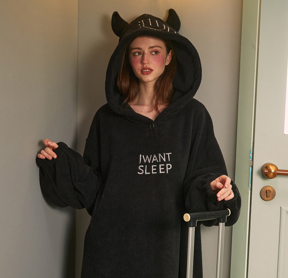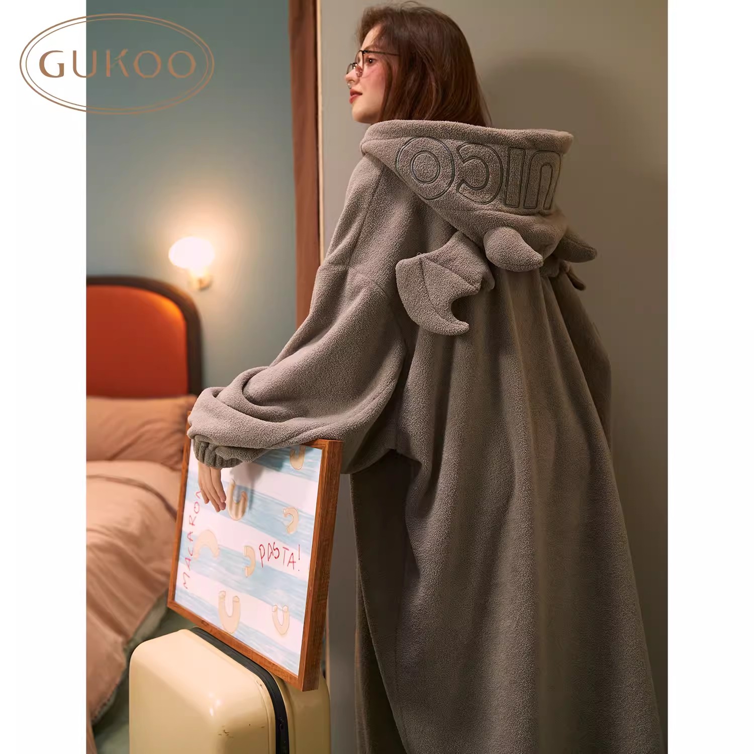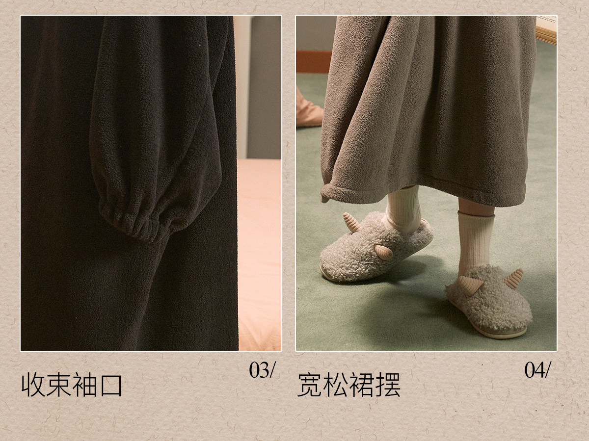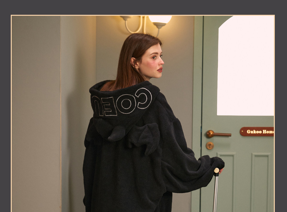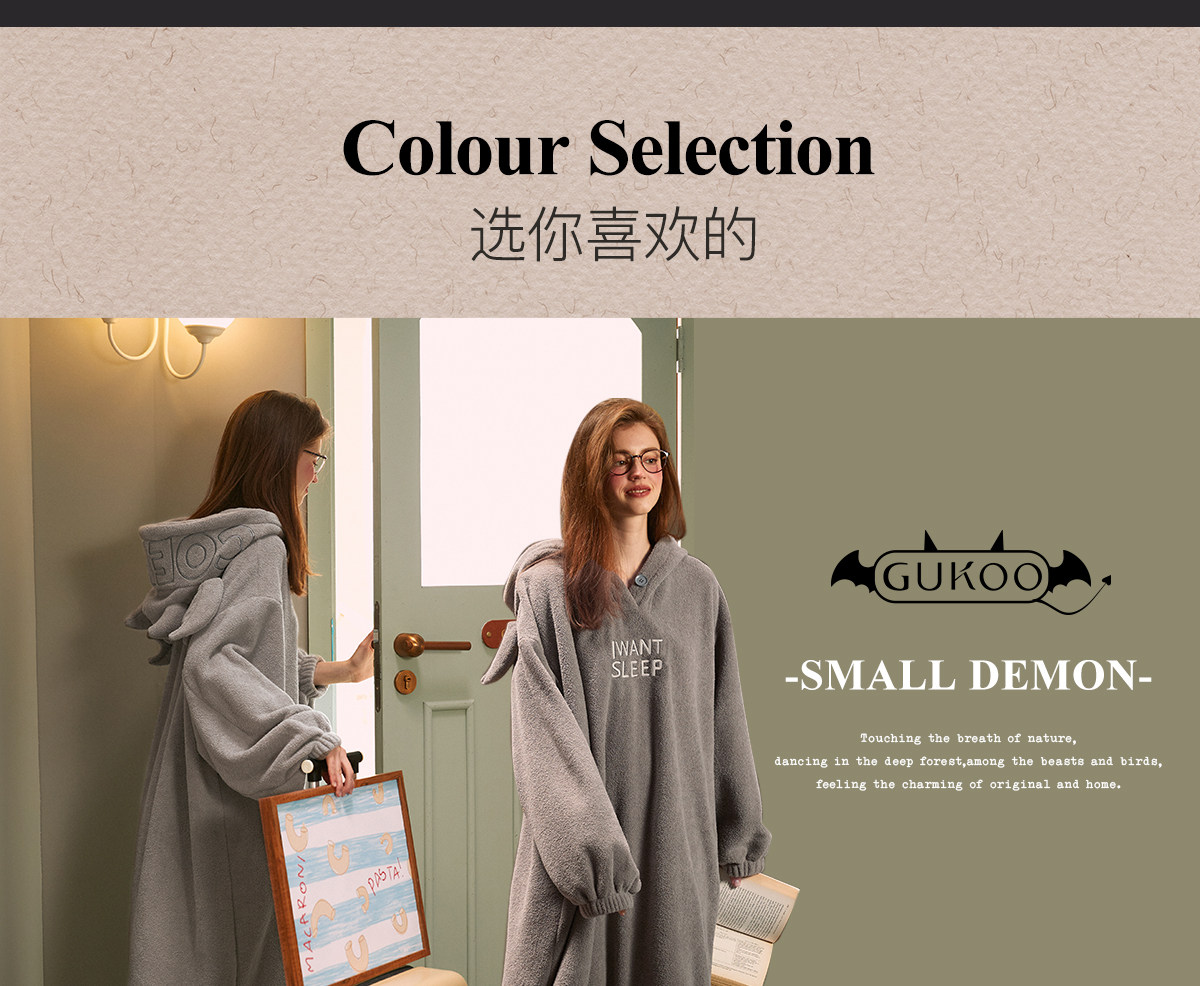 Gukoo/果壳睡袍女冬长款睡裙女冬睡衣女薄款万圣节小恶魔家居服D