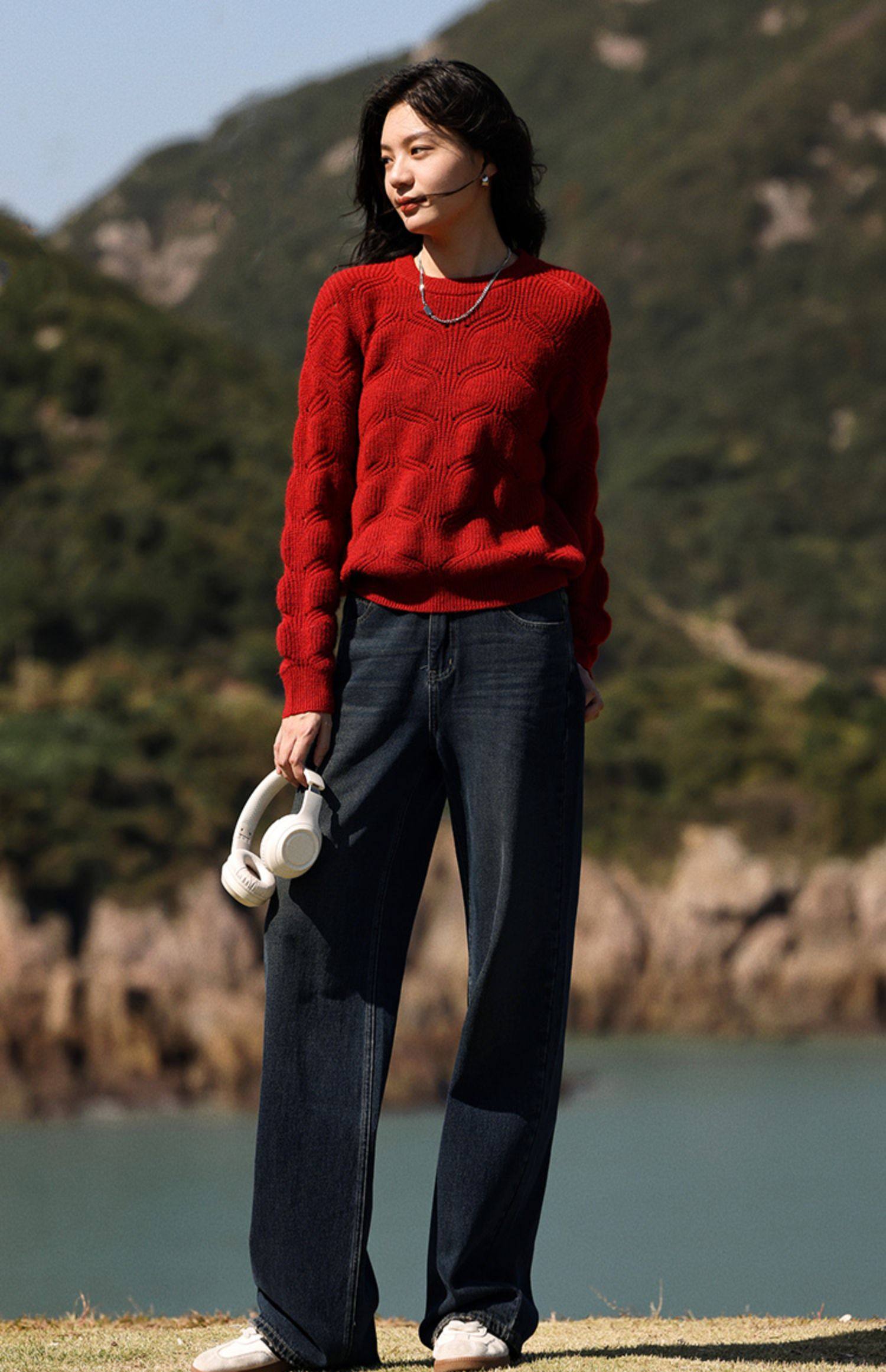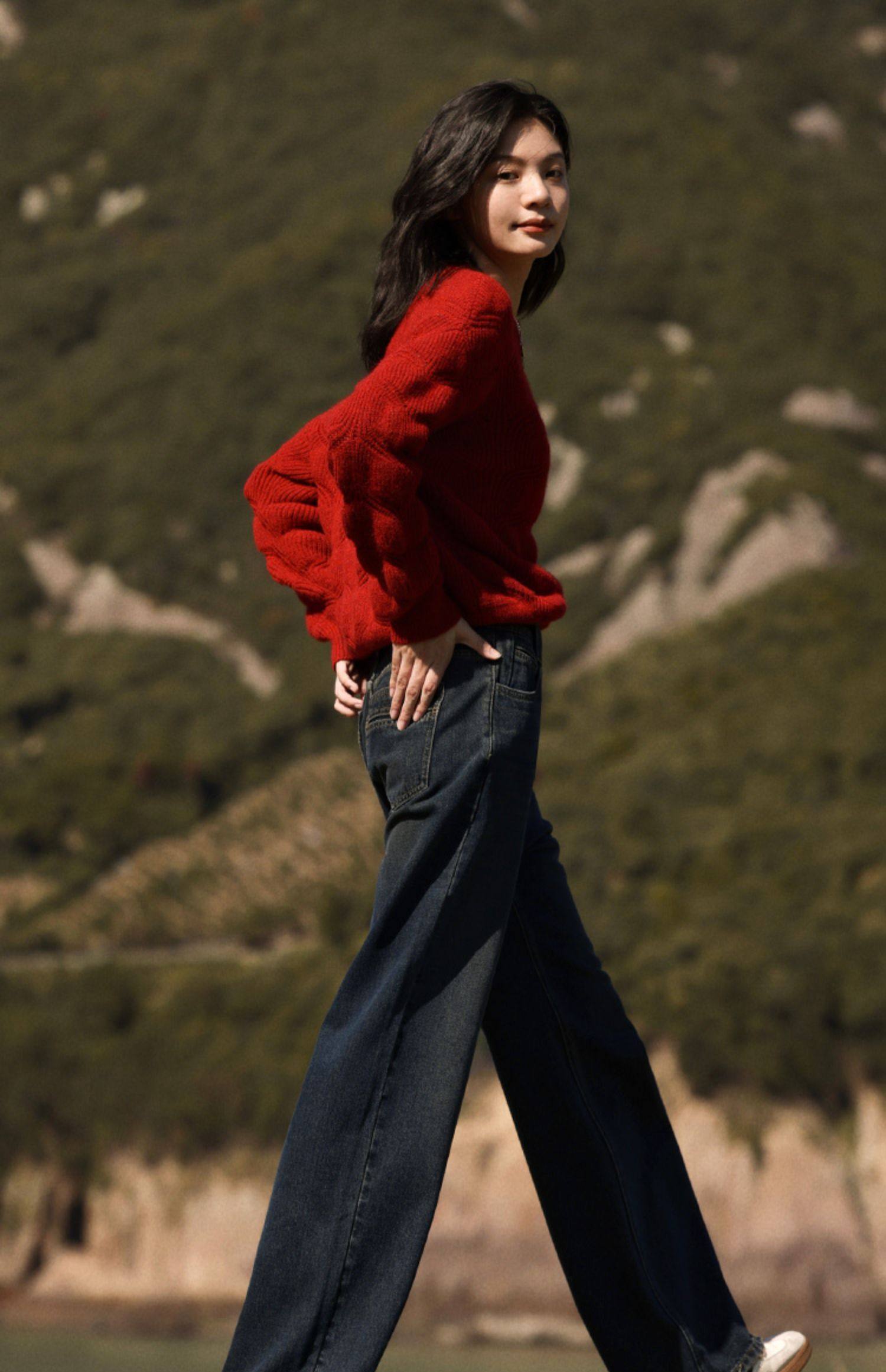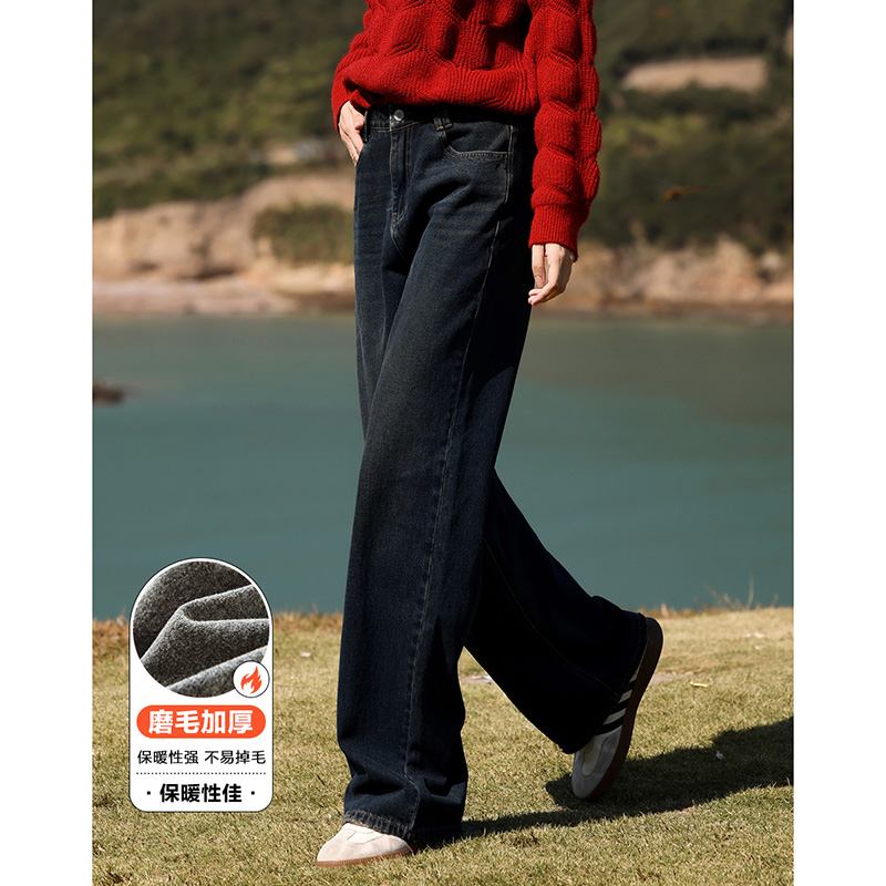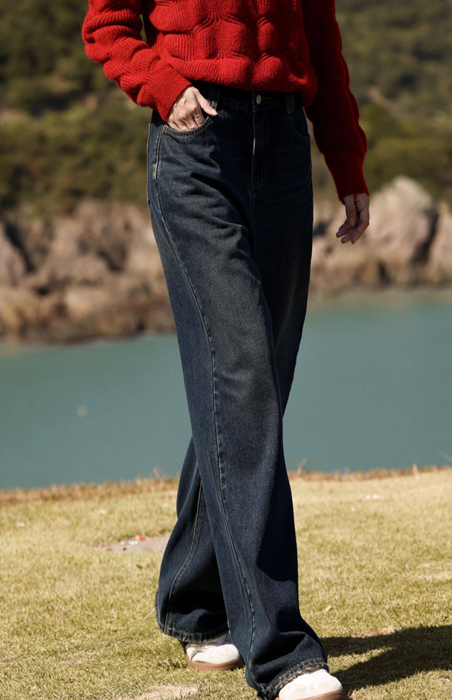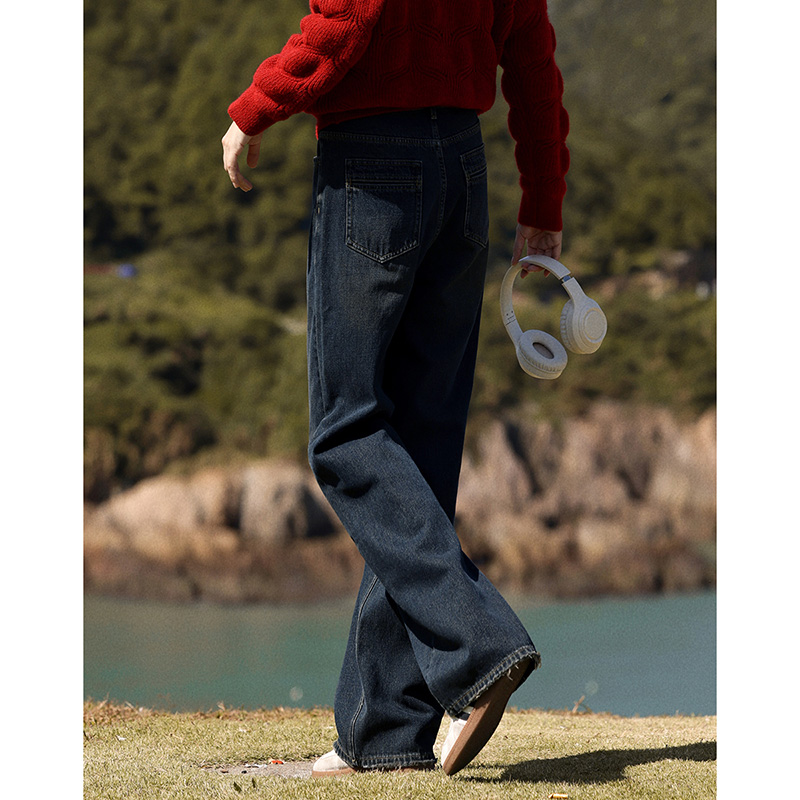 德玛纳春复古蓝色牛仔裤女时尚垂感直筒阔腿裤宽松显高显瘦