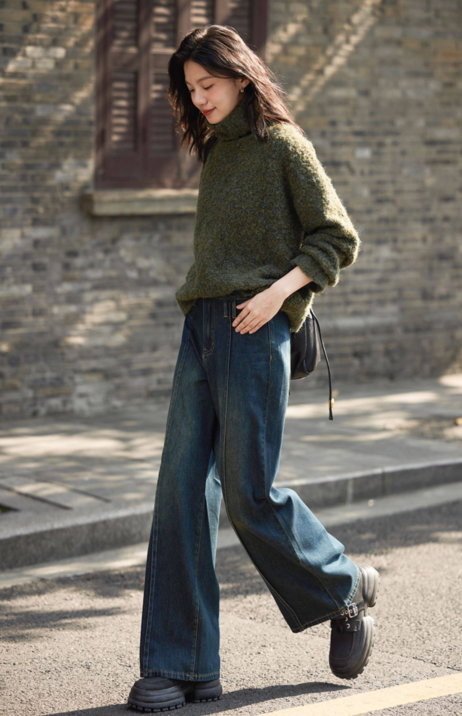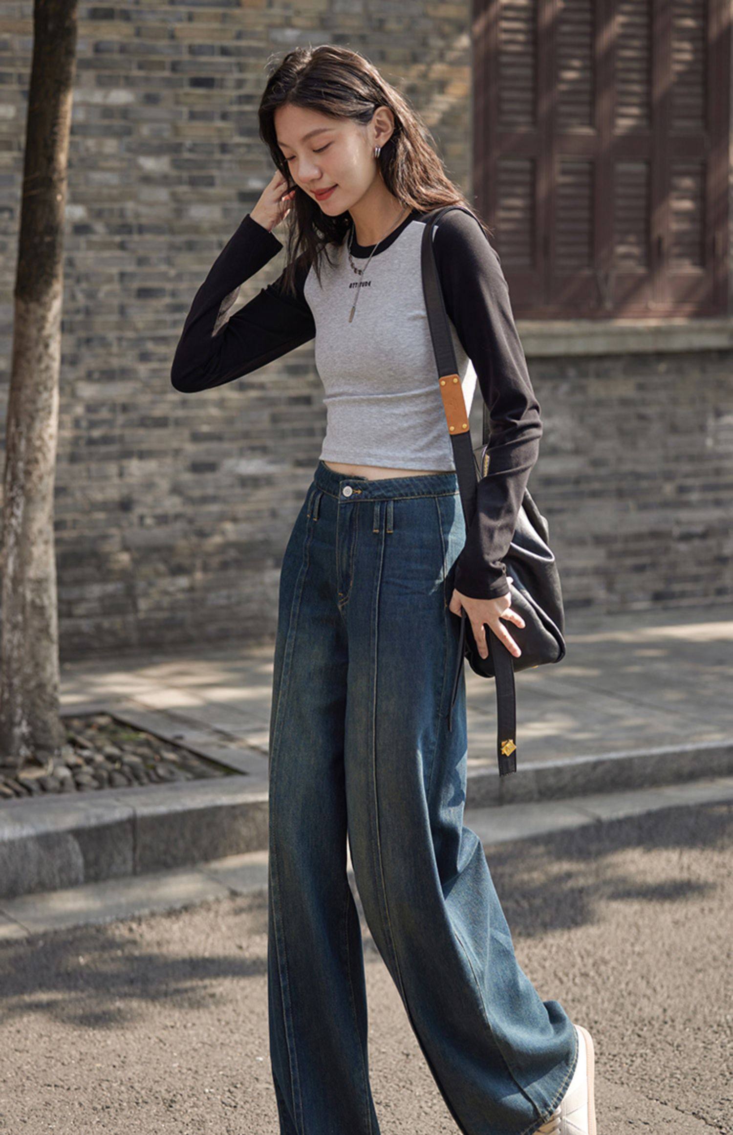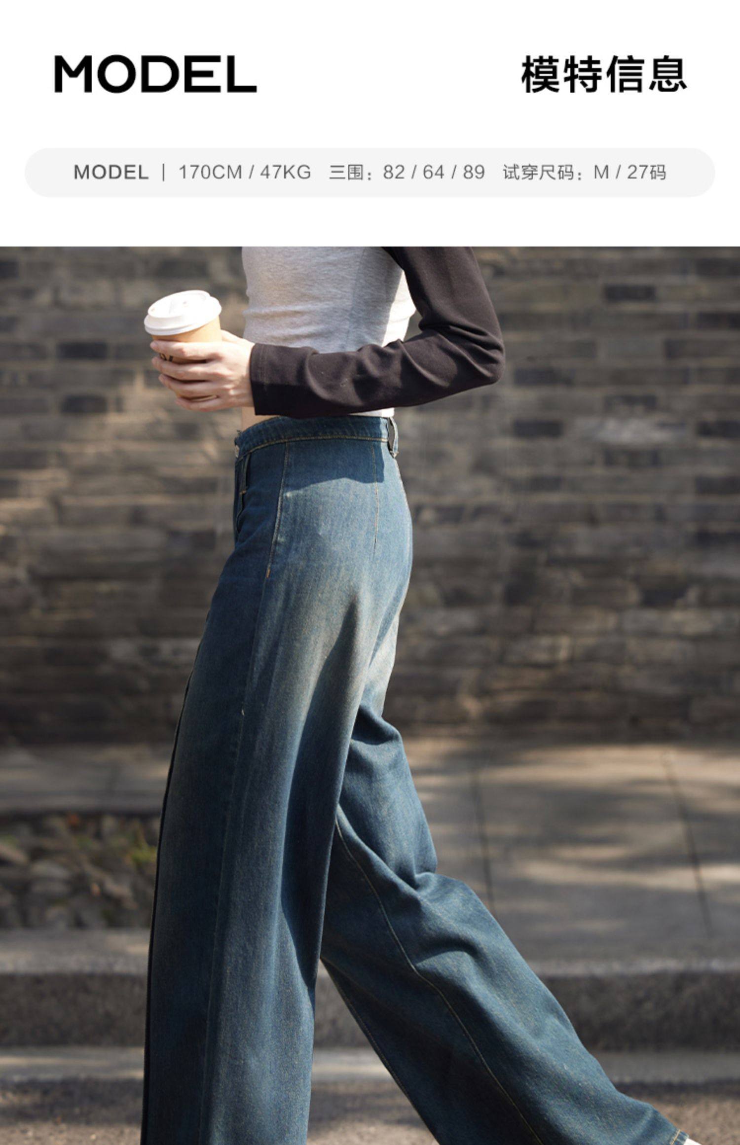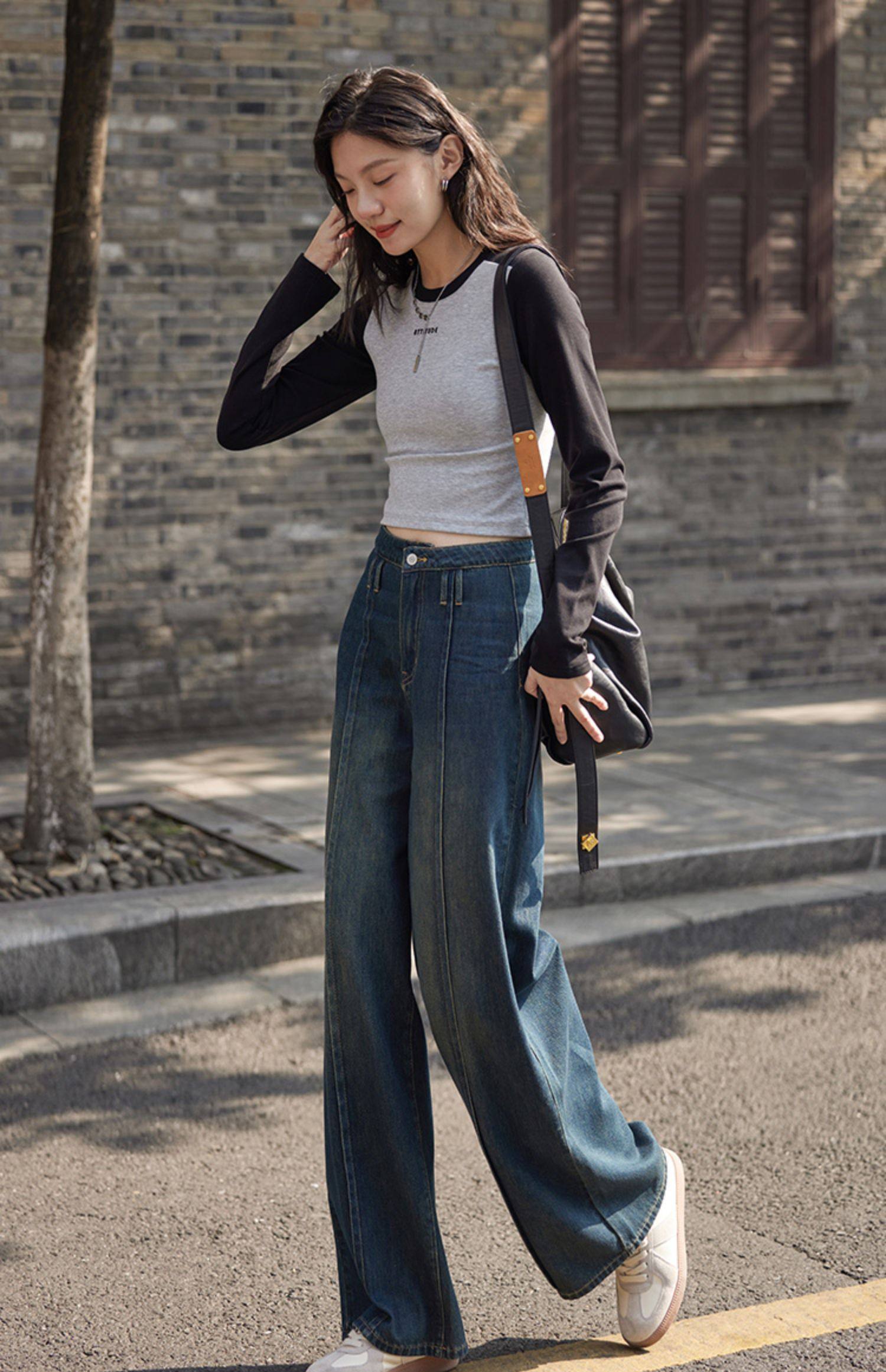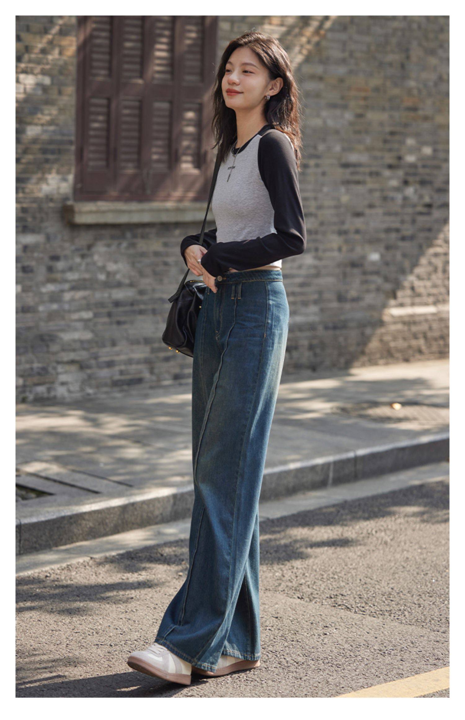【个性裤袢牛仔裤】立体显腿直宽松廓形显瘦个性牛仔长裤
