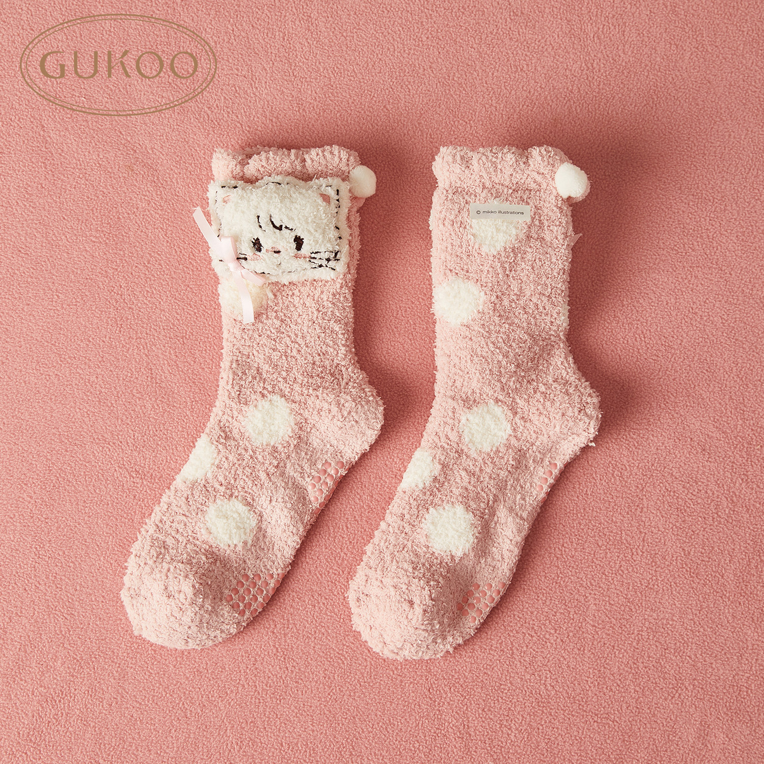 果壳中筒袜女冬季mikko联名新款雪尼尔保暖可爱女士袜子