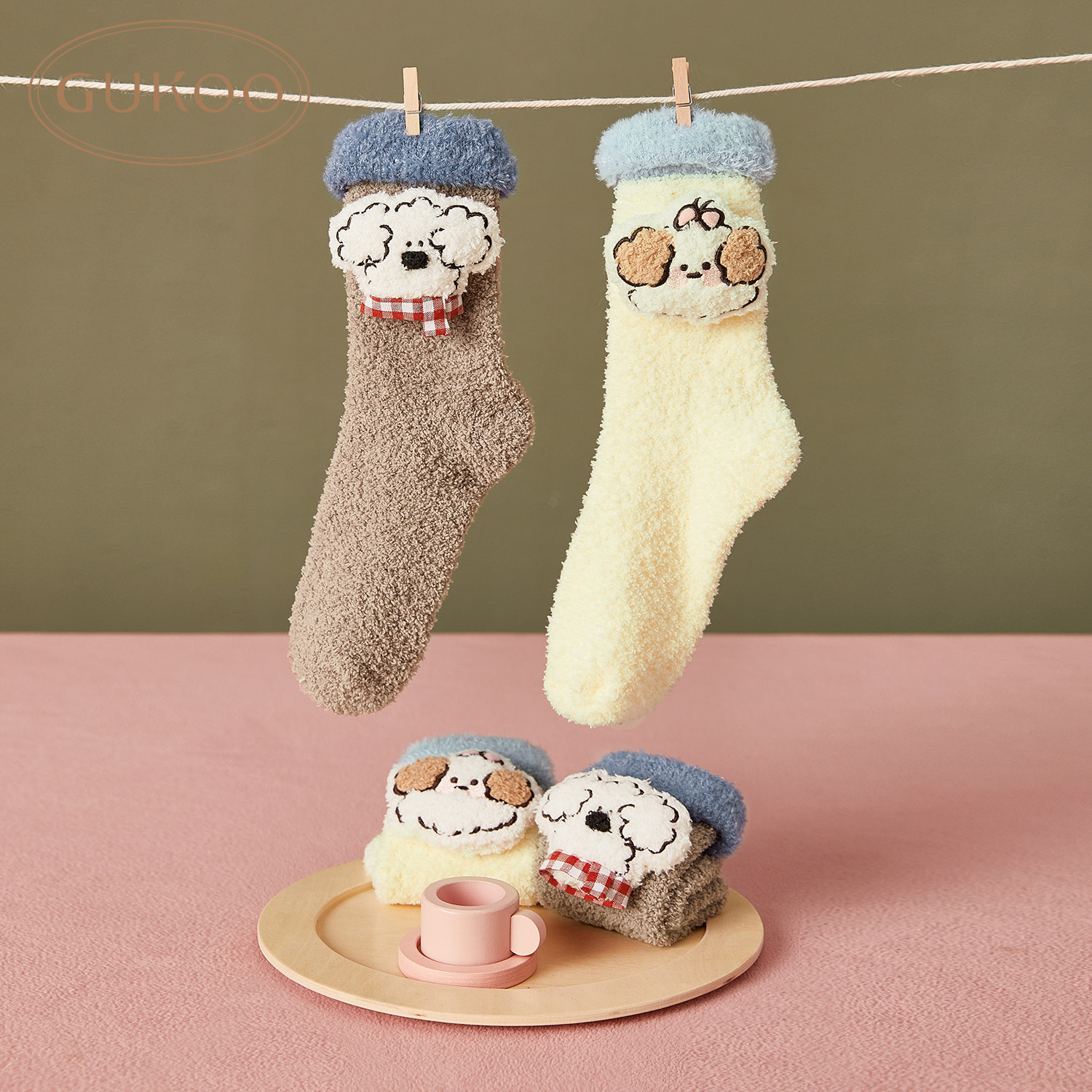 Gukoo/果壳中筒袜女冬季miiiiichan联名新款毛绒保暖可爱女士袜子