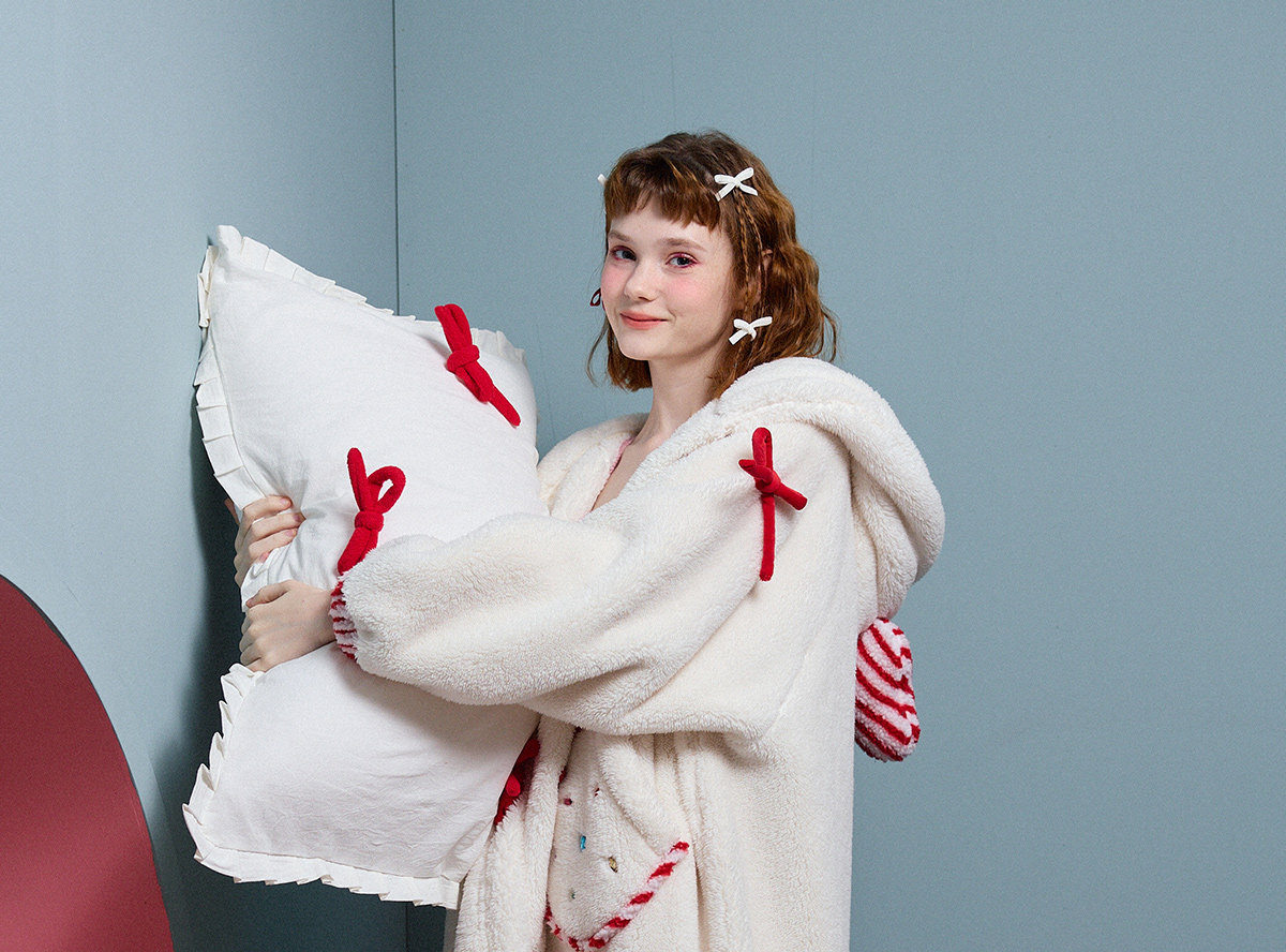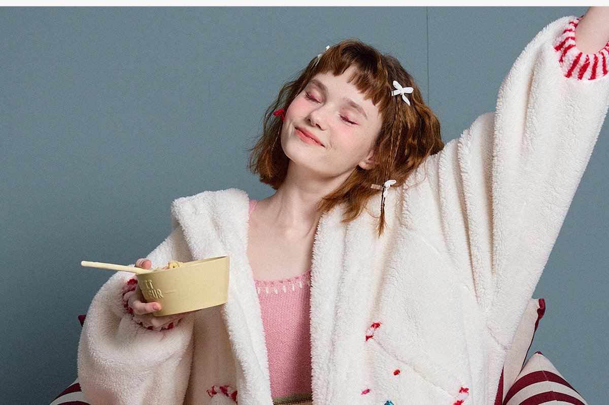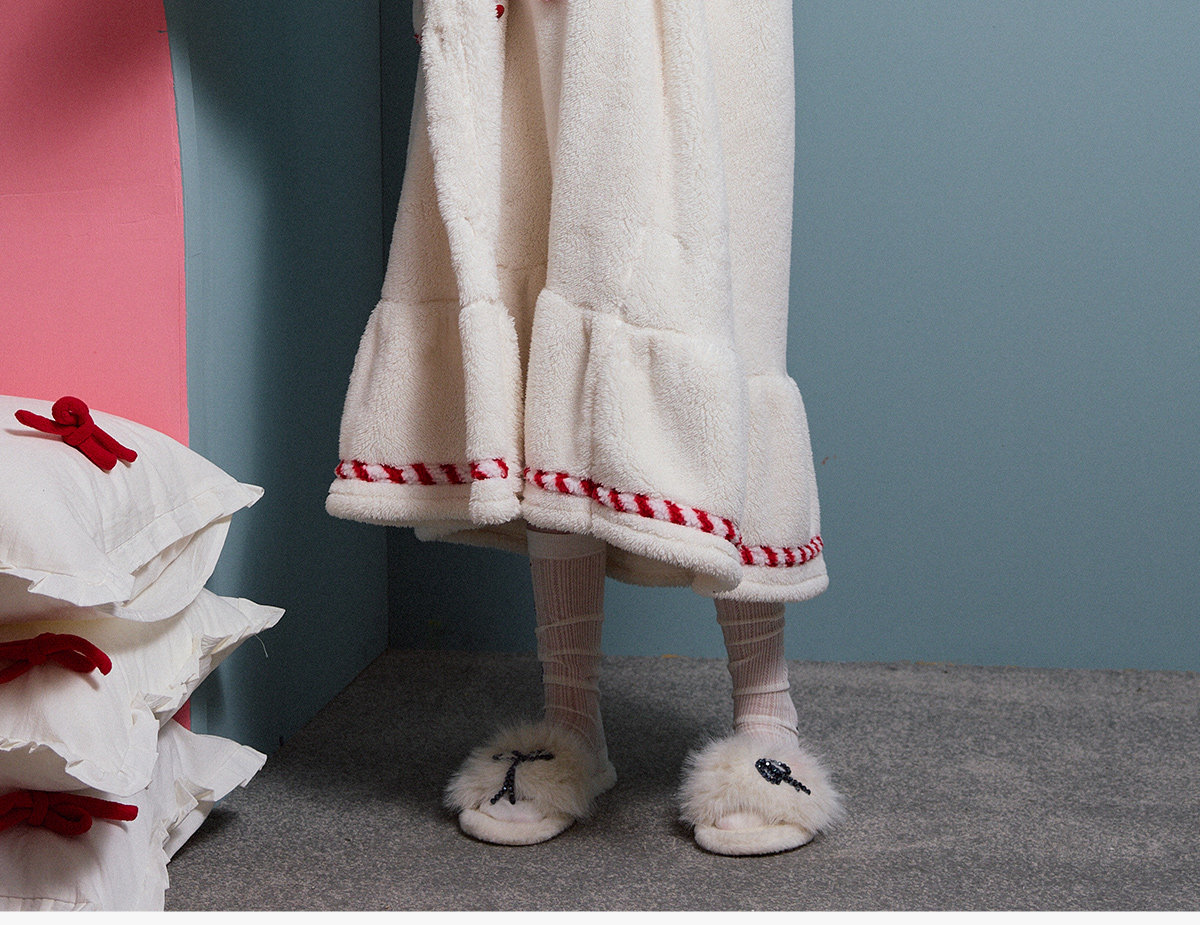 yso【礼物系列】睡袍女冬季睡衣女珊瑚绒睡袍加绒新娘晨袍家居服D