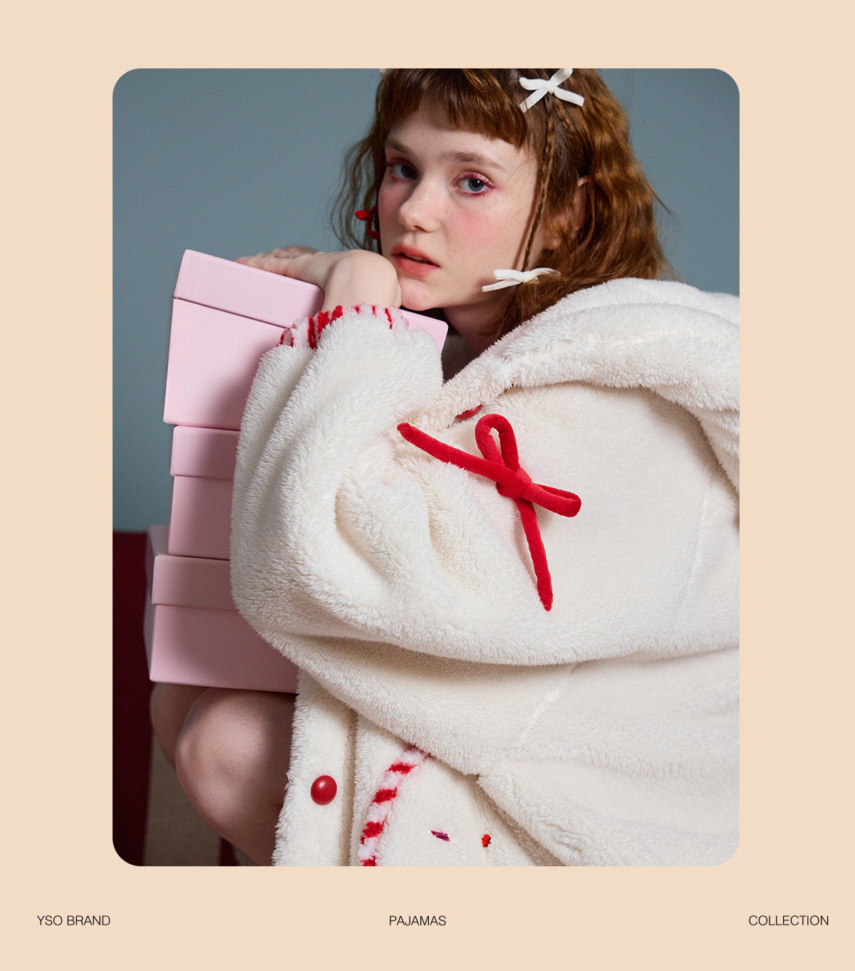 yso【酷猫系列】睡衣女冬季套装雪尼尔半边绒睡衣松弛感家居服女D