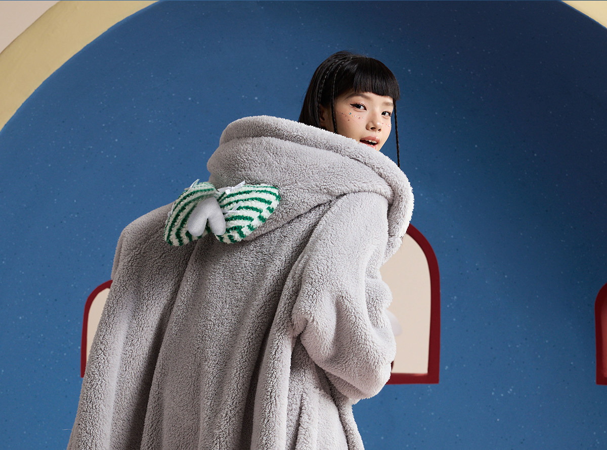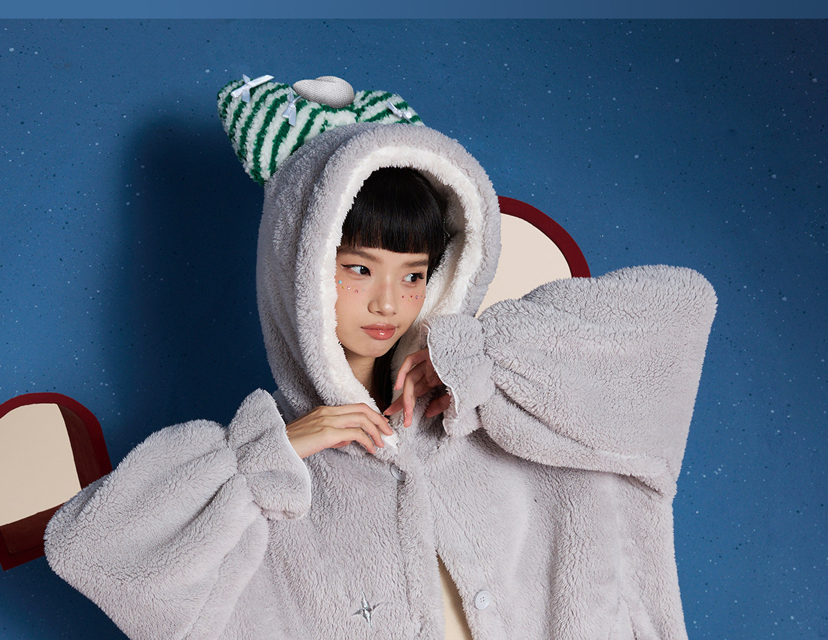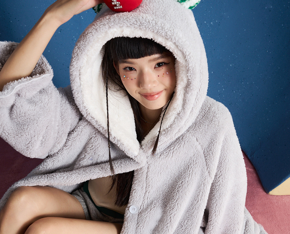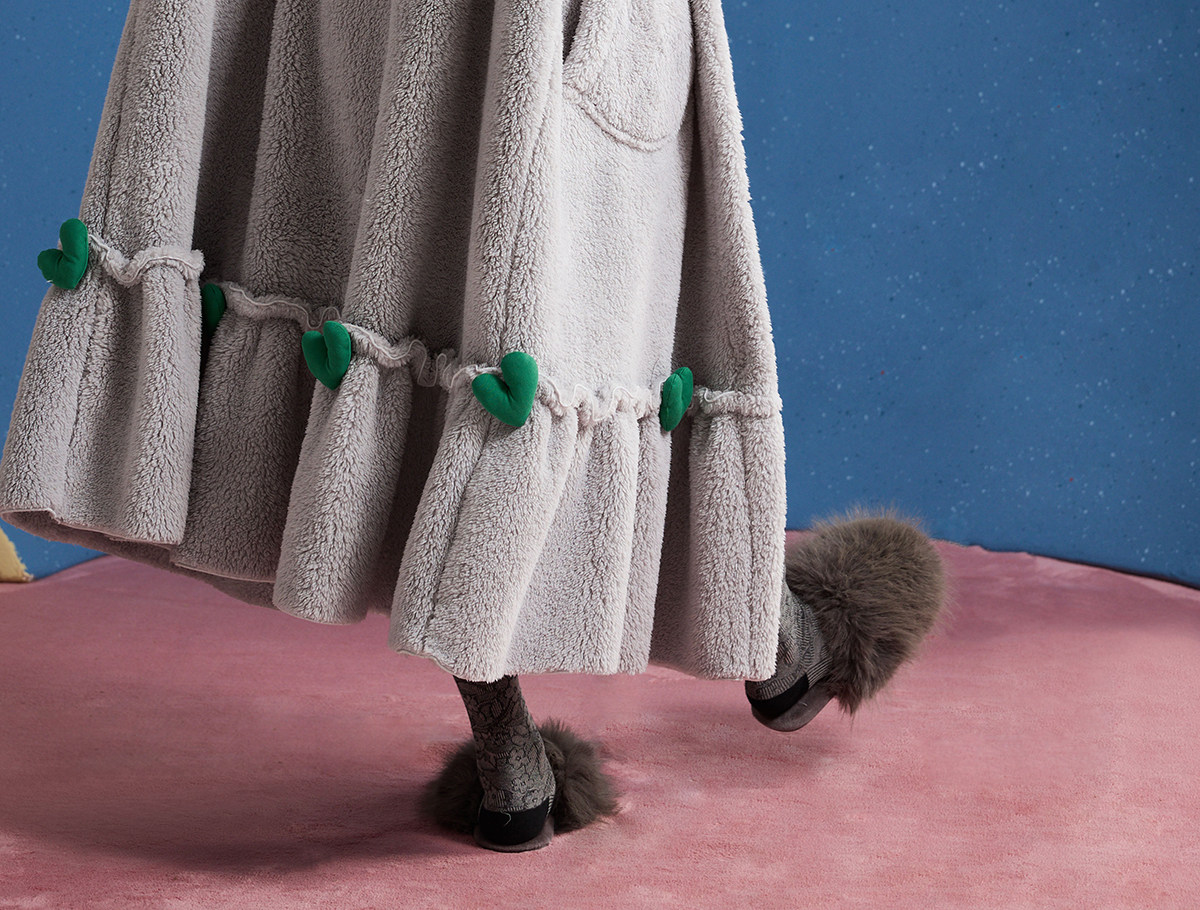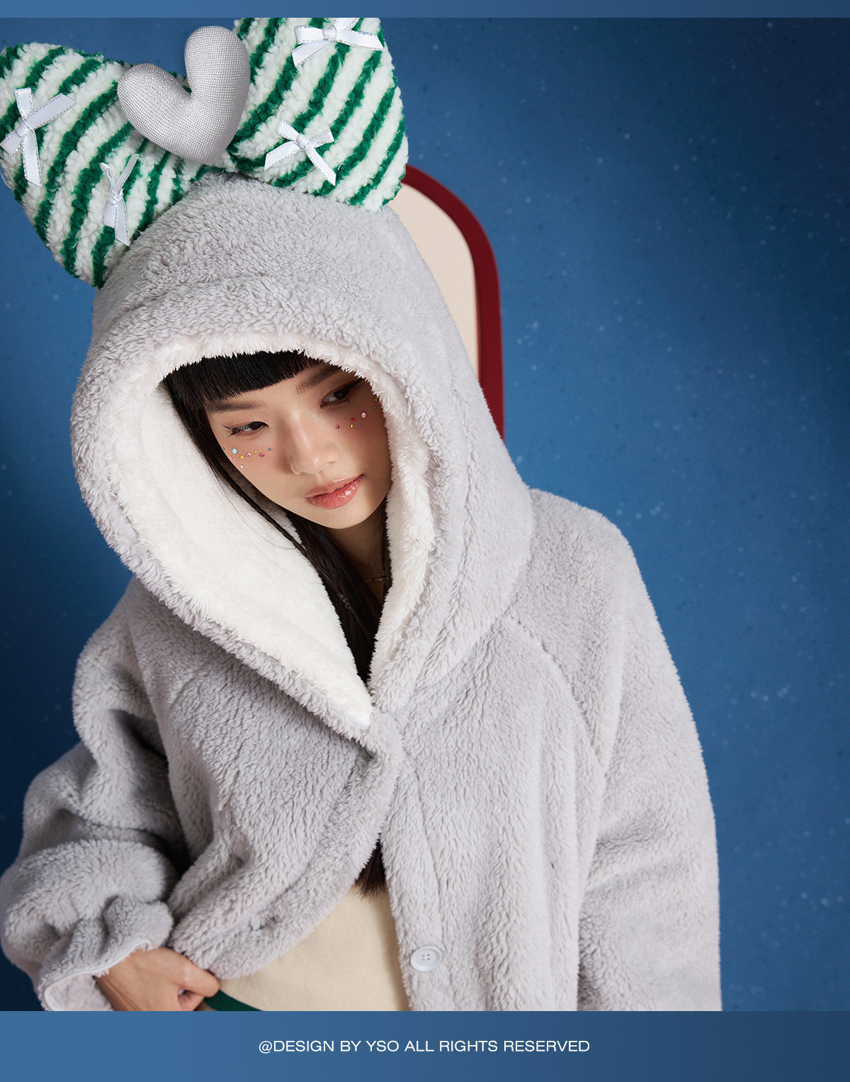 yso【礼物系列】珊瑚绒睡袍女冬季新款甜美爱心长款冬加厚睡袍女D