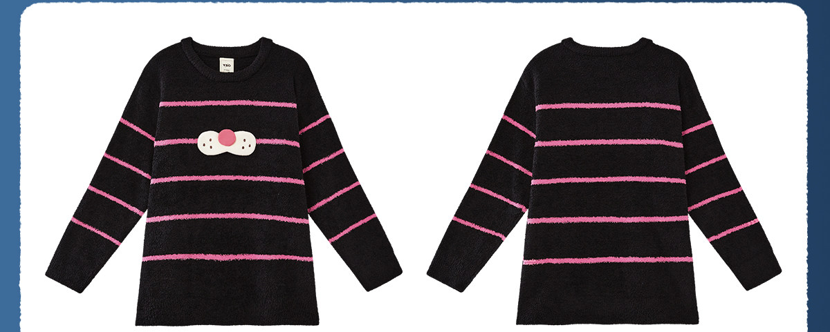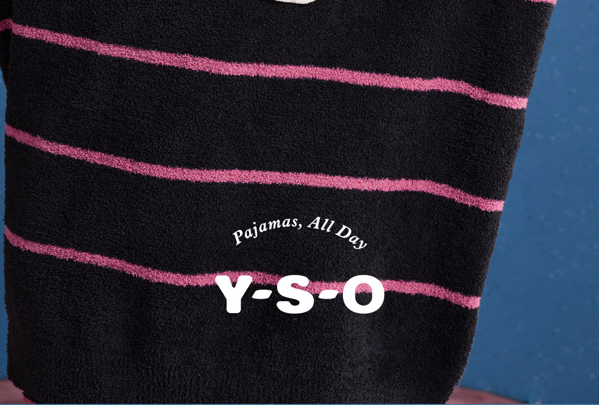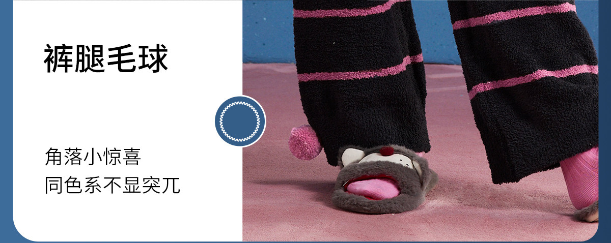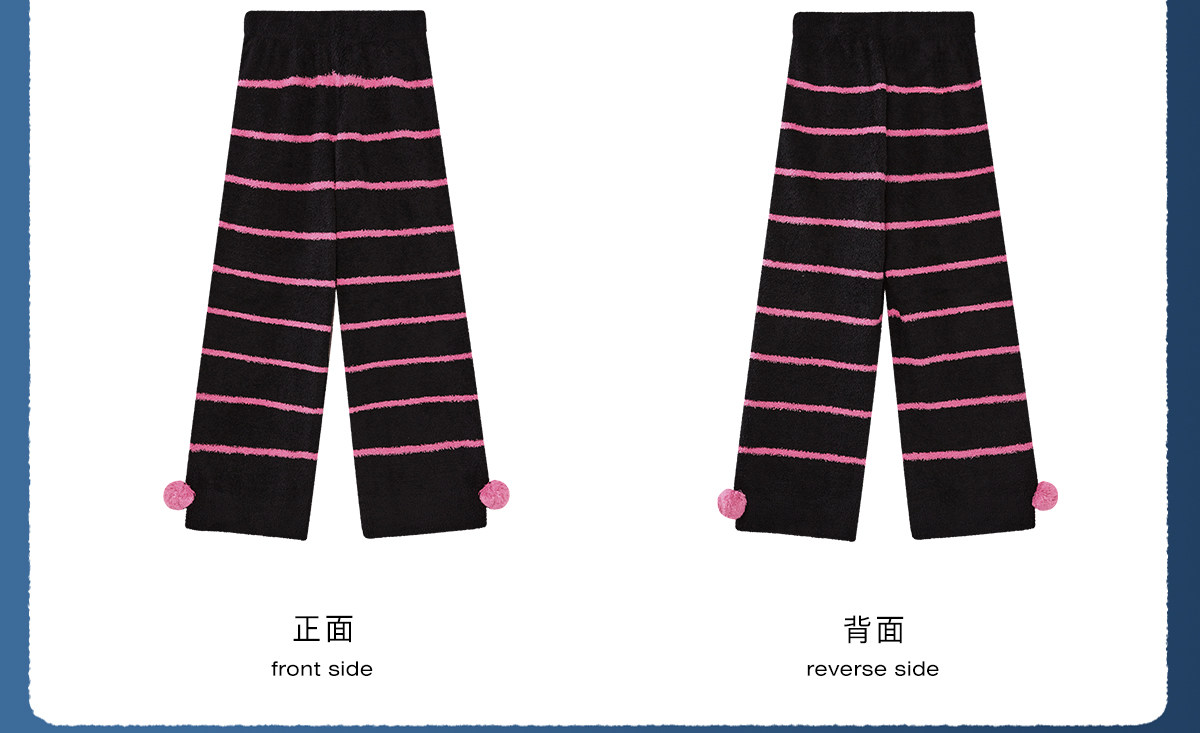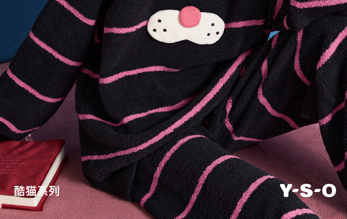yso【酷猫系列】睡衣女半边绒秋冬高级感撞色条纹长袖女士家居服D