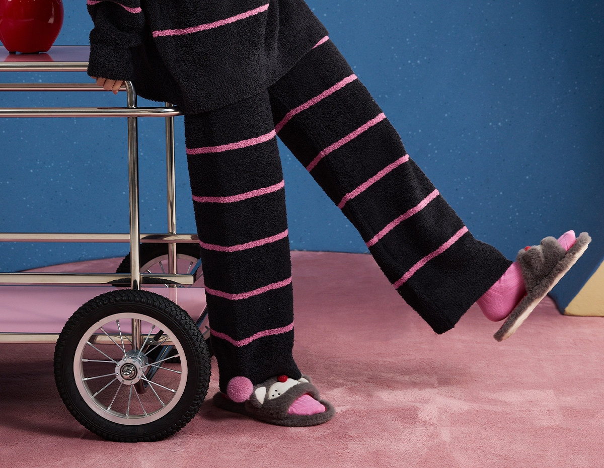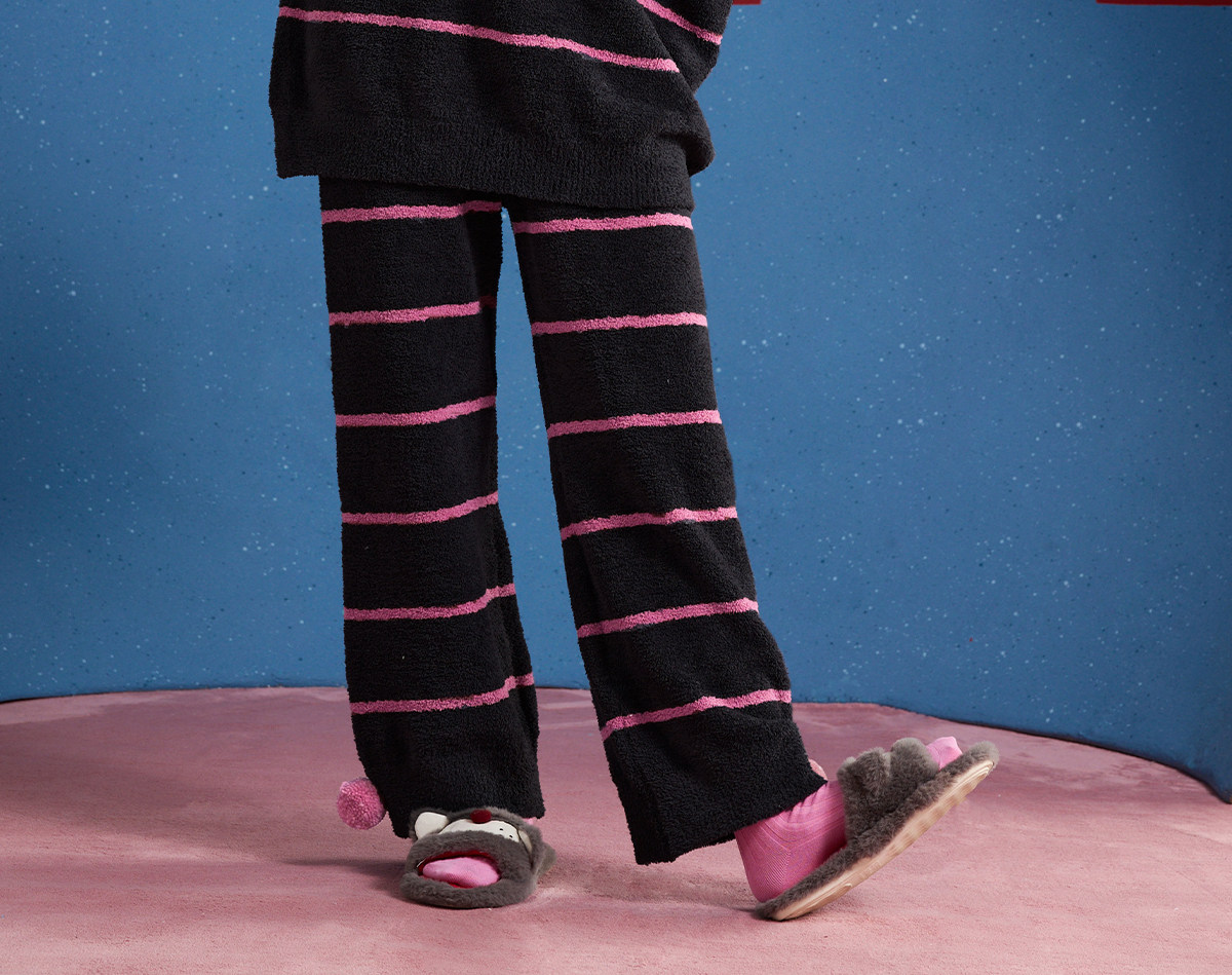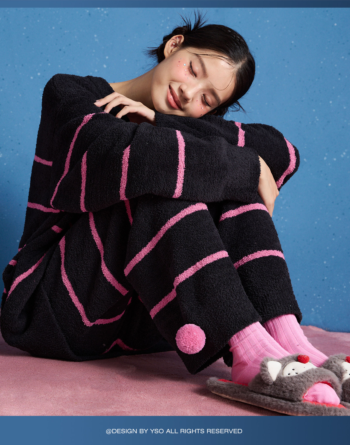 yso【酷猫系列】睡衣女半边绒秋冬高级感撞色条纹长袖女士家居服D
