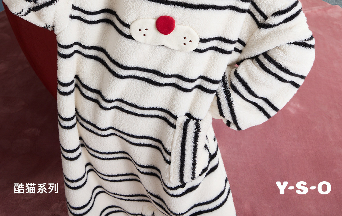 yso【酷猫系列】睡衣女连体睡裙两穿秋冬珊瑚绒可爱长款家居服D