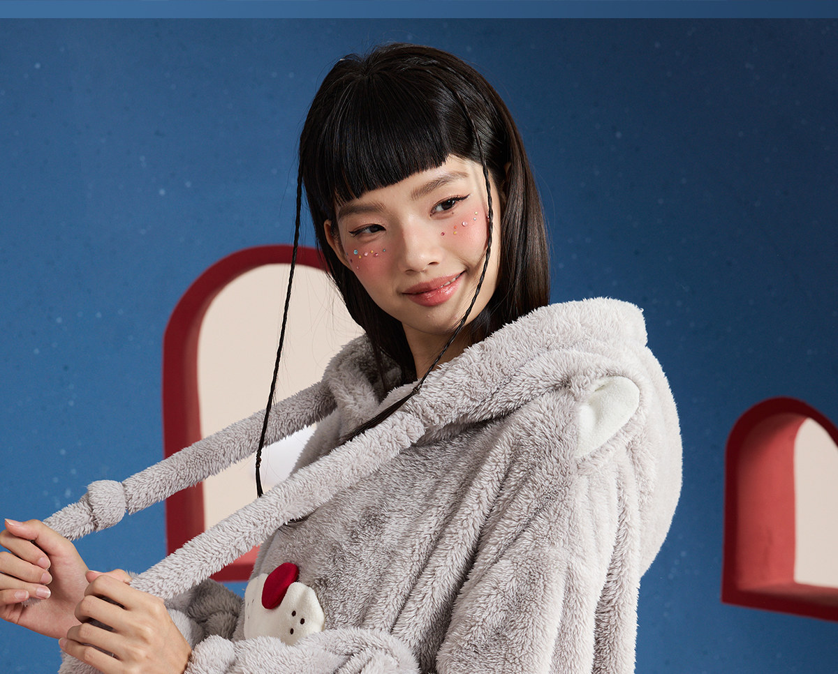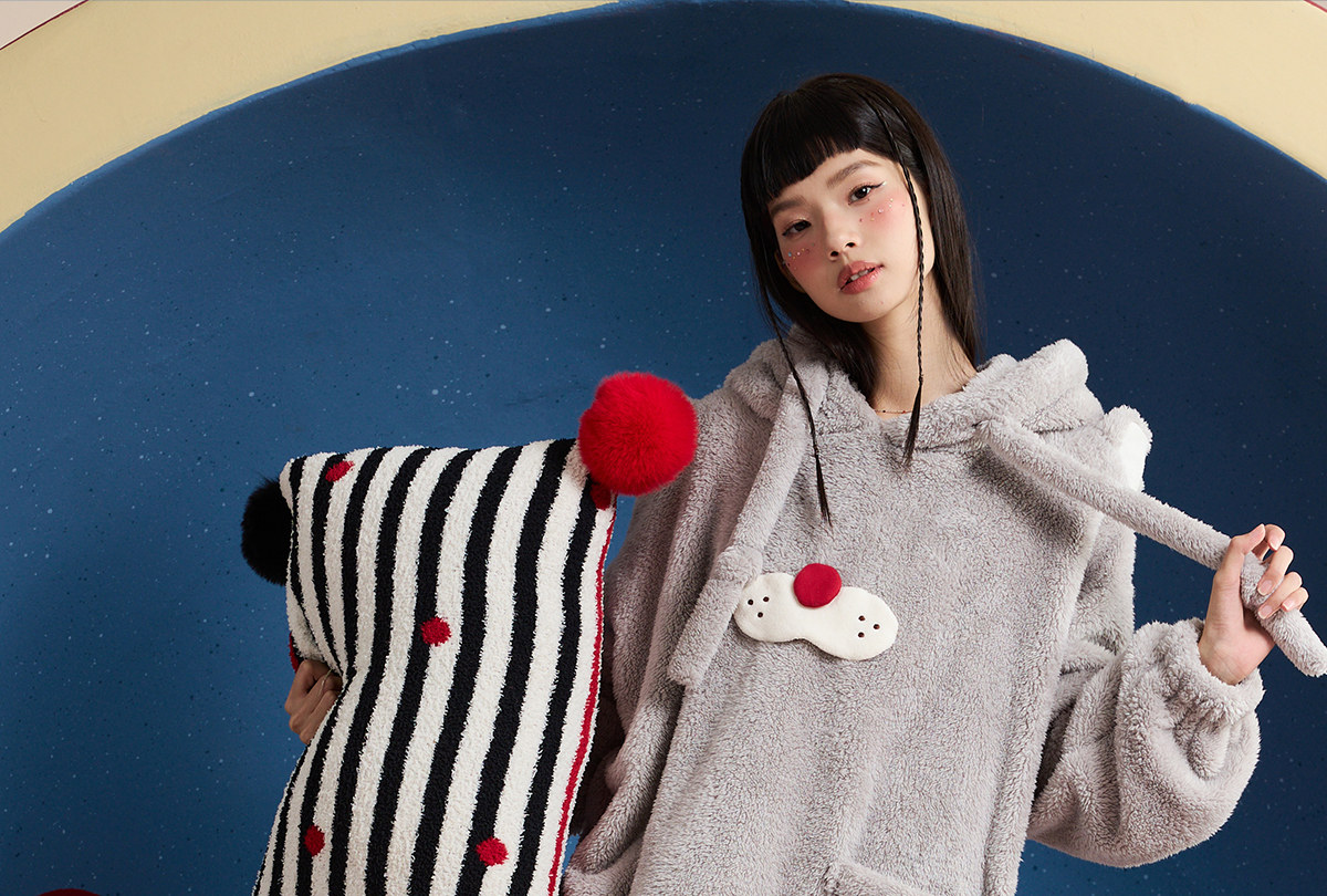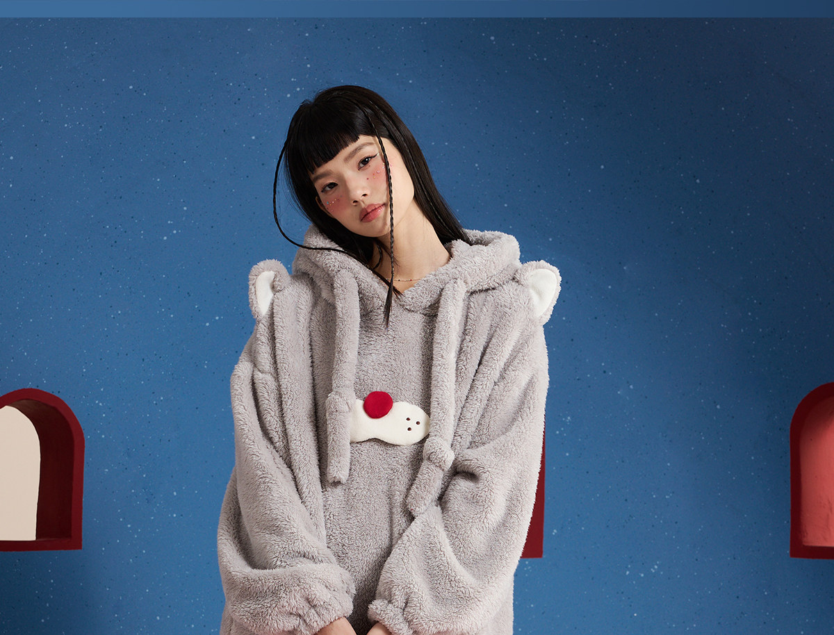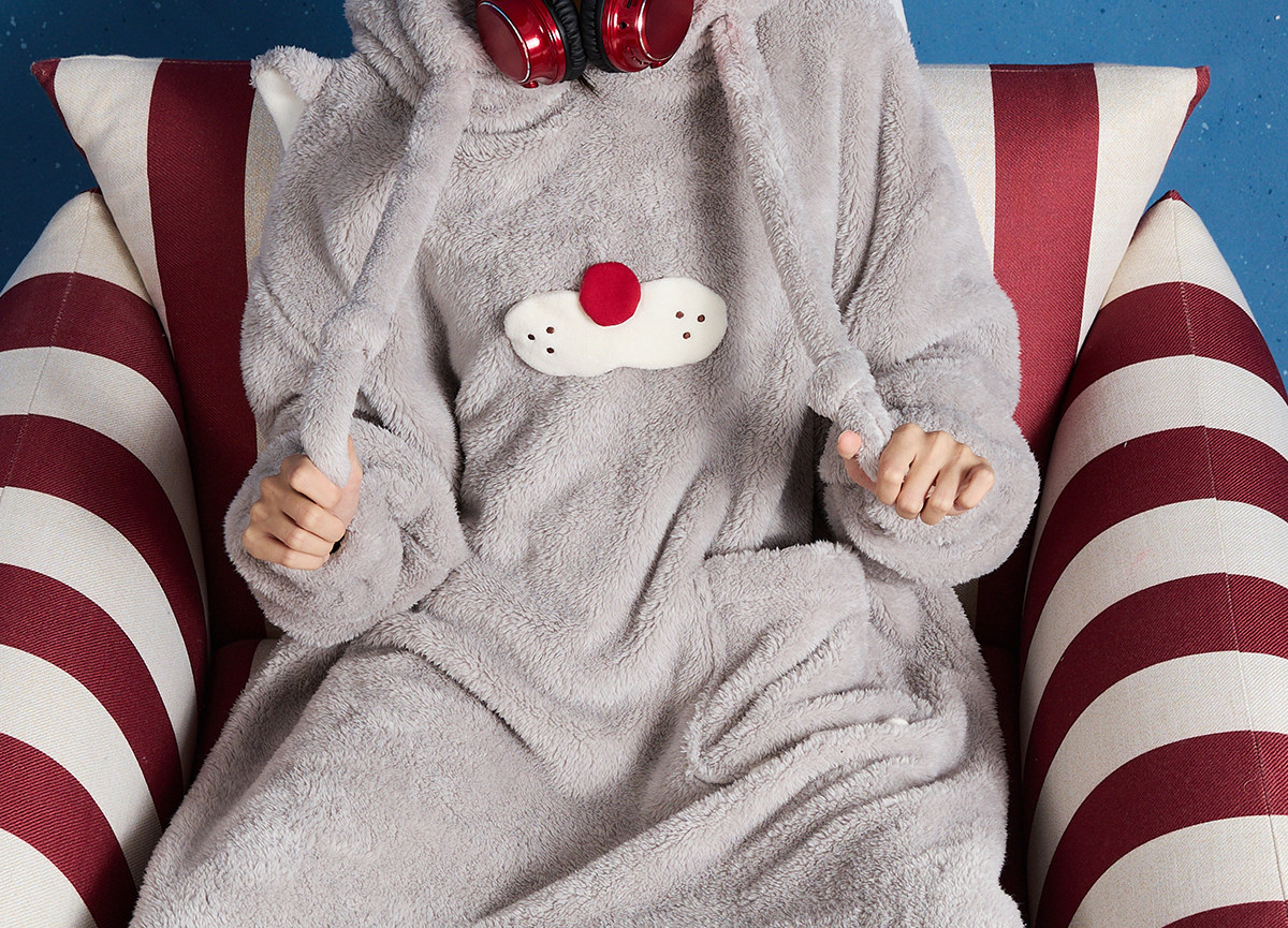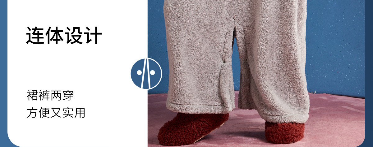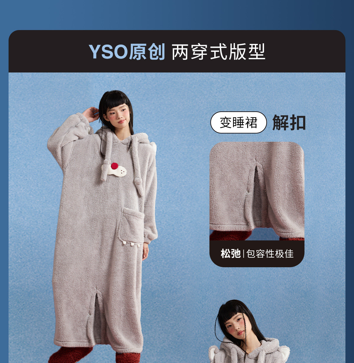 yso【酷猫系列】连体睡衣女款秋冬新款珊瑚绒长款睡裙两穿家居服D