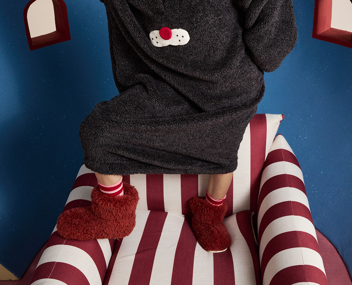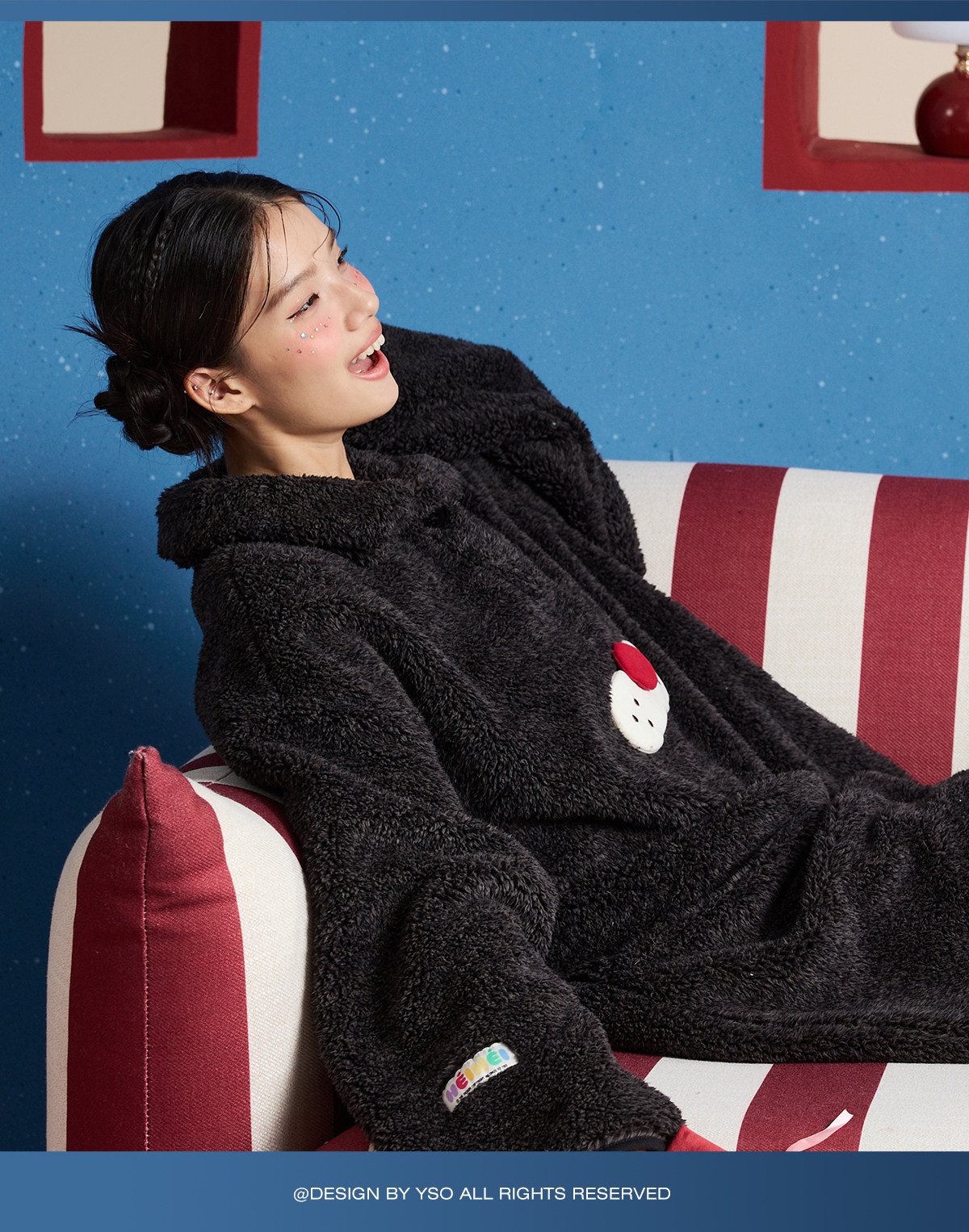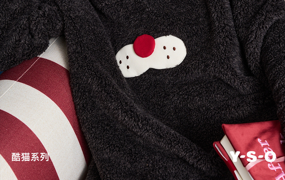 yso【酷猫系列】睡裙女秋冬简约珊瑚绒长款加绒睡衣可外穿家居服D
