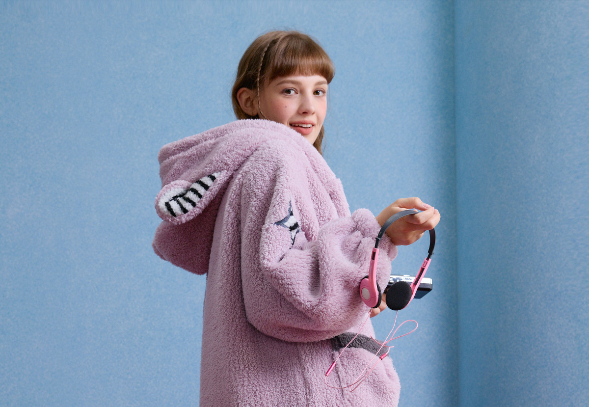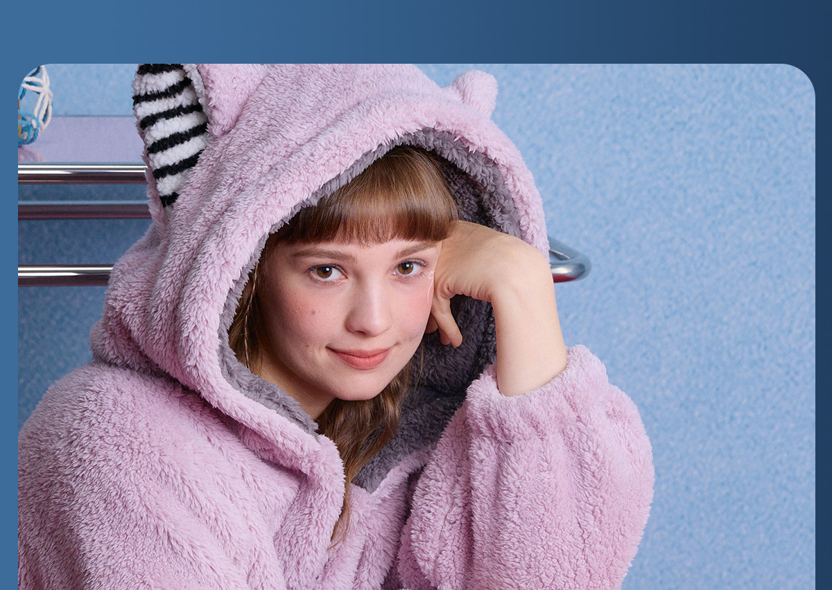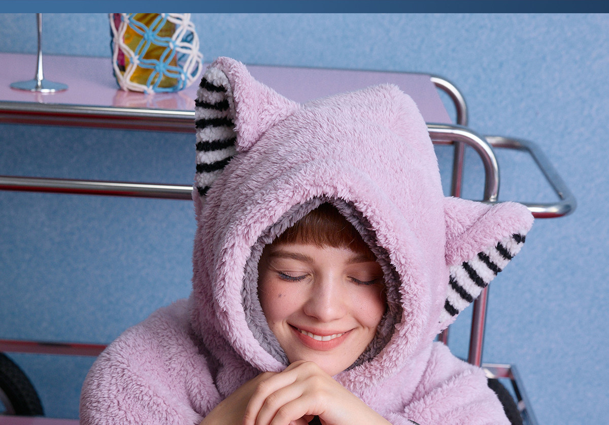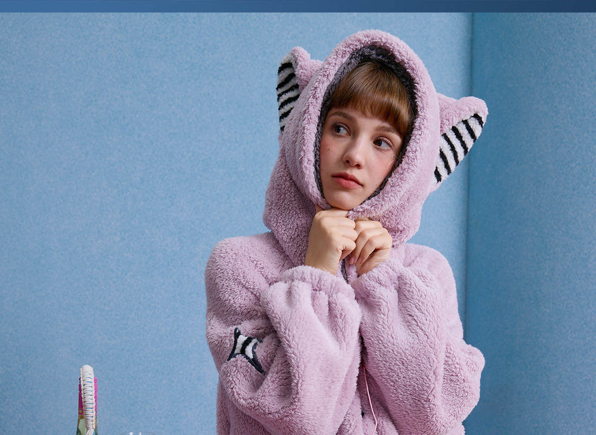 yso【酷猫系列】睡袍女秋冬珊瑚绒加绒睡衣可爱猫咪法兰绒家居服D