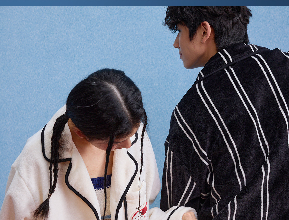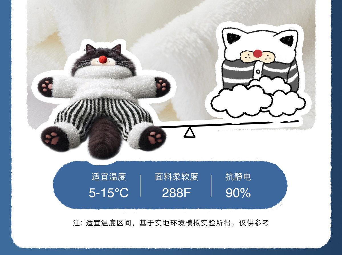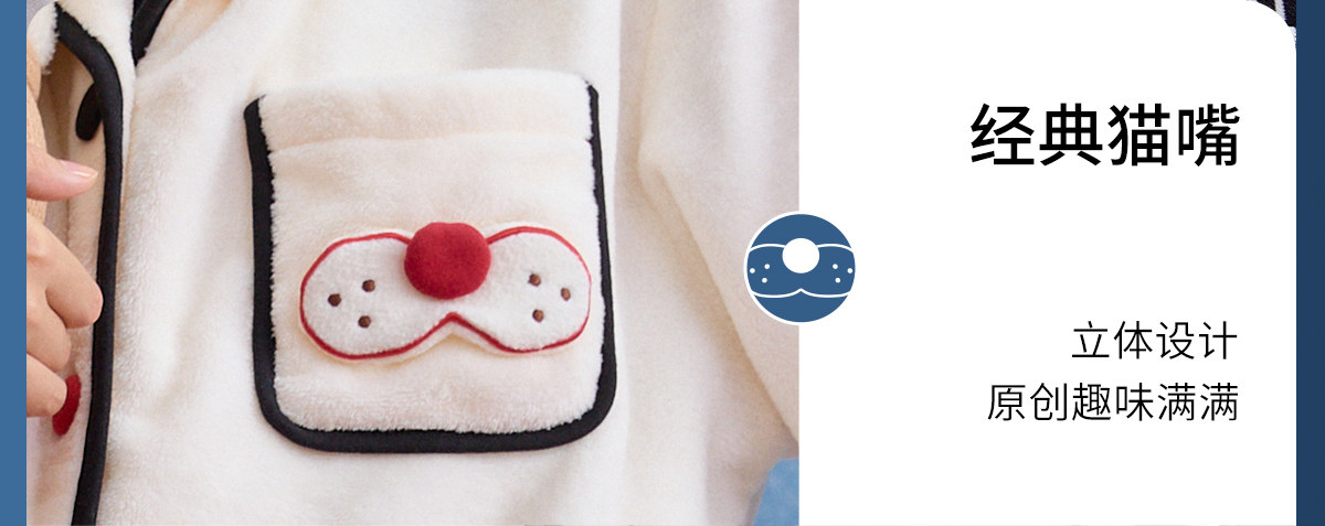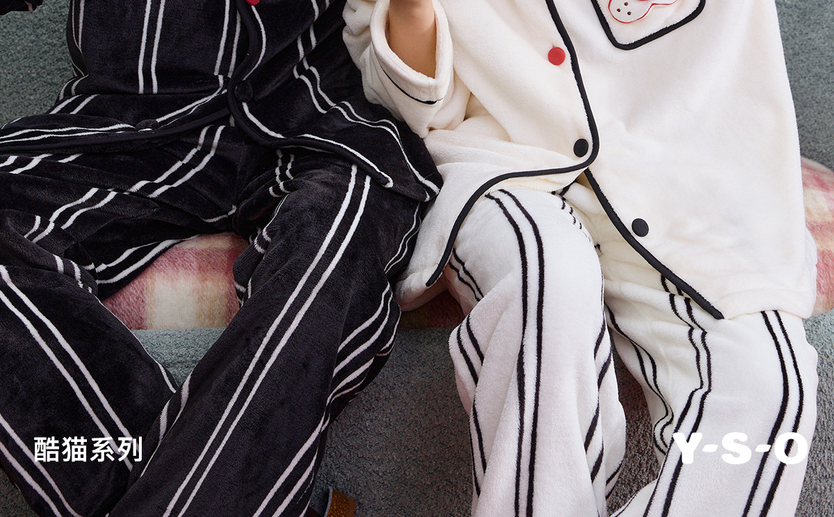 yso【酷猫系列】睡衣情侣款秋冬珊瑚绒加厚男女款可外穿家居服D