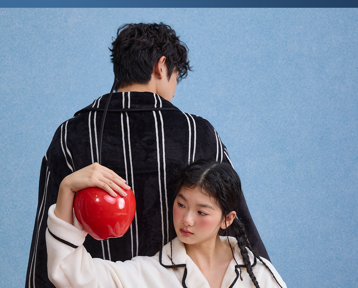 Gukoo/果壳睡袍女冬季迪士尼联名新款条纹珊瑚绒家居服斗篷睡袍D