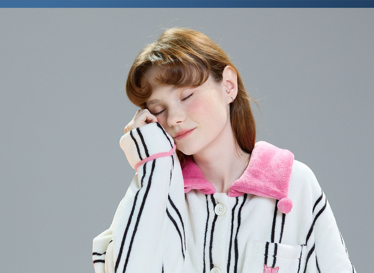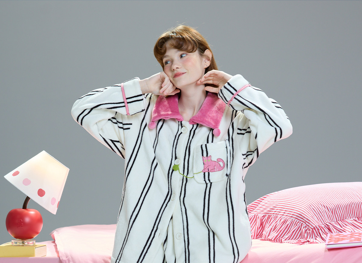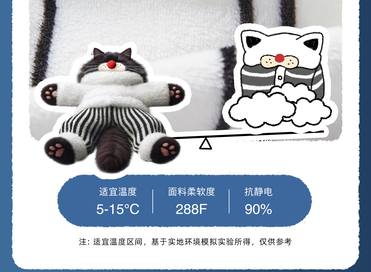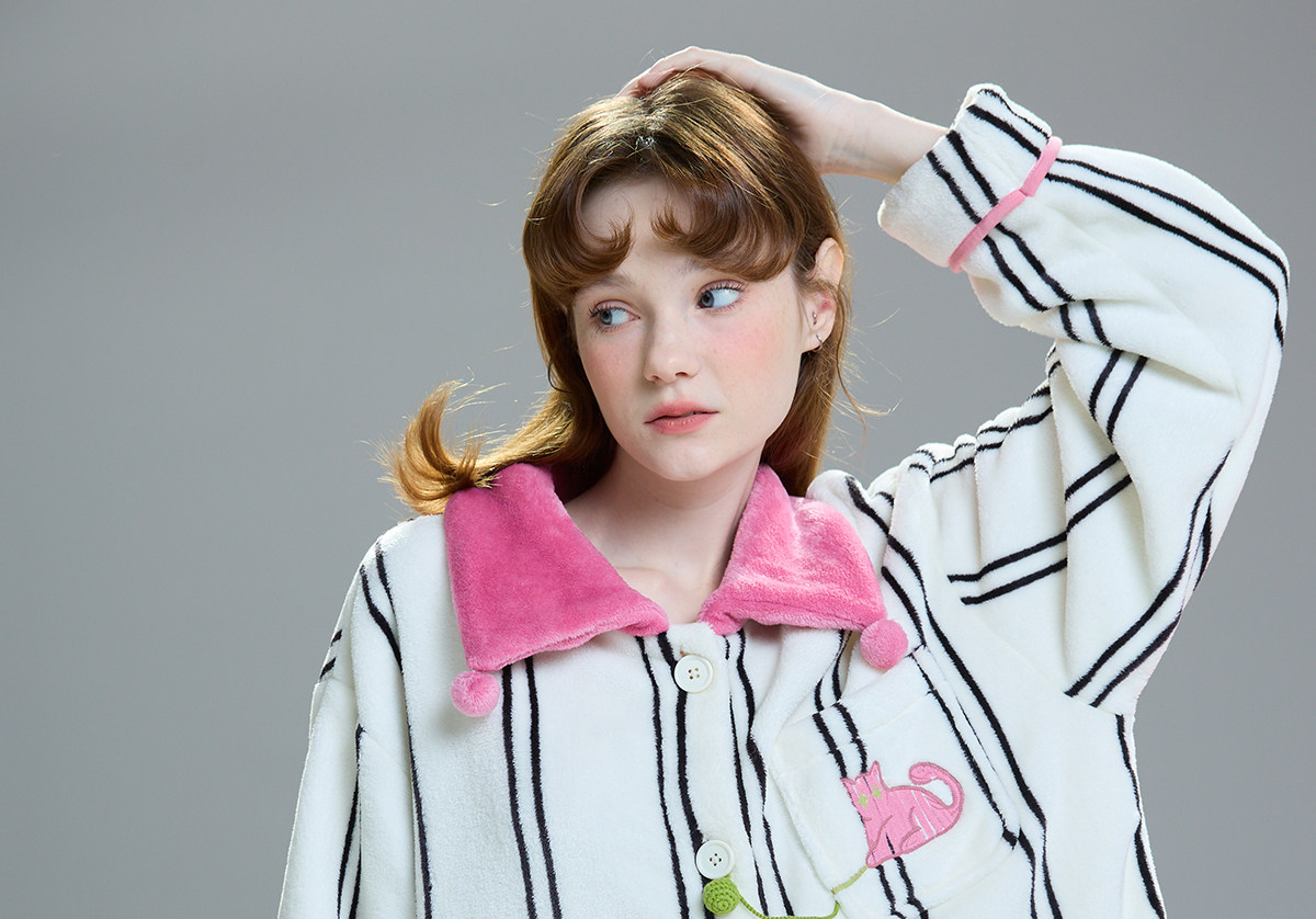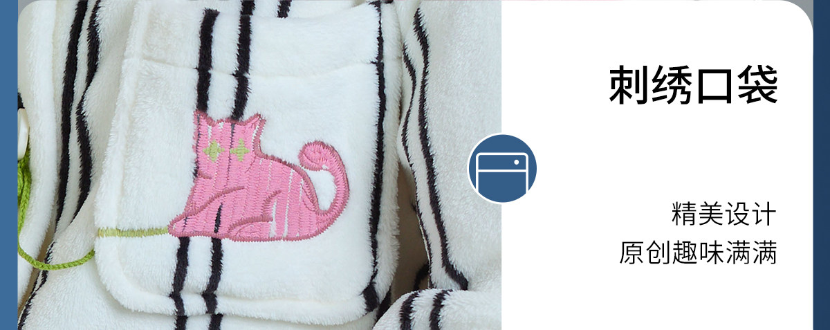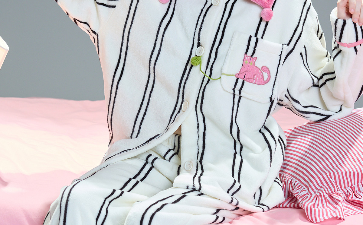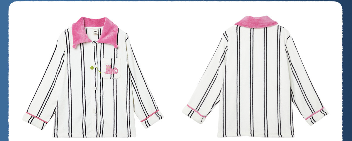 yso【酷猫系列】珊瑚绒睡衣女秋冬新款柔软法兰绒开衫套装冬季D