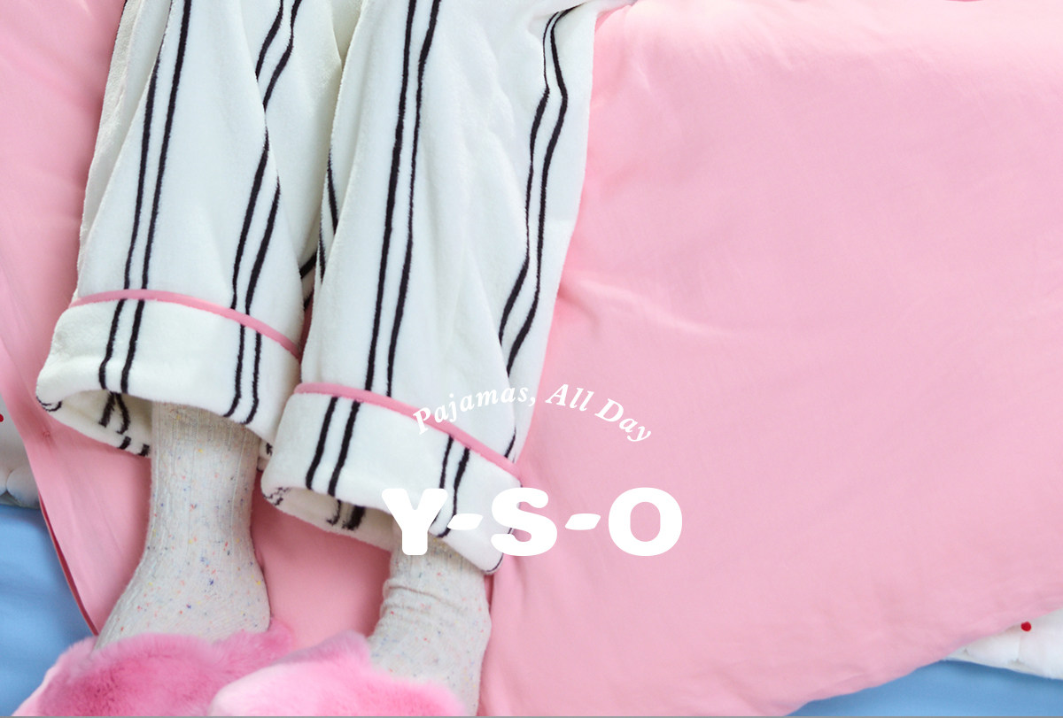 yso【礼物系列】半边绒睡衣女秋冬新款甜美蝴蝶结柔软女士家居服D