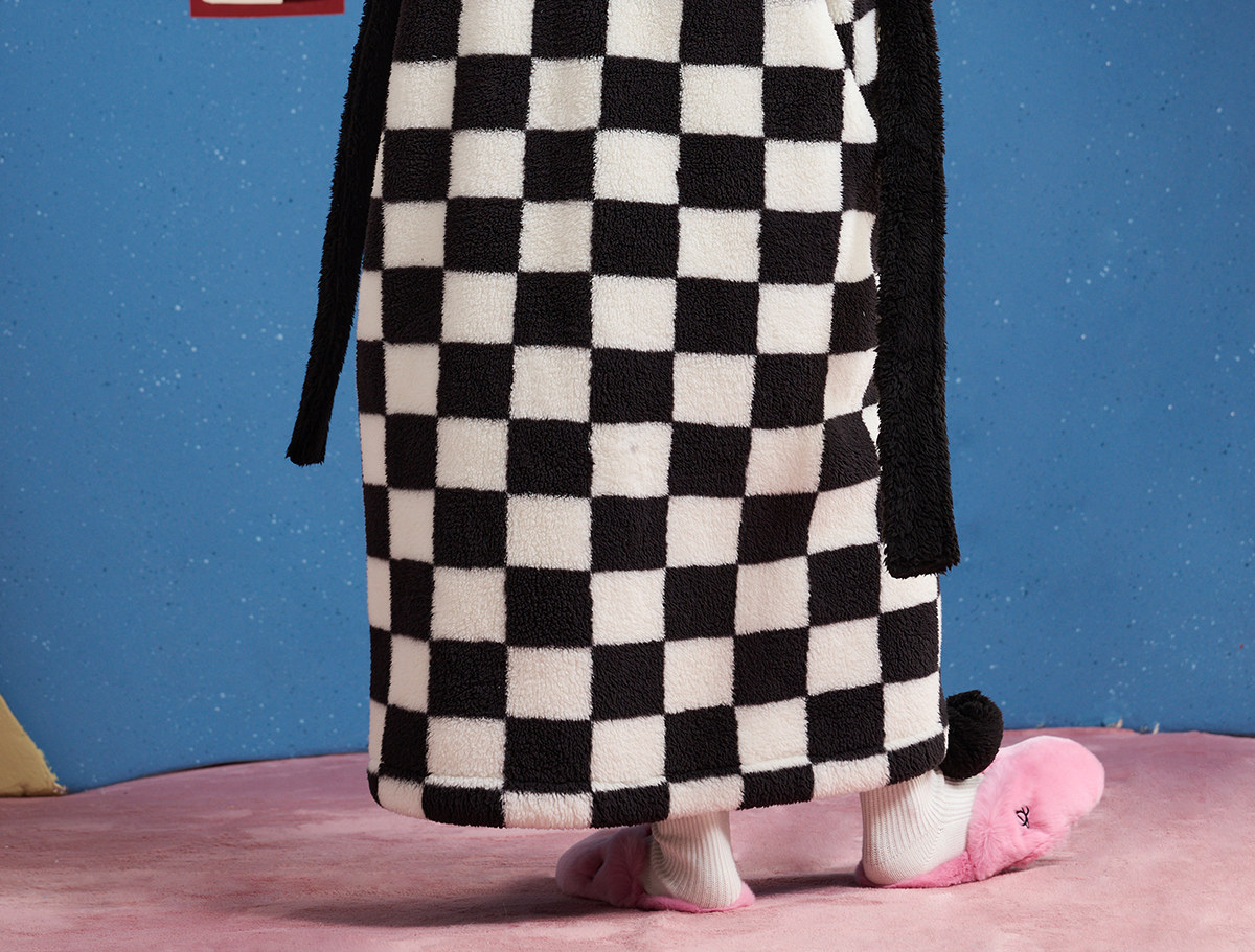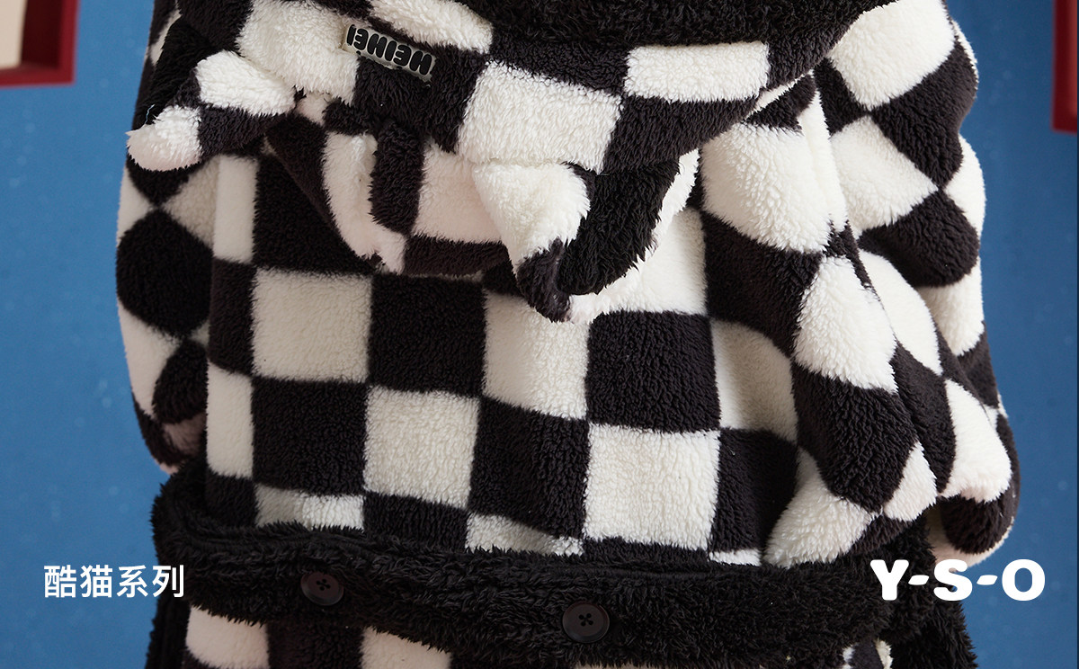 yso【酷猫系列】睡袍女秋冬季加厚珊瑚绒松弛感宽松长款女士睡衣D