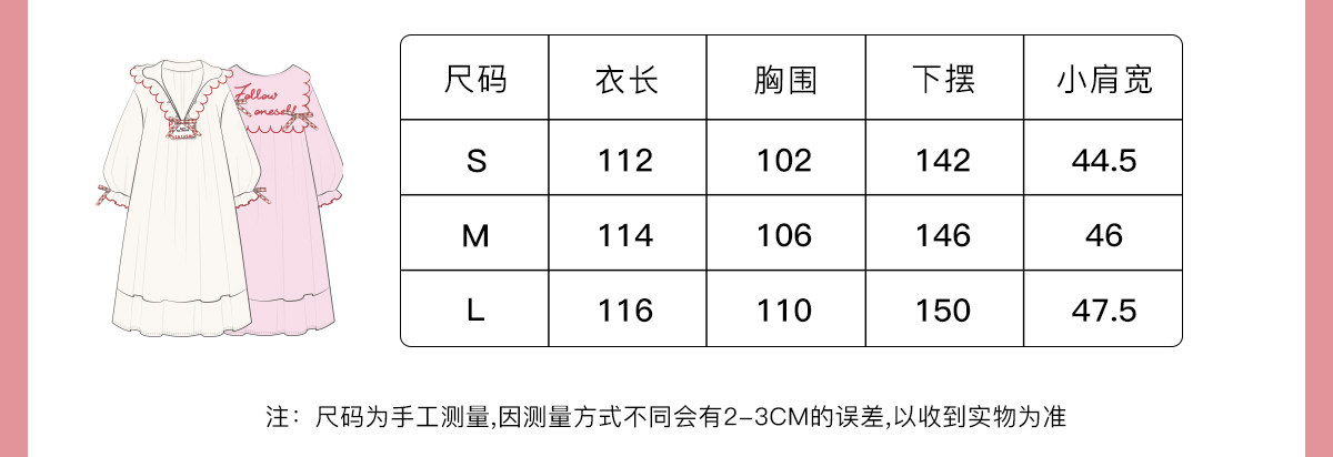 yso【礼物系列】公主风睡裙女春秋纯棉甜美睡衣可外穿家居服长裙C