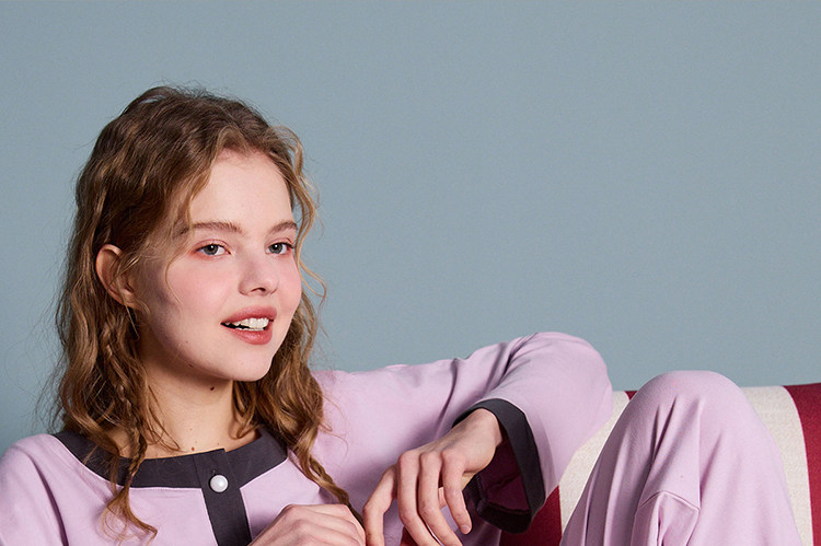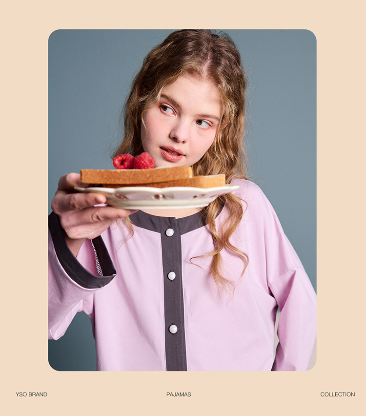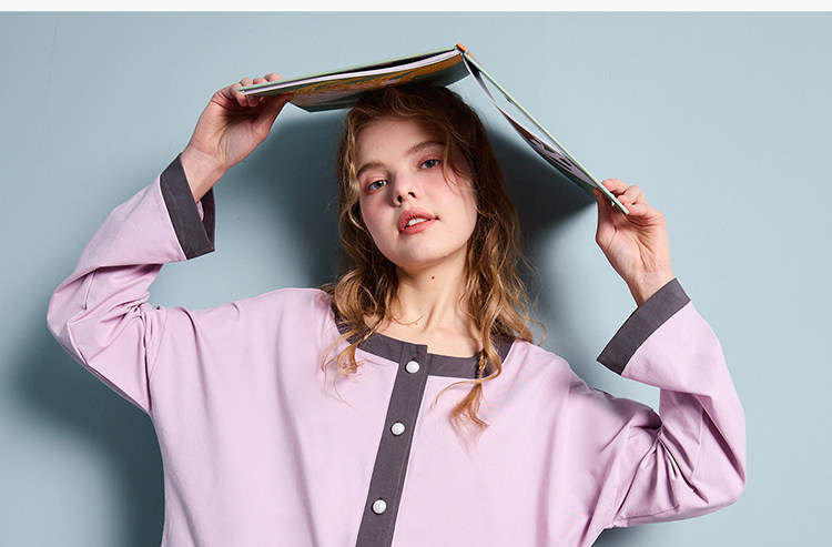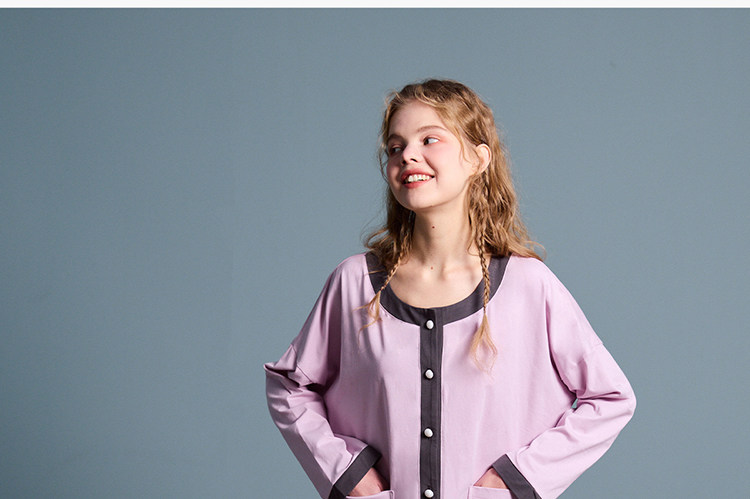 yso春季睡衣女甜美光滑柔软圆领套头长袖睡裙女性感家居服A