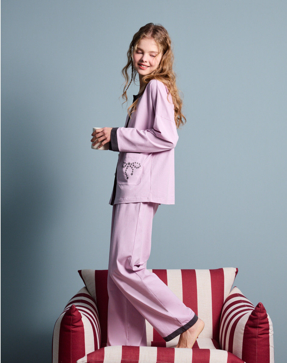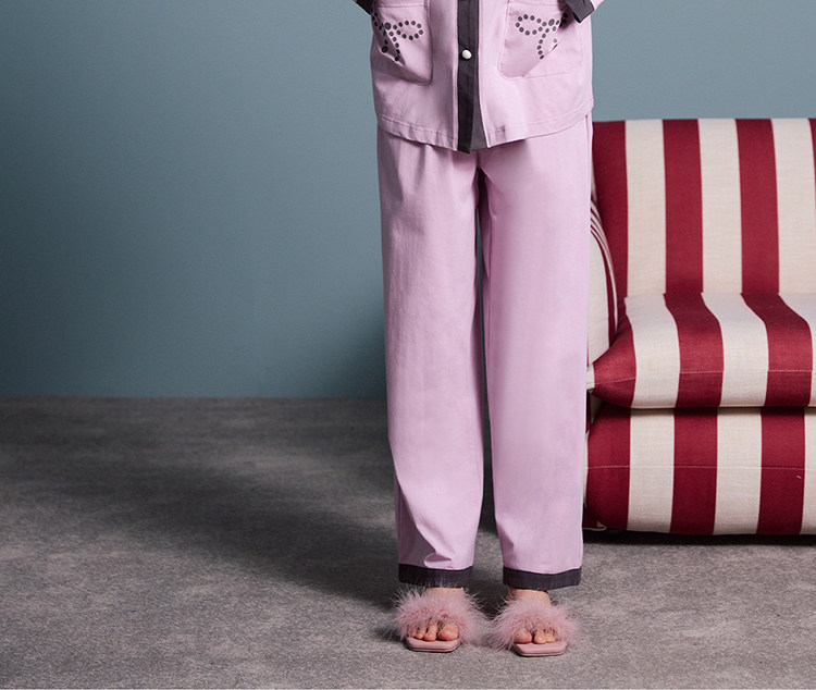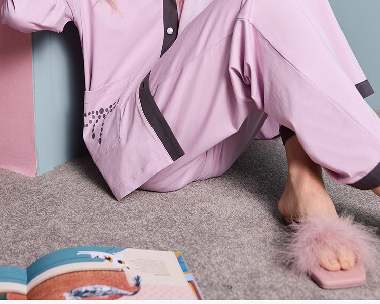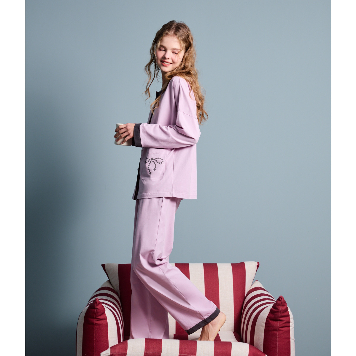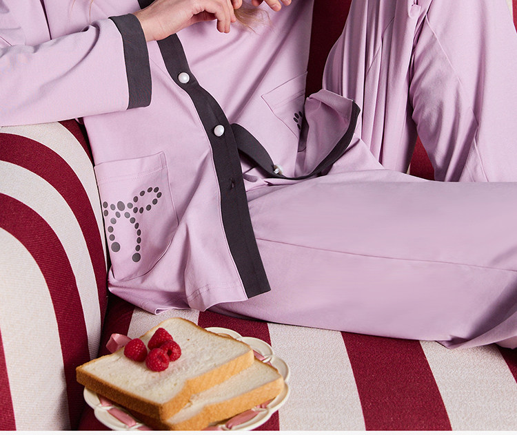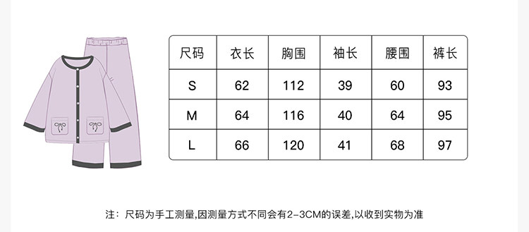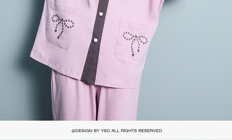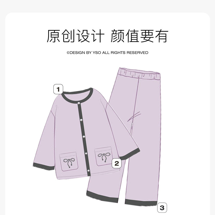 yso睡衣女春秋款温柔蝴蝶结口袋棉长袖长裤套装家居服可外穿A
