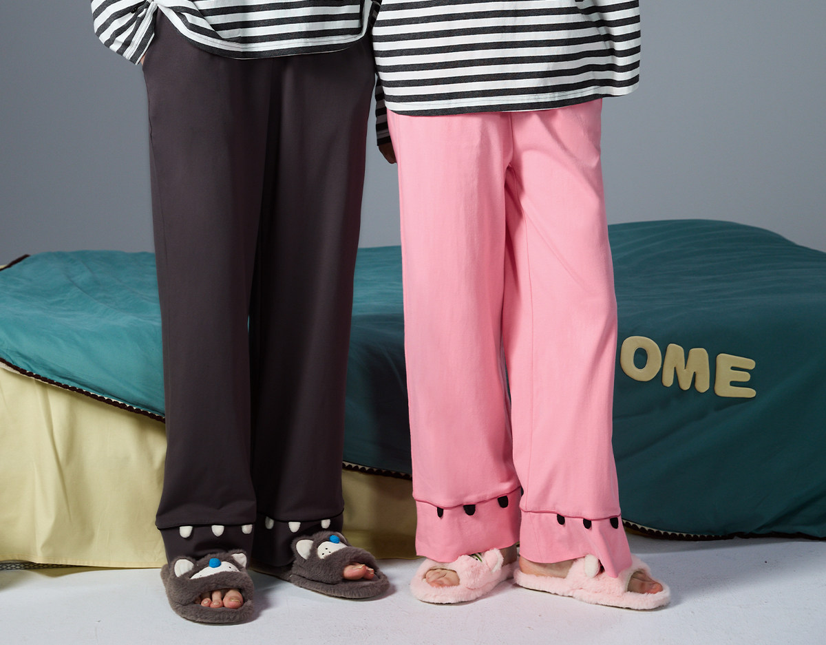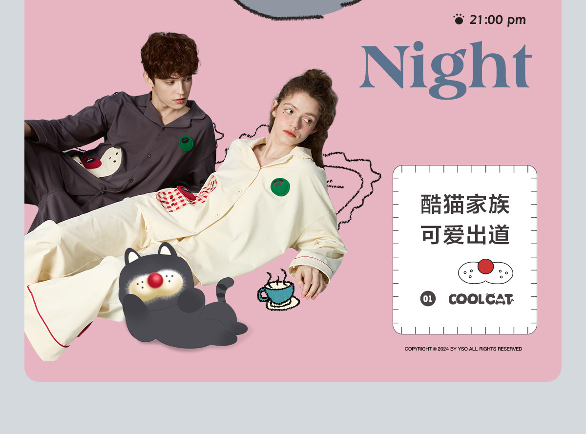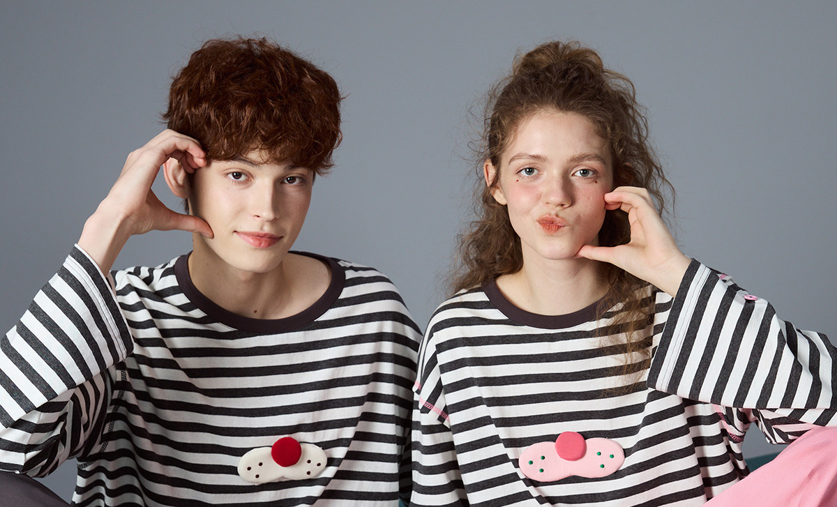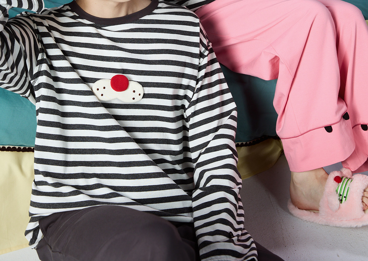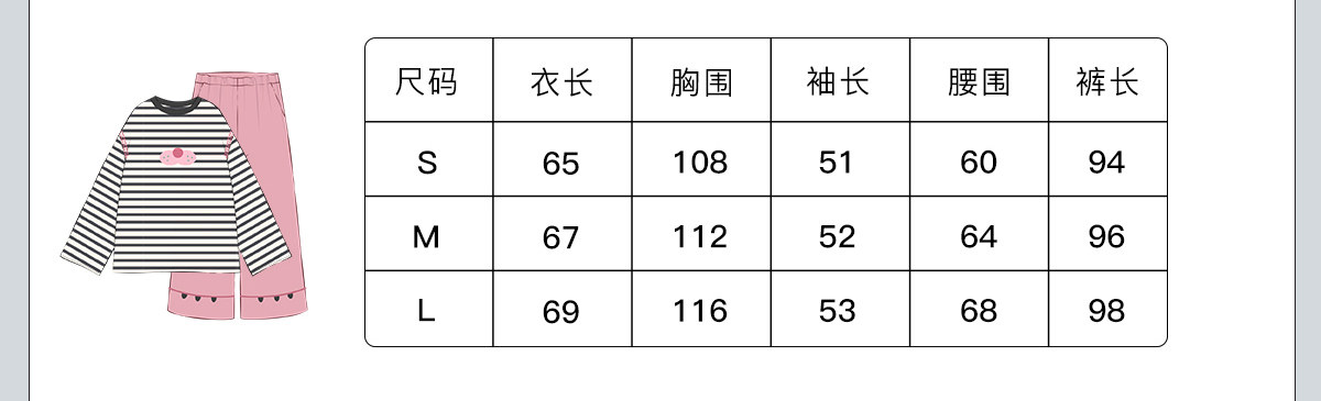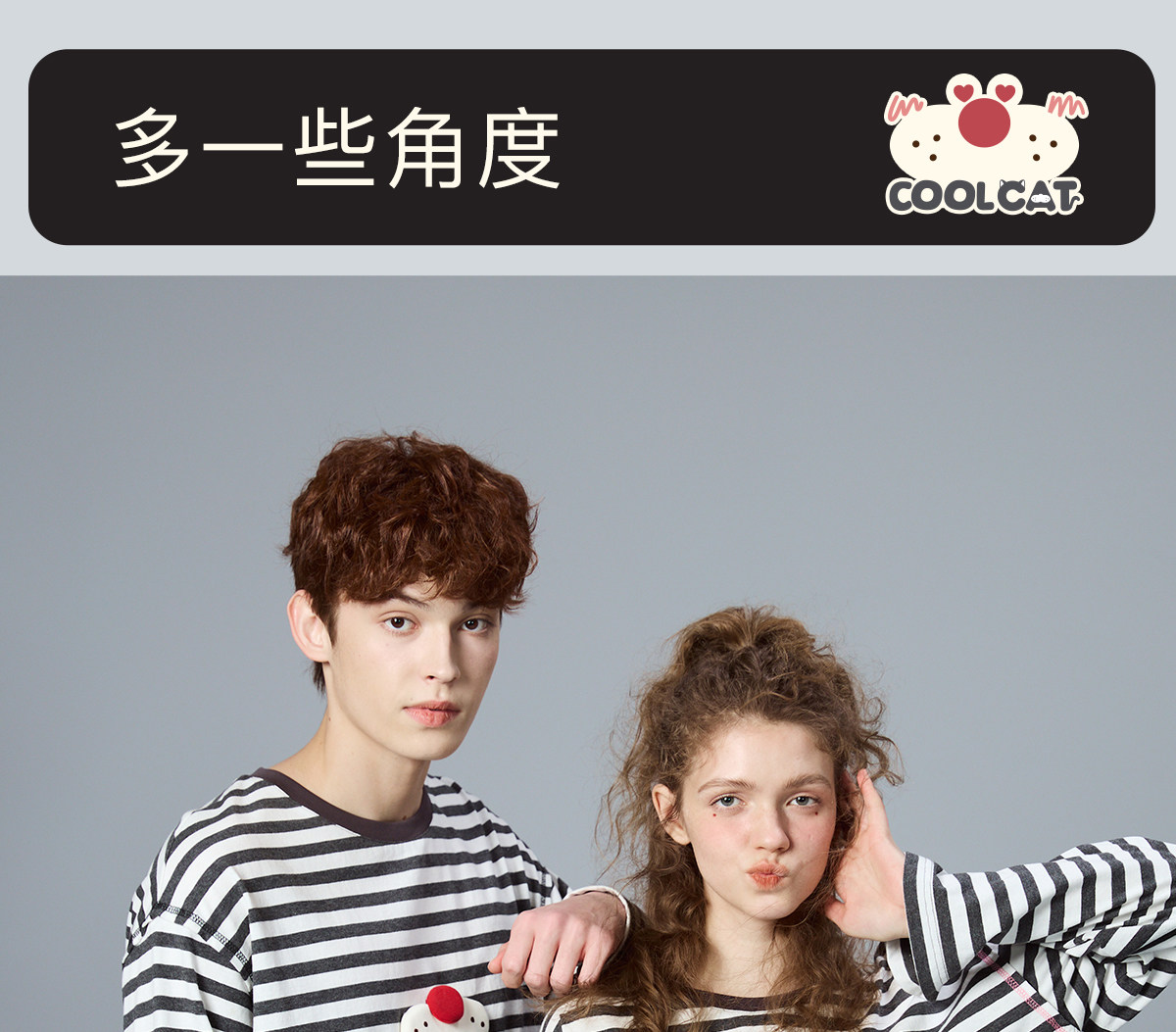 yso【酷猫系列】春秋情侣女圆领条纹套装男可外穿家居服A