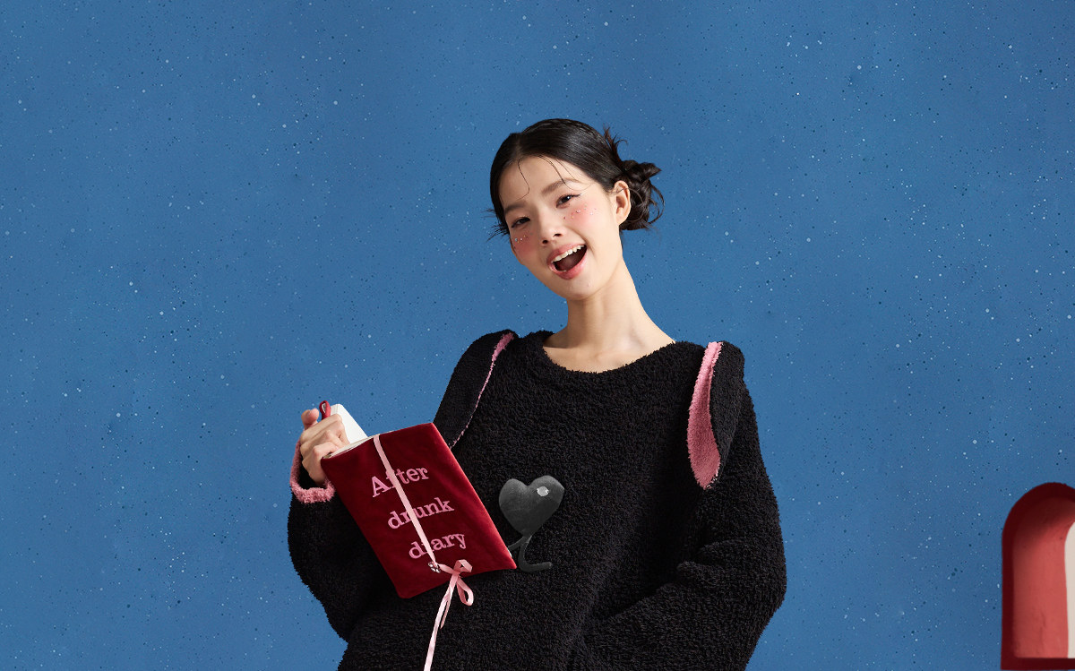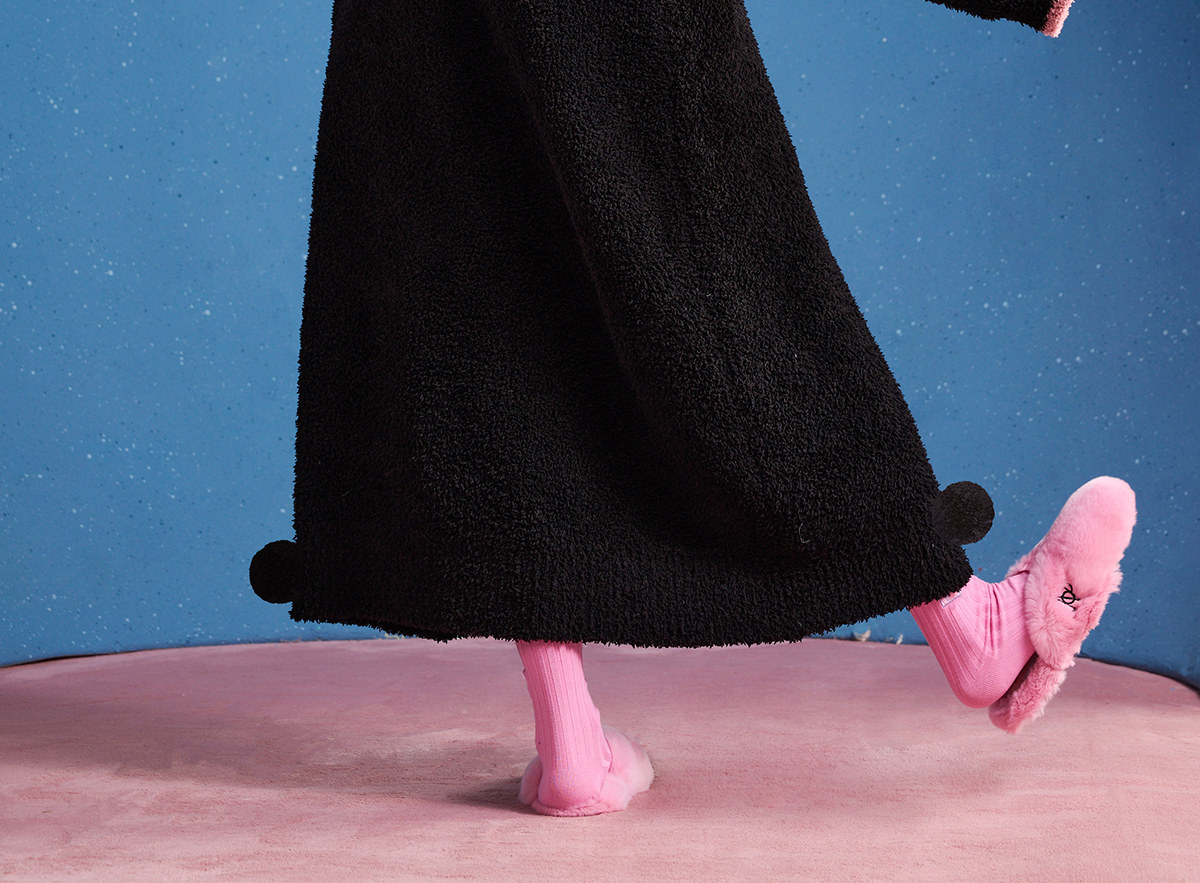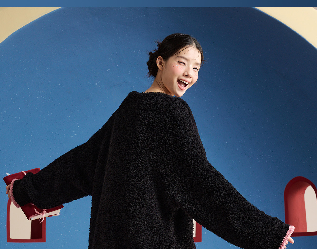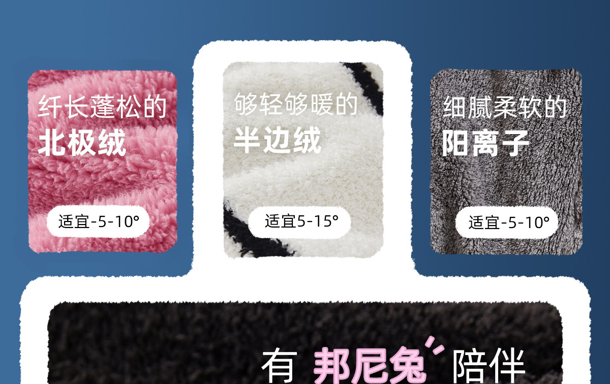 yso【礼物系列】半边绒睡裙女轻软甜美长款睡衣冬加绒女家居服D