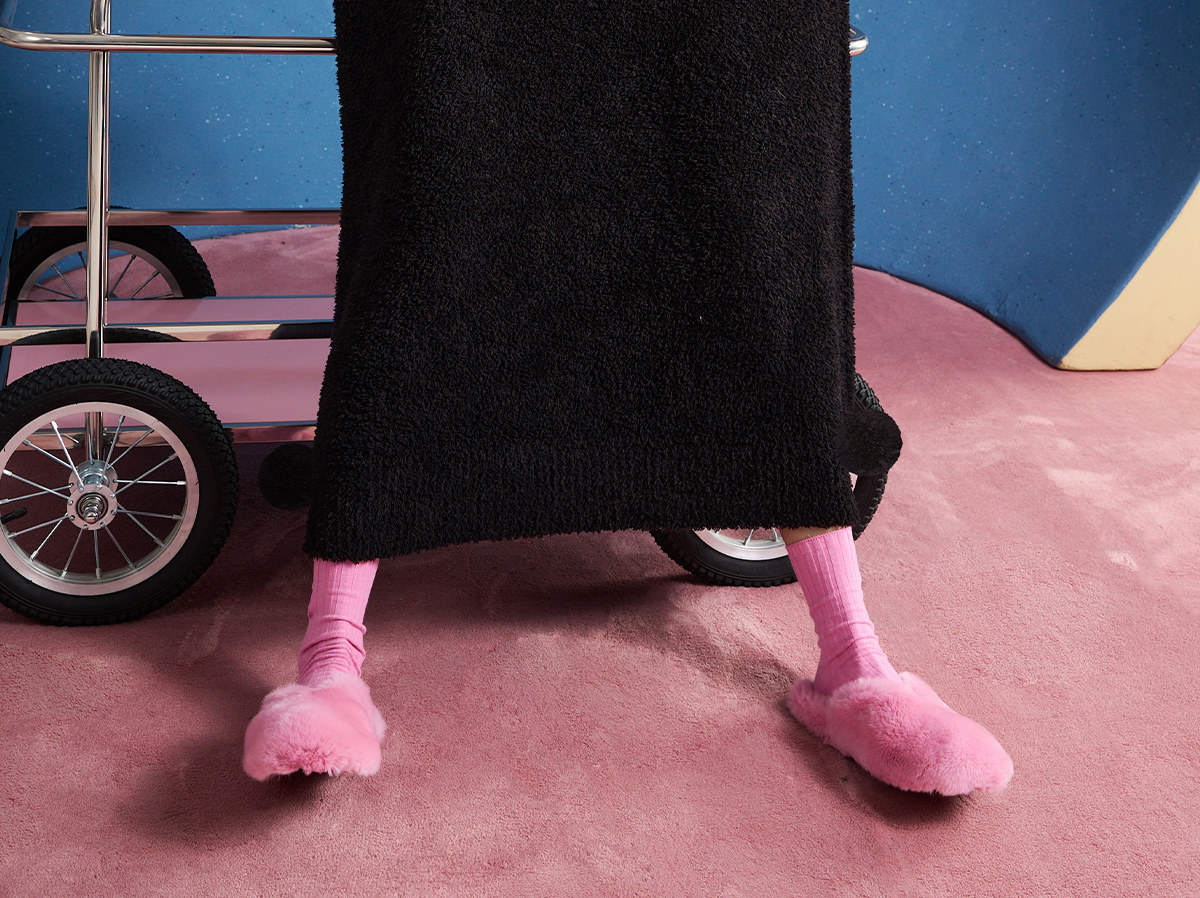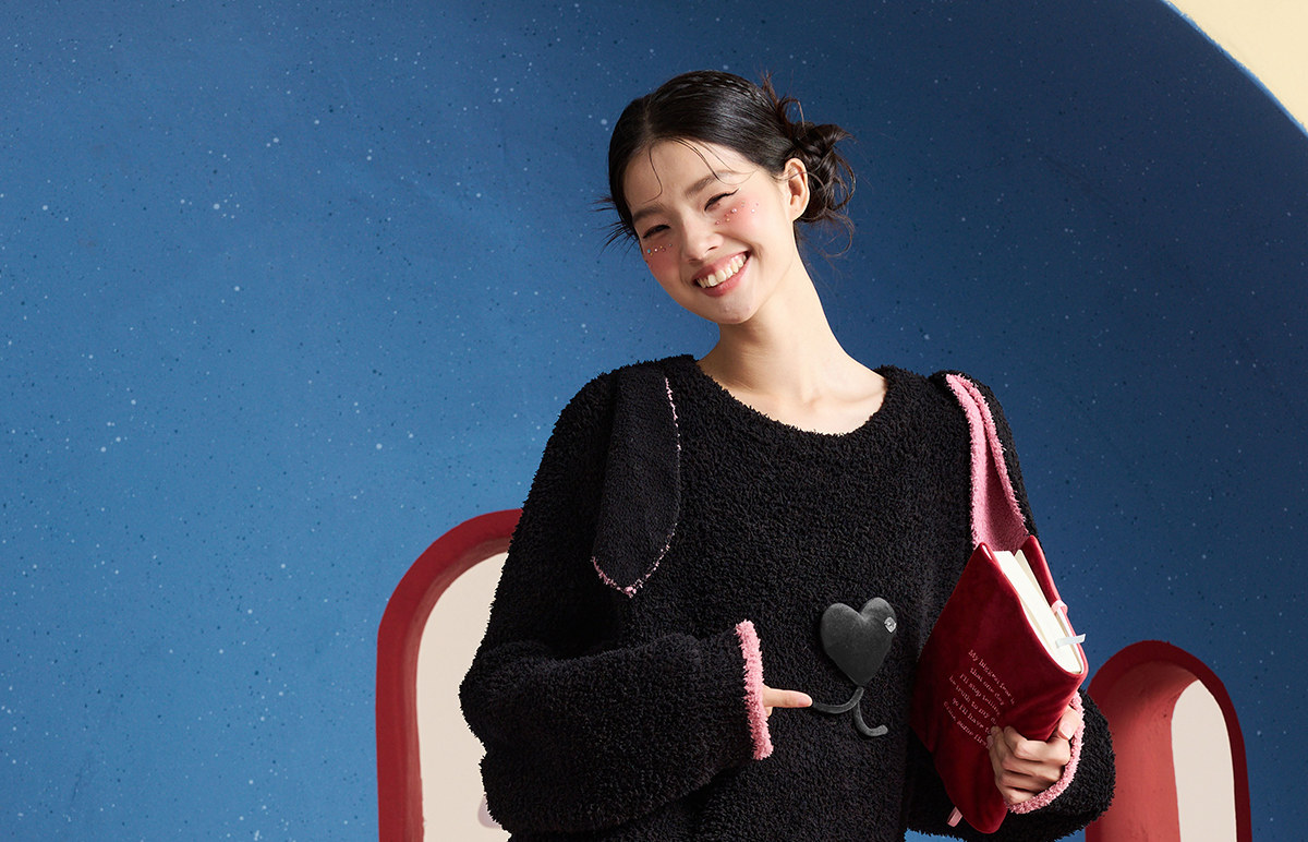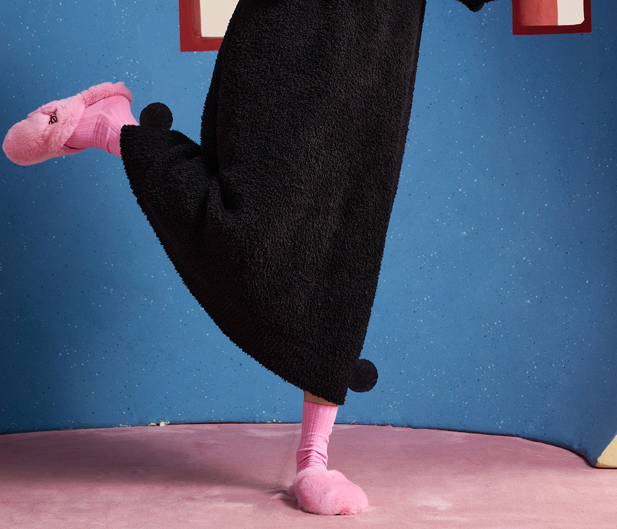 yso【礼物系列】半边绒睡裙女轻软甜美长款睡衣冬加绒女家居服D