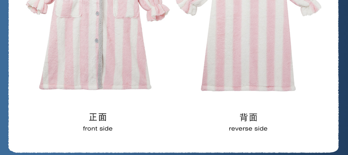 yso【礼物系列】睡袍女秋冬甜美条纹珊瑚绒睡衣柔软法兰绒家居服D