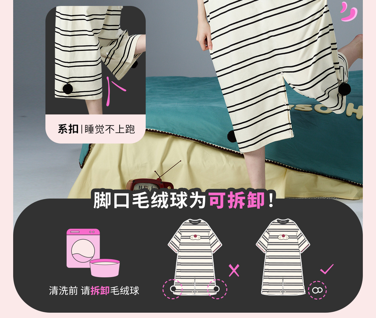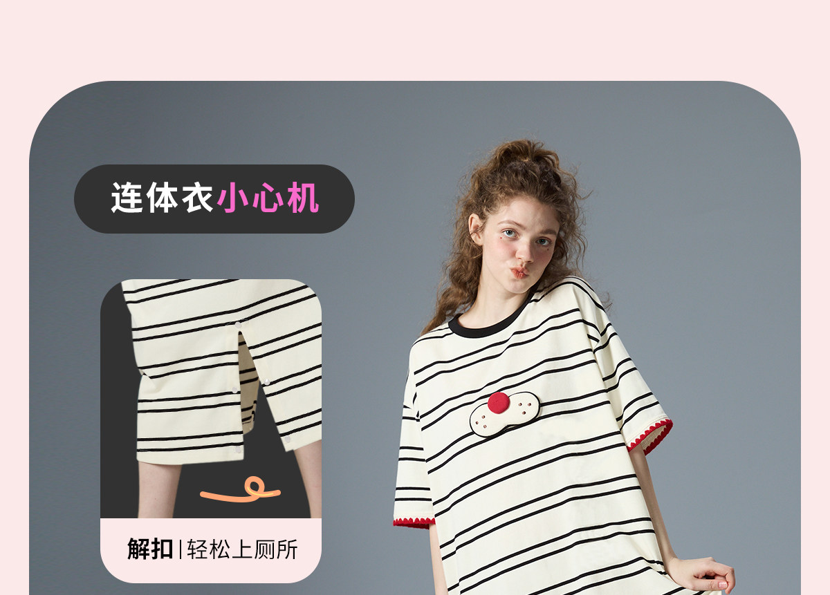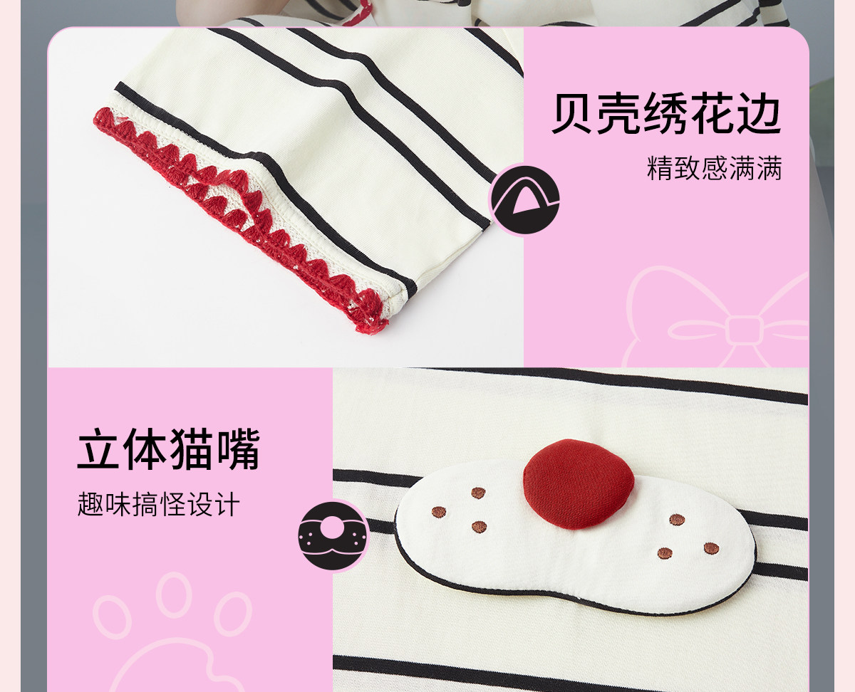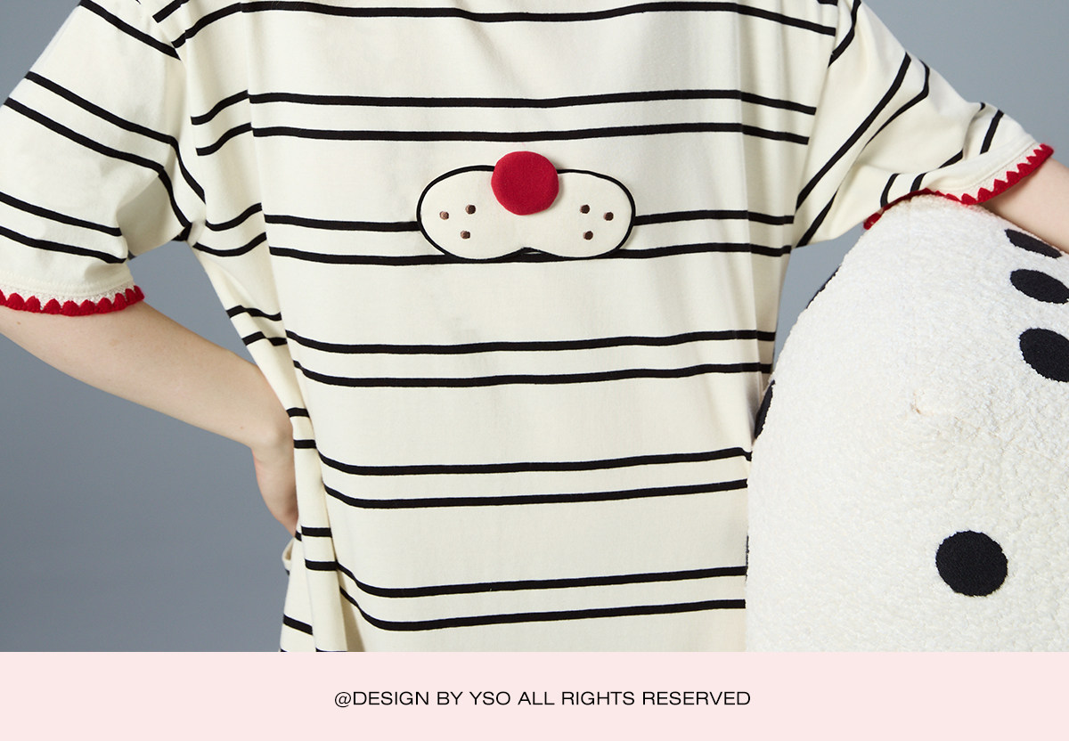 yso【酷猫系列】连体睡衣女夏睡裙可爱条纹家居服可外穿家居套装