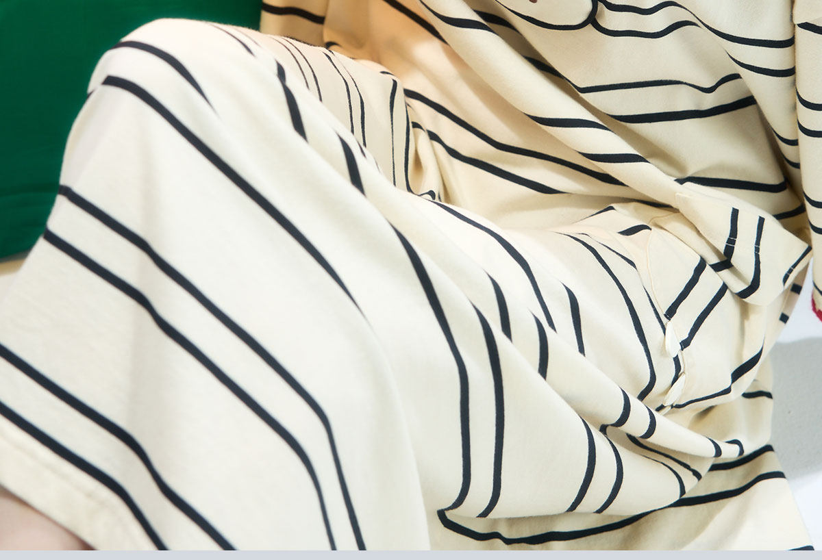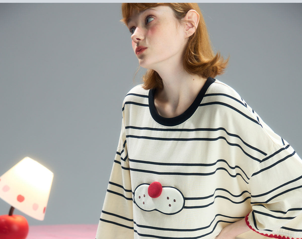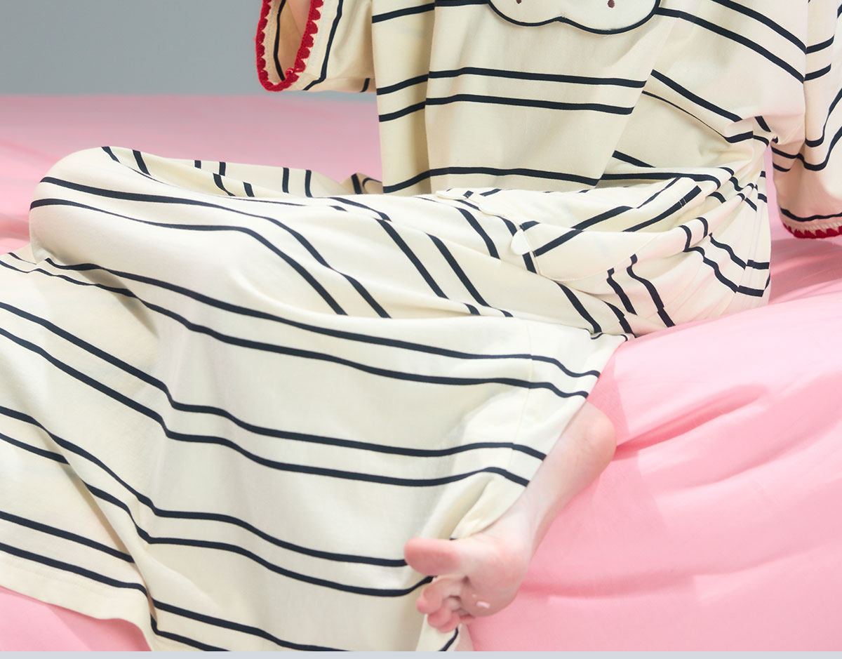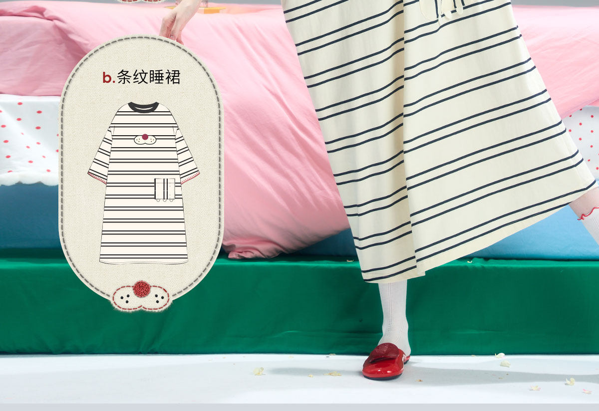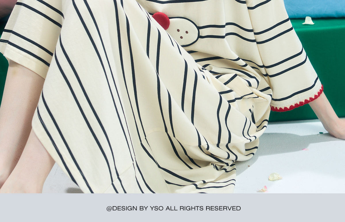 yso【酷猫系列】睡衣女春秋全棉短袖长款睡裙休闲条纹家居服C