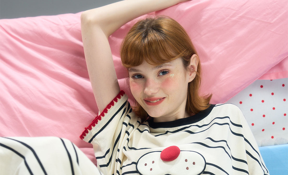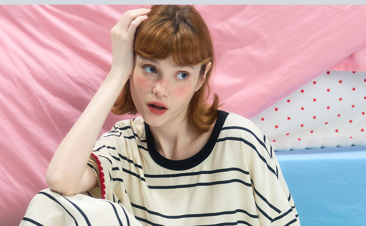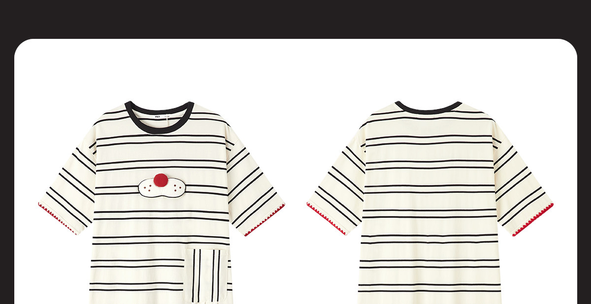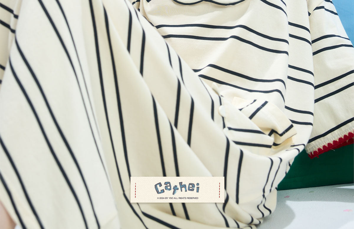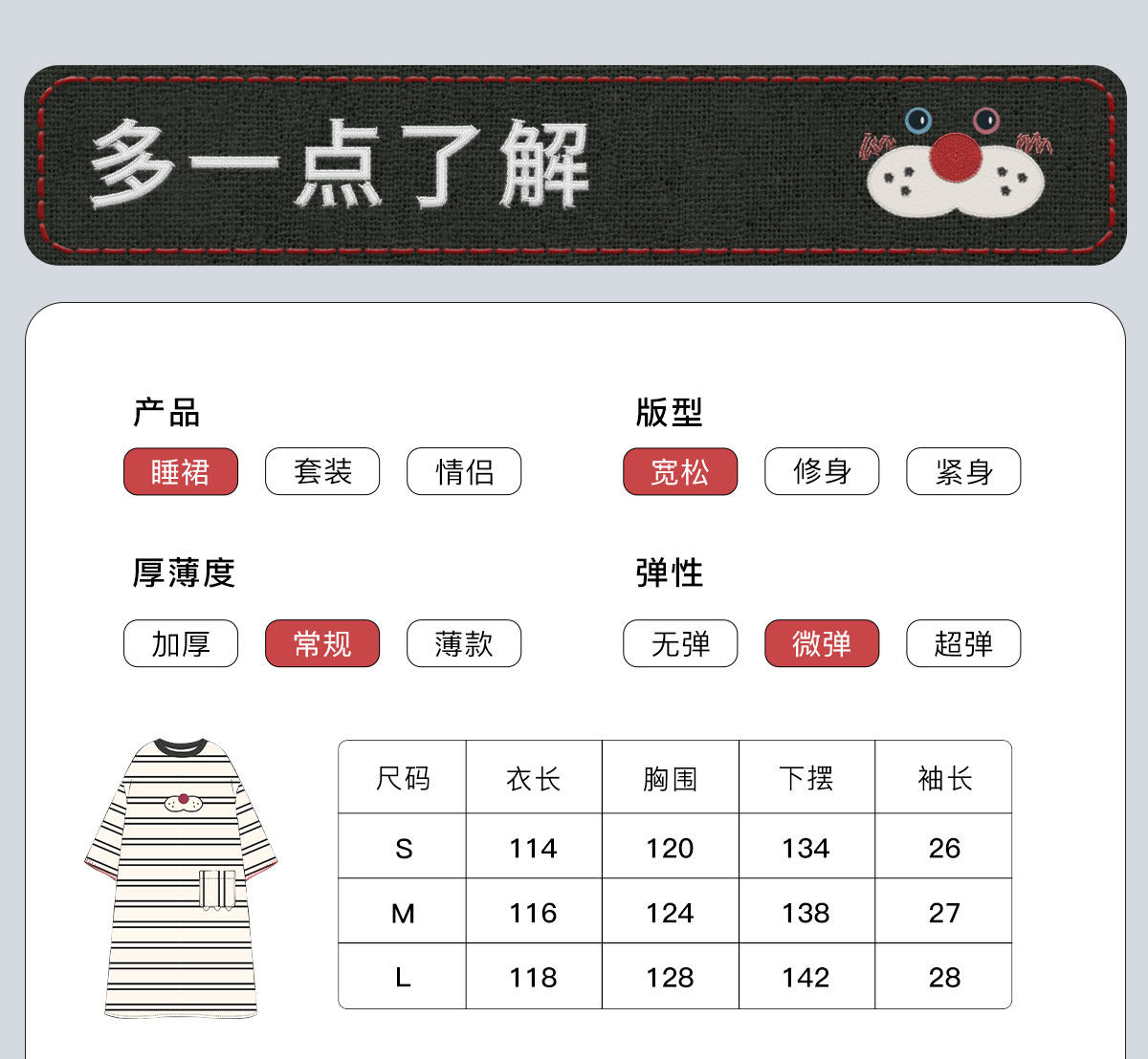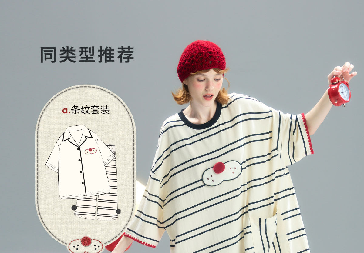 yso【酷猫系列】睡衣女春秋全棉短袖长款睡裙休闲条纹家居服C