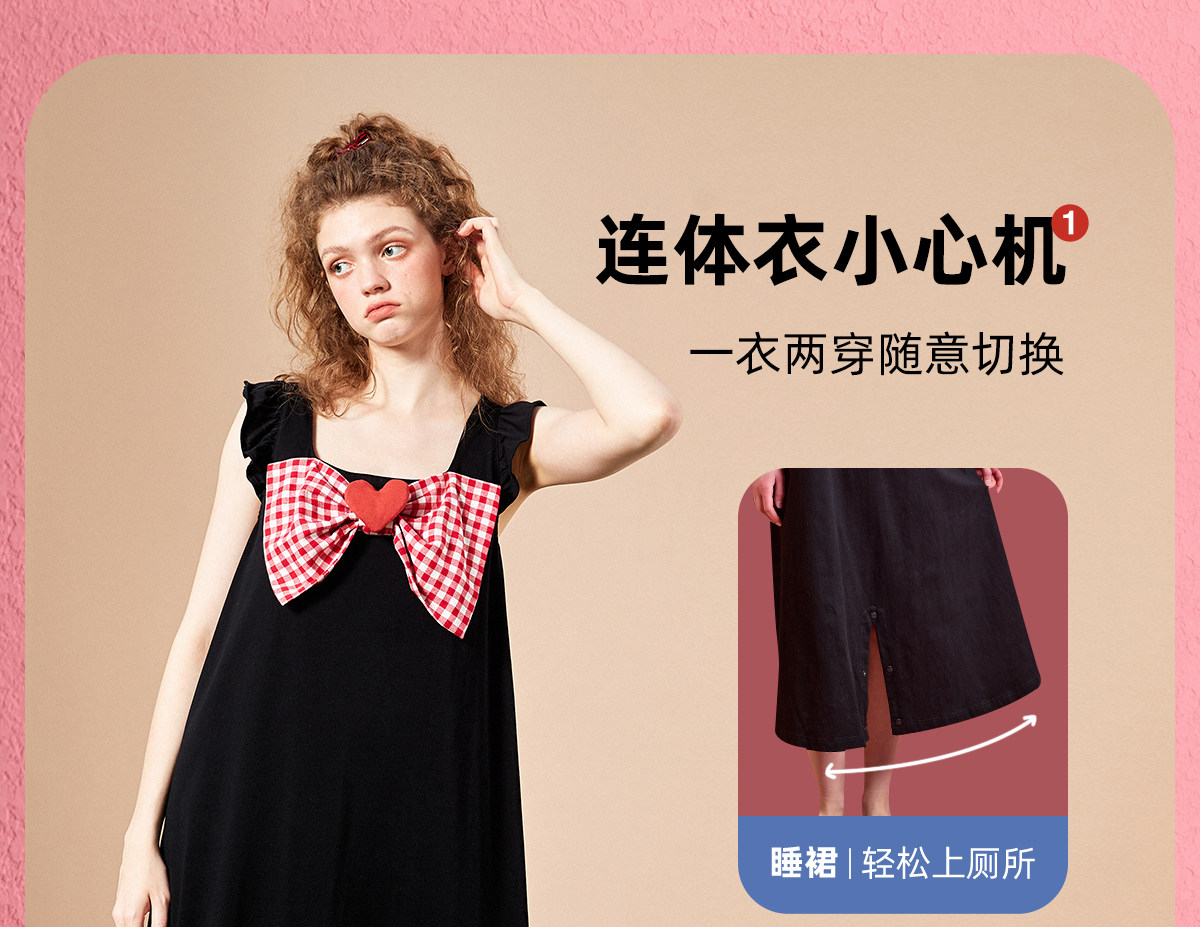 yso【礼物系列】连体睡衣女夏季睡裙春夏蝴蝶结可爱棉感家居服女