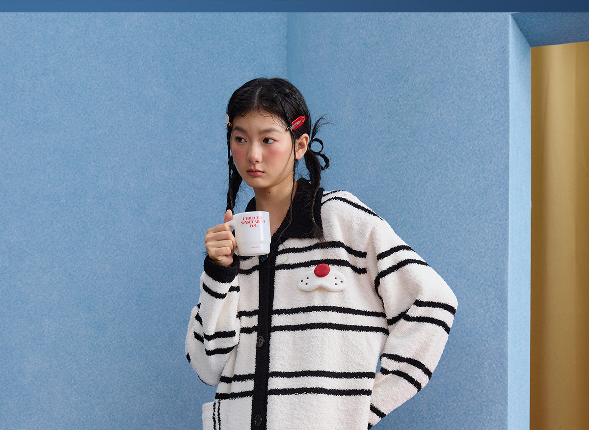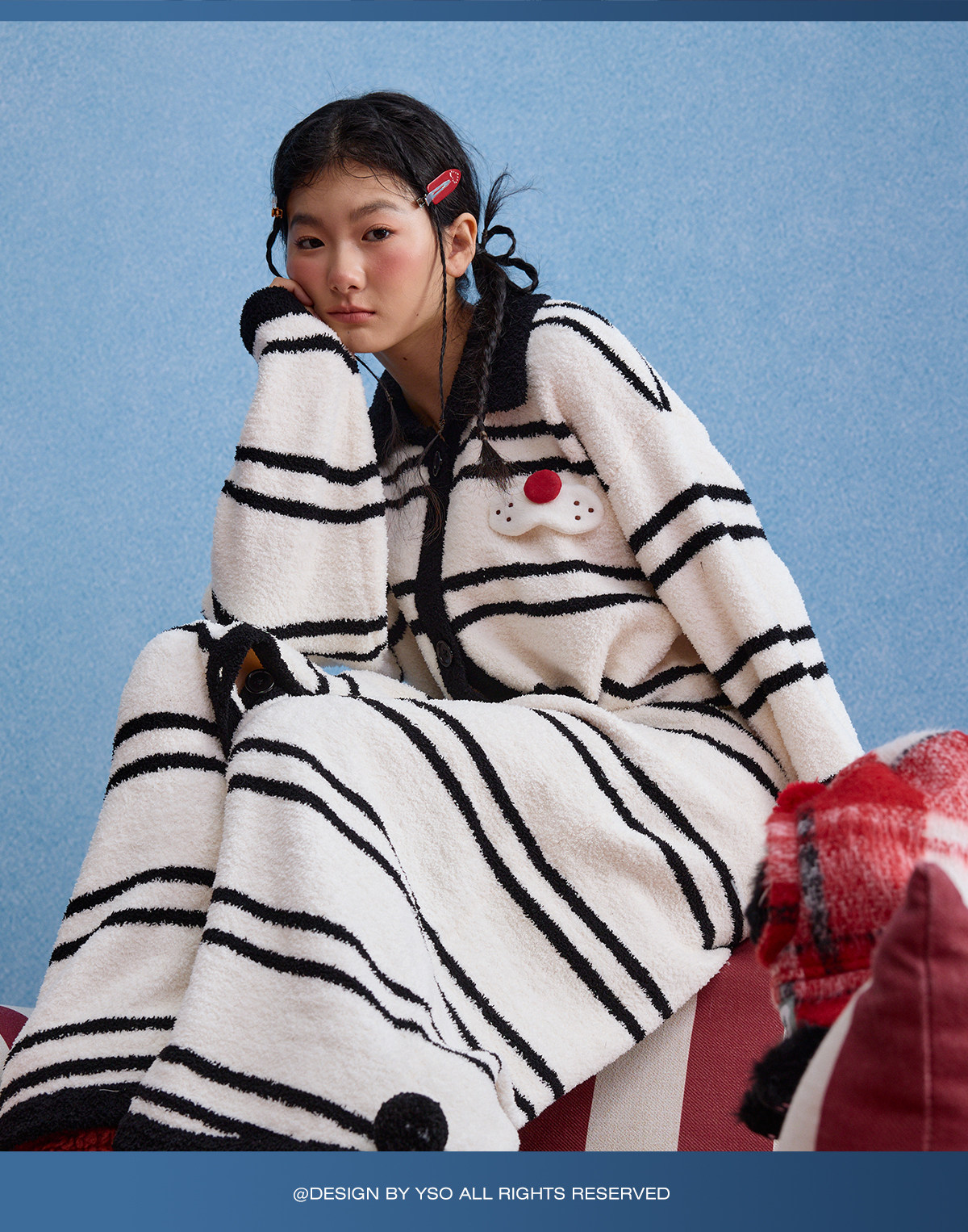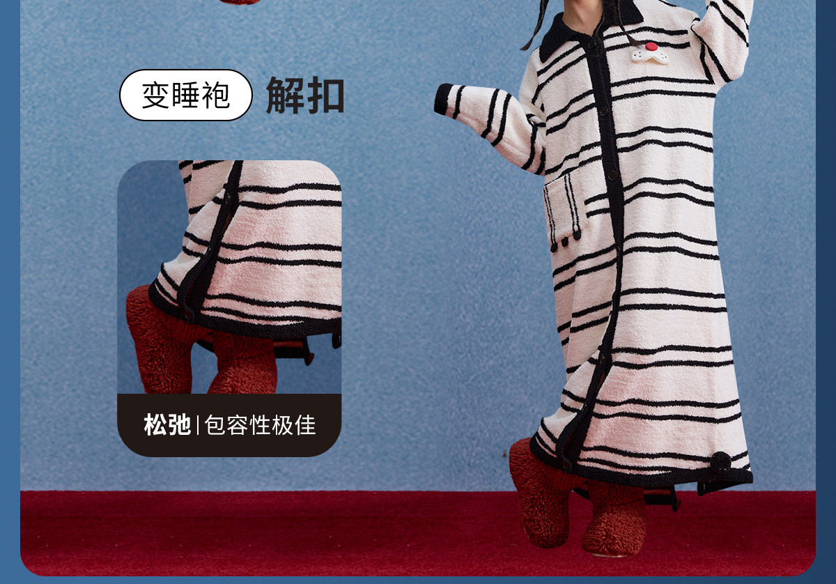 yso【酷猫系列】半边绒睡袍女秋冬连体睡衣两穿长款睡裙女家居服D