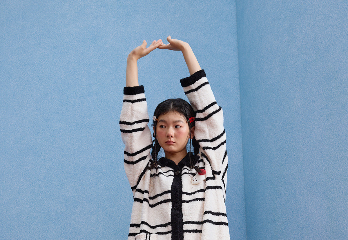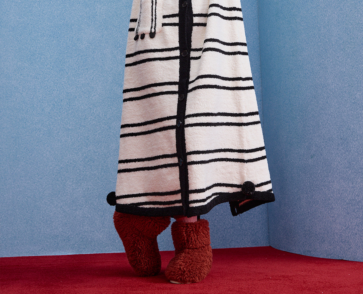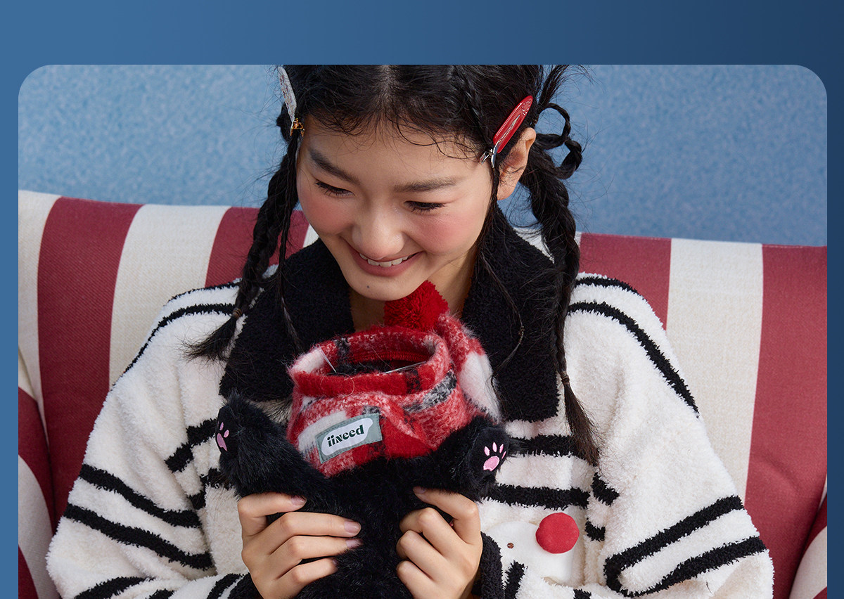 yso【酷猫系列】半边绒睡袍女秋冬连体睡衣两穿长款睡裙女家居服D
