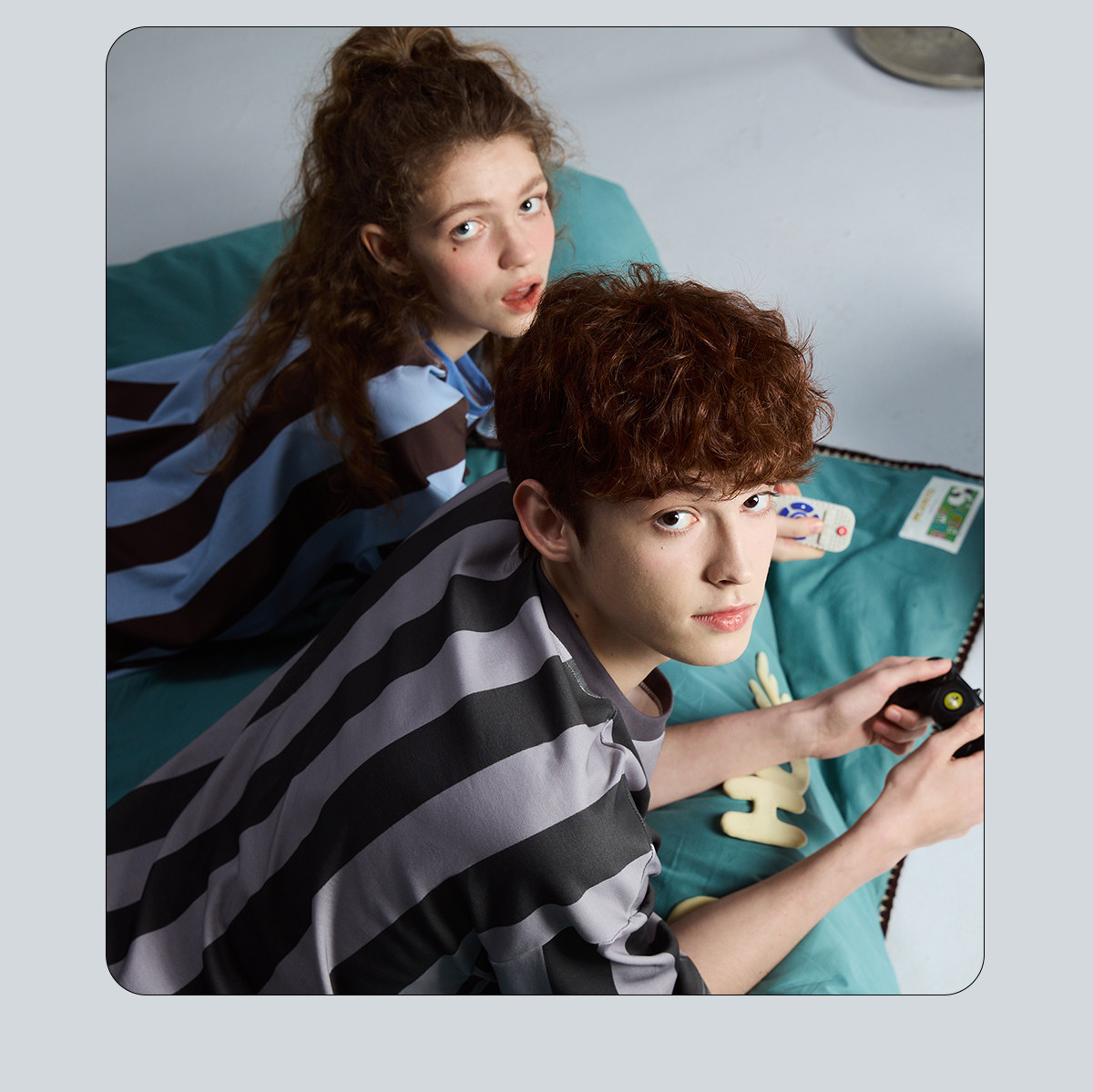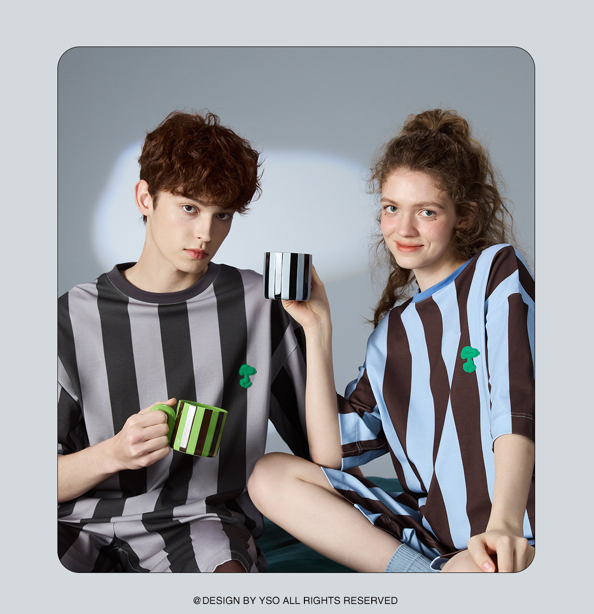 yso无性别【白日梦系列】夏情侣睡衣女全棉男套装可外穿家居服B
