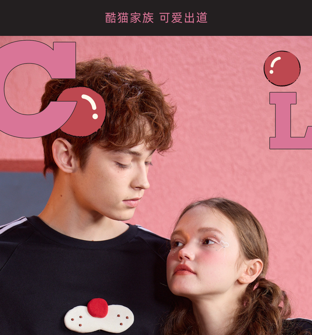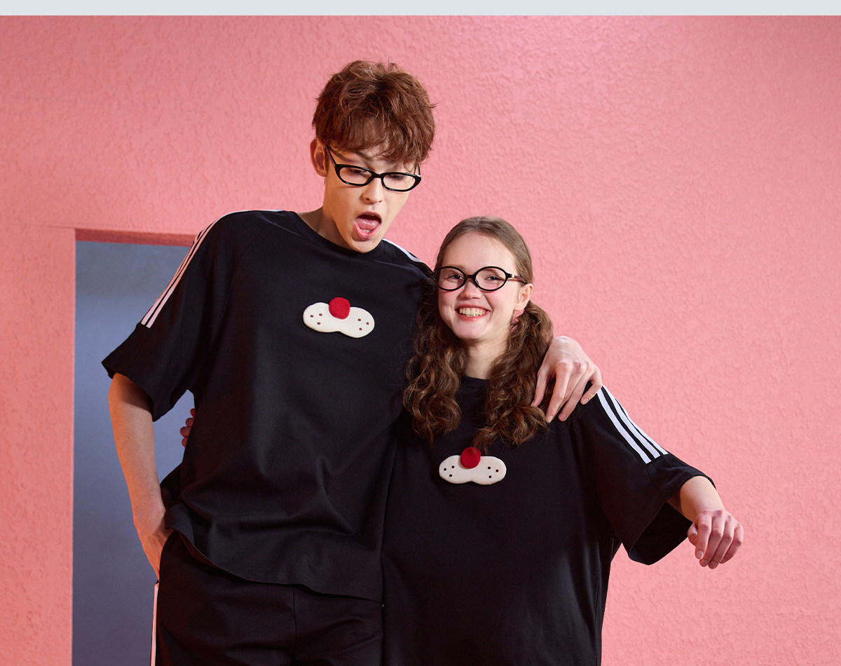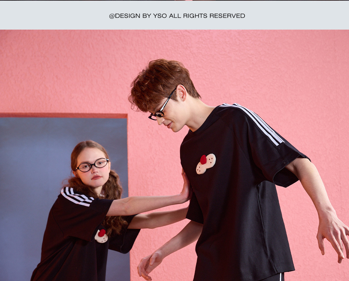 yso无性别【酷猫系列】春夏睡衣套装女圆领卡通男家居服可外穿B
