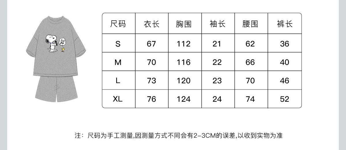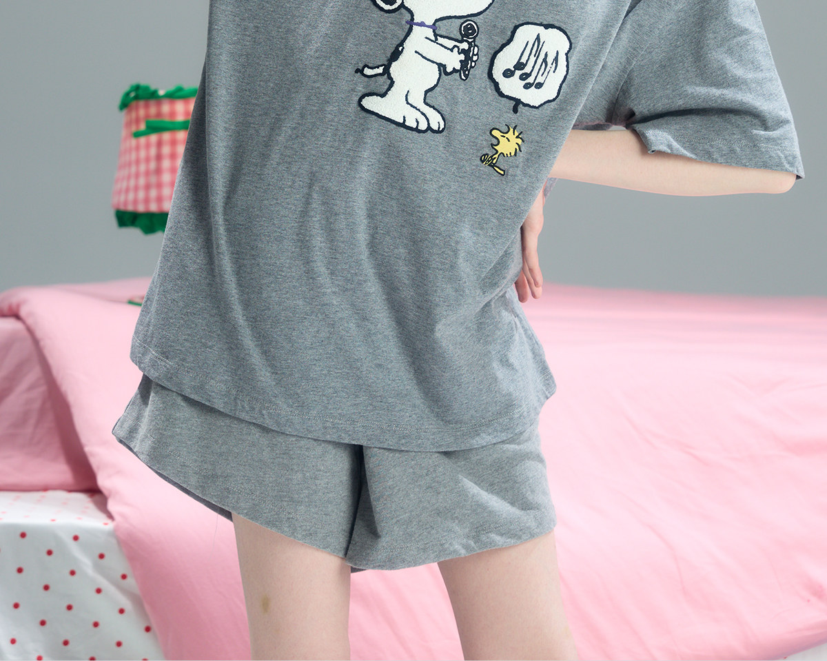 yso史努比夏季睡衣女舒适圆领短袖印花卡通可外穿家居服B