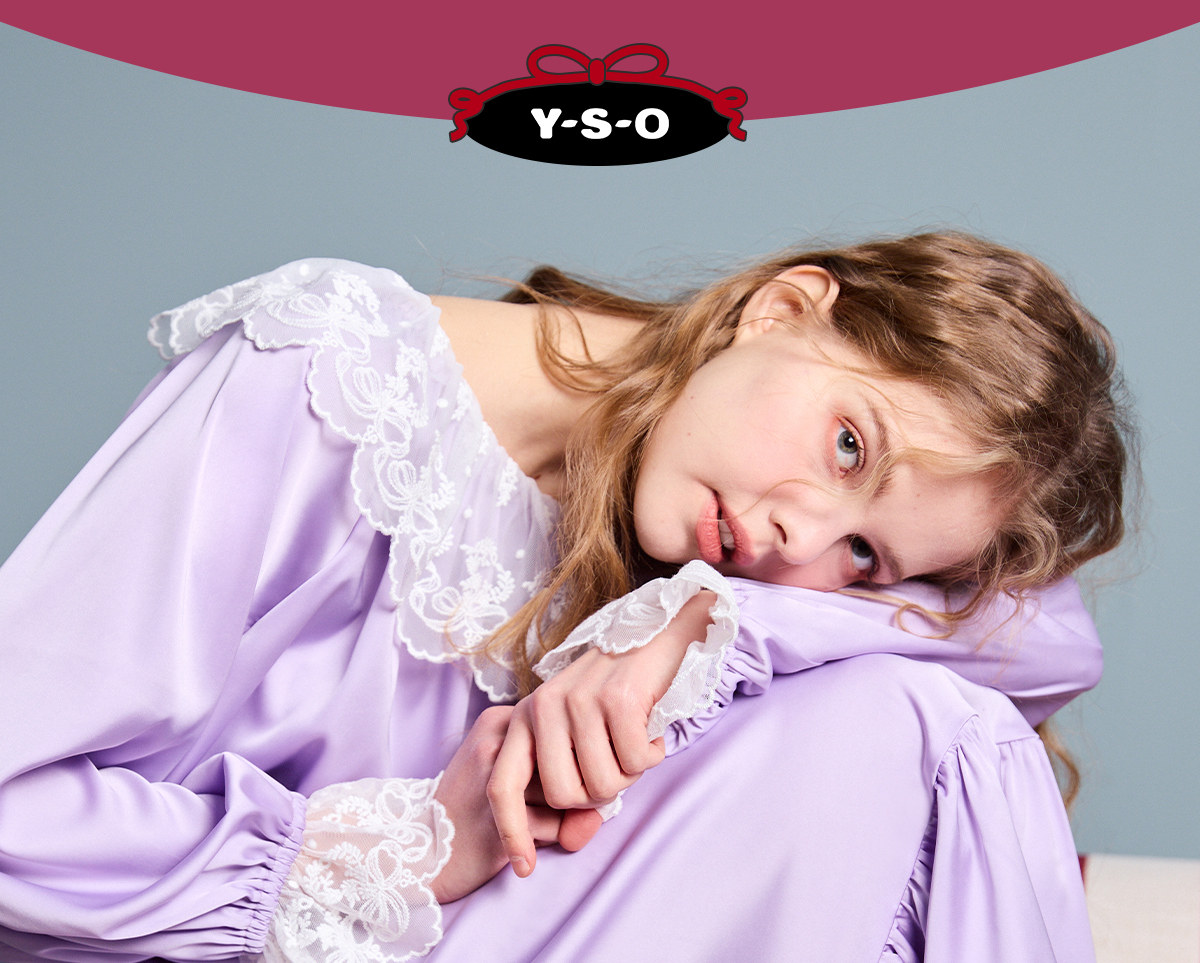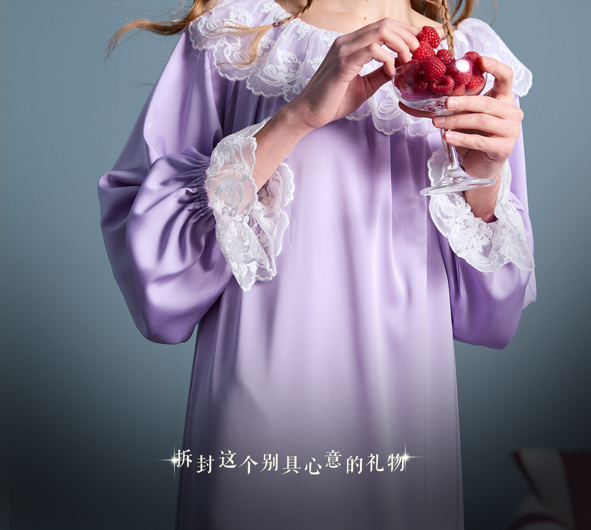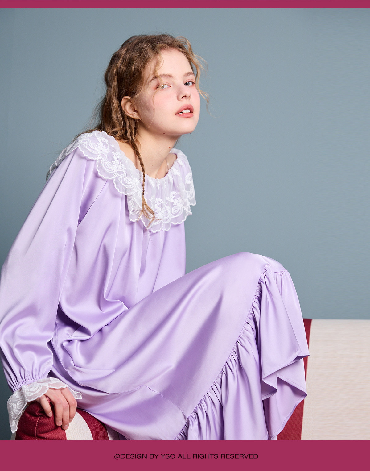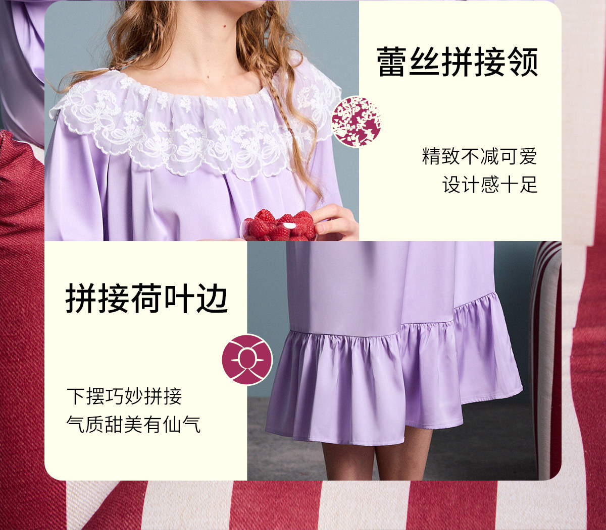 yso春季睡衣女甜美光滑柔软圆领套头长袖睡裙女性感家居服A