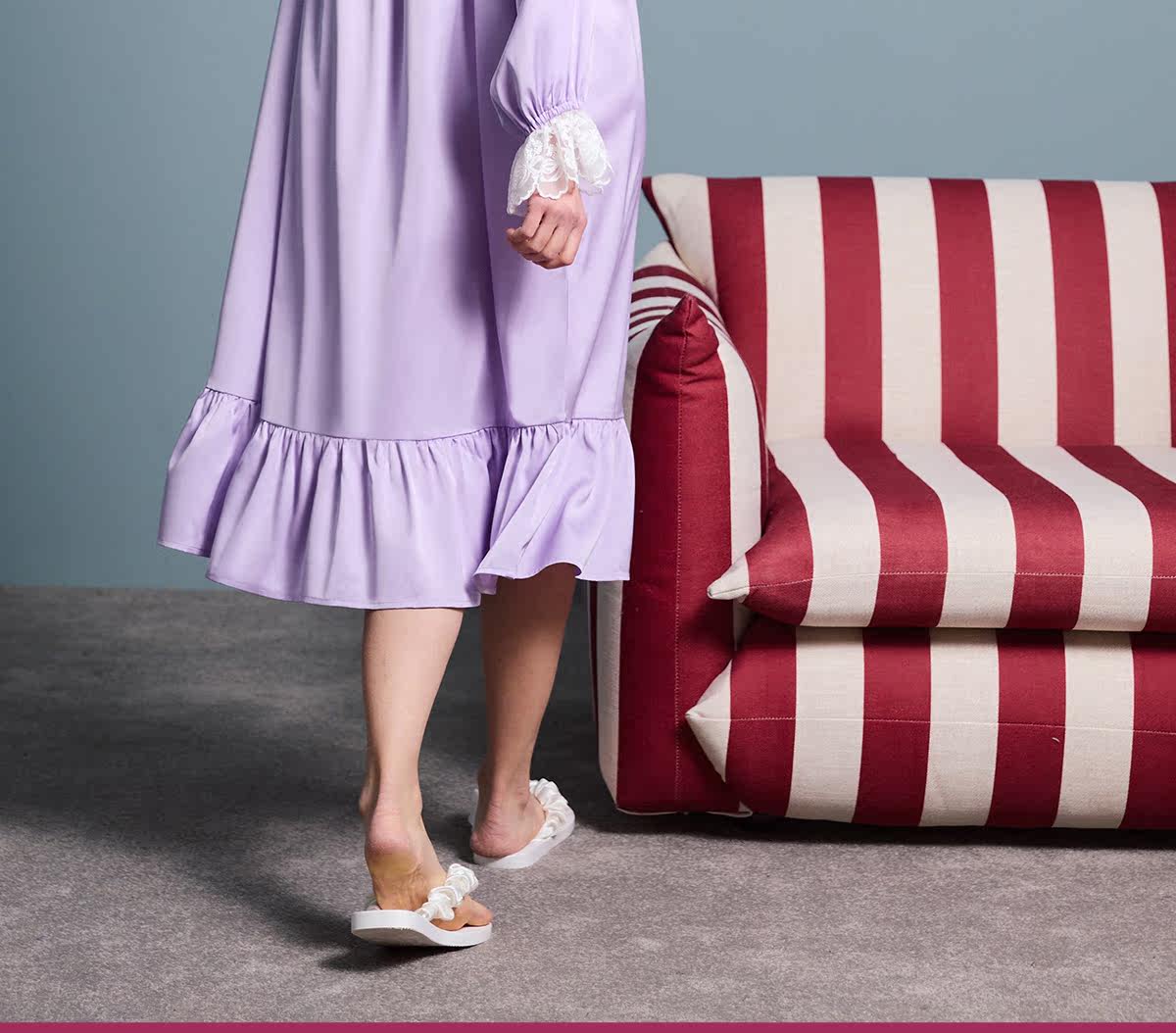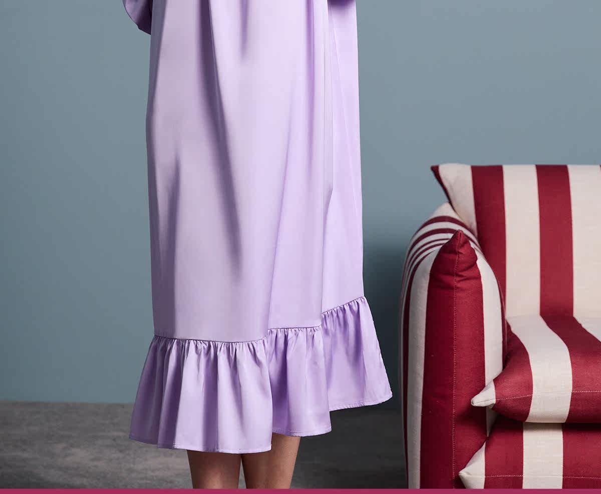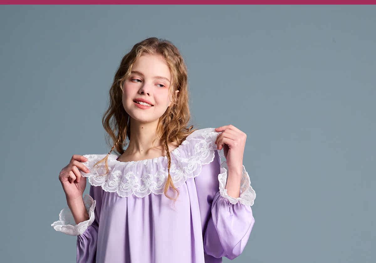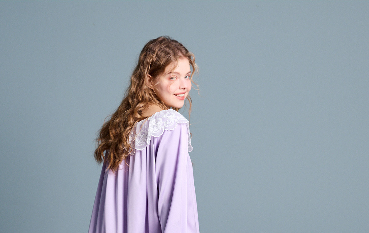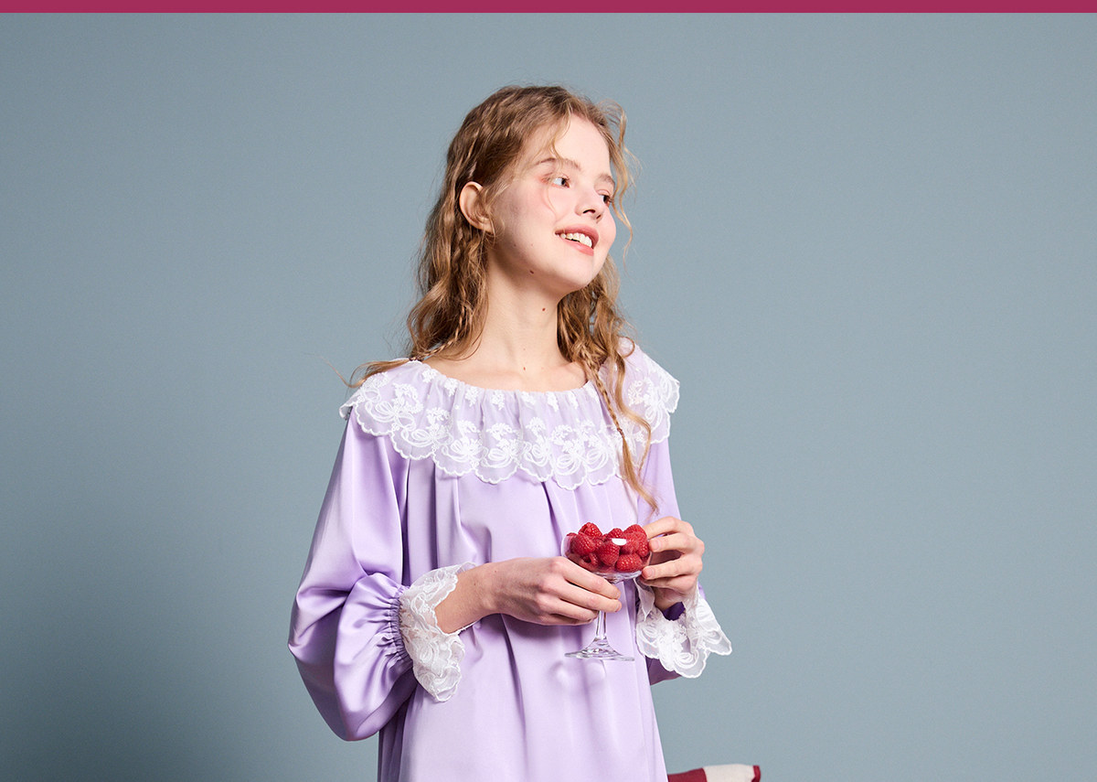 yso春季睡衣女甜美光滑柔软圆领套头长袖睡裙女性感家居服A