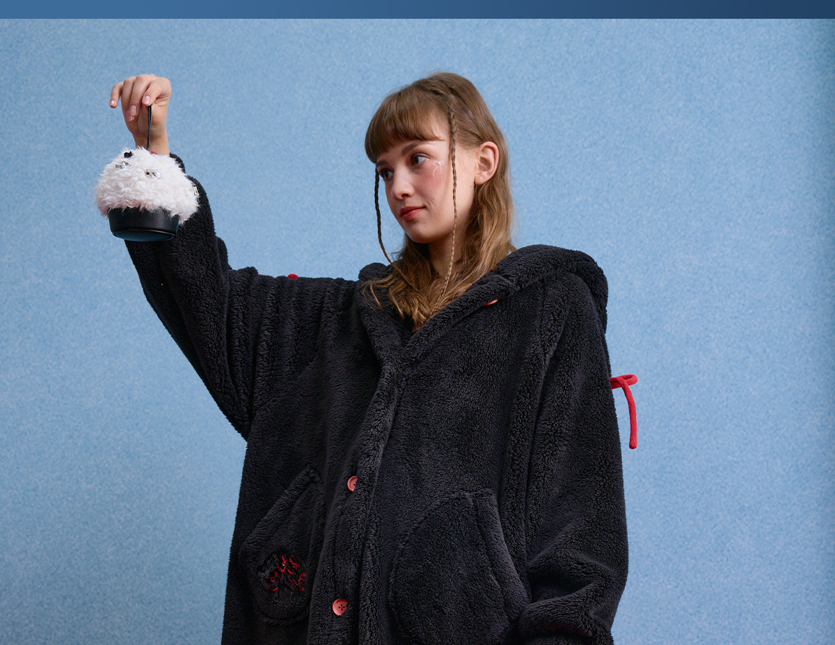 yso【礼物系列】珊瑚绒睡袍冬季新款睡衣女蝴蝶结睡袍甜美家居服D