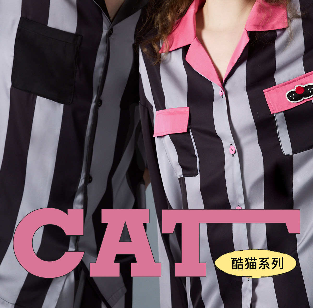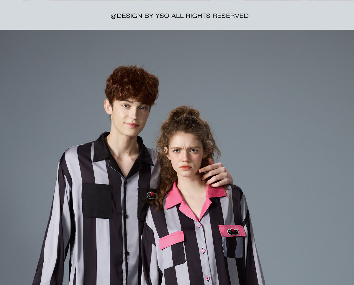 yso【酷猫系列】春秋情侣睡衣套装条纹男女高级感可外穿家居服A
