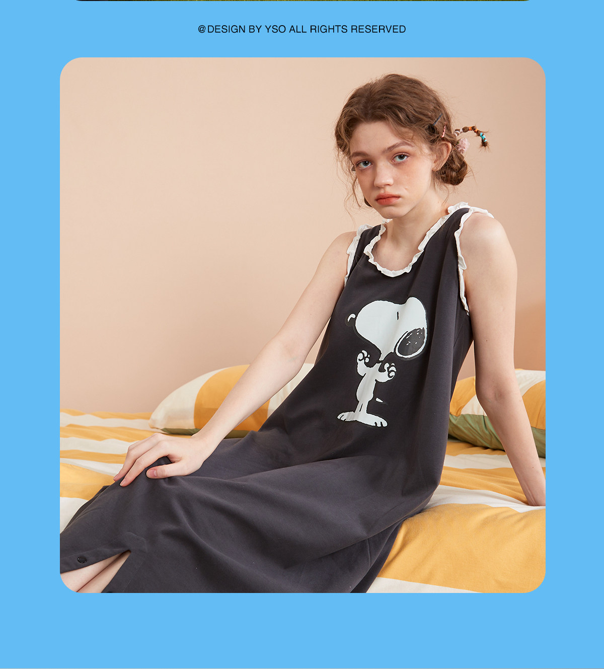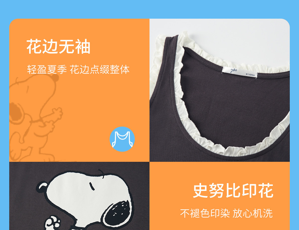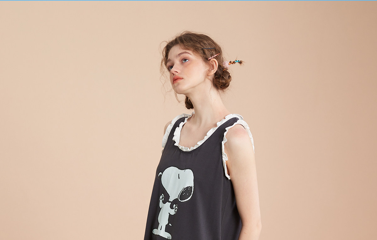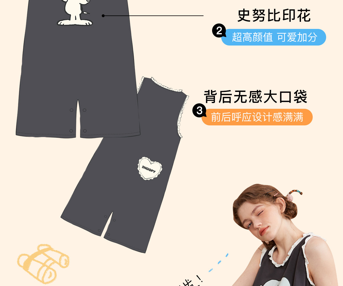 yso【史努比】睡衣女夏季纯棉吊带睡裙女连体衣感可外穿家居服B