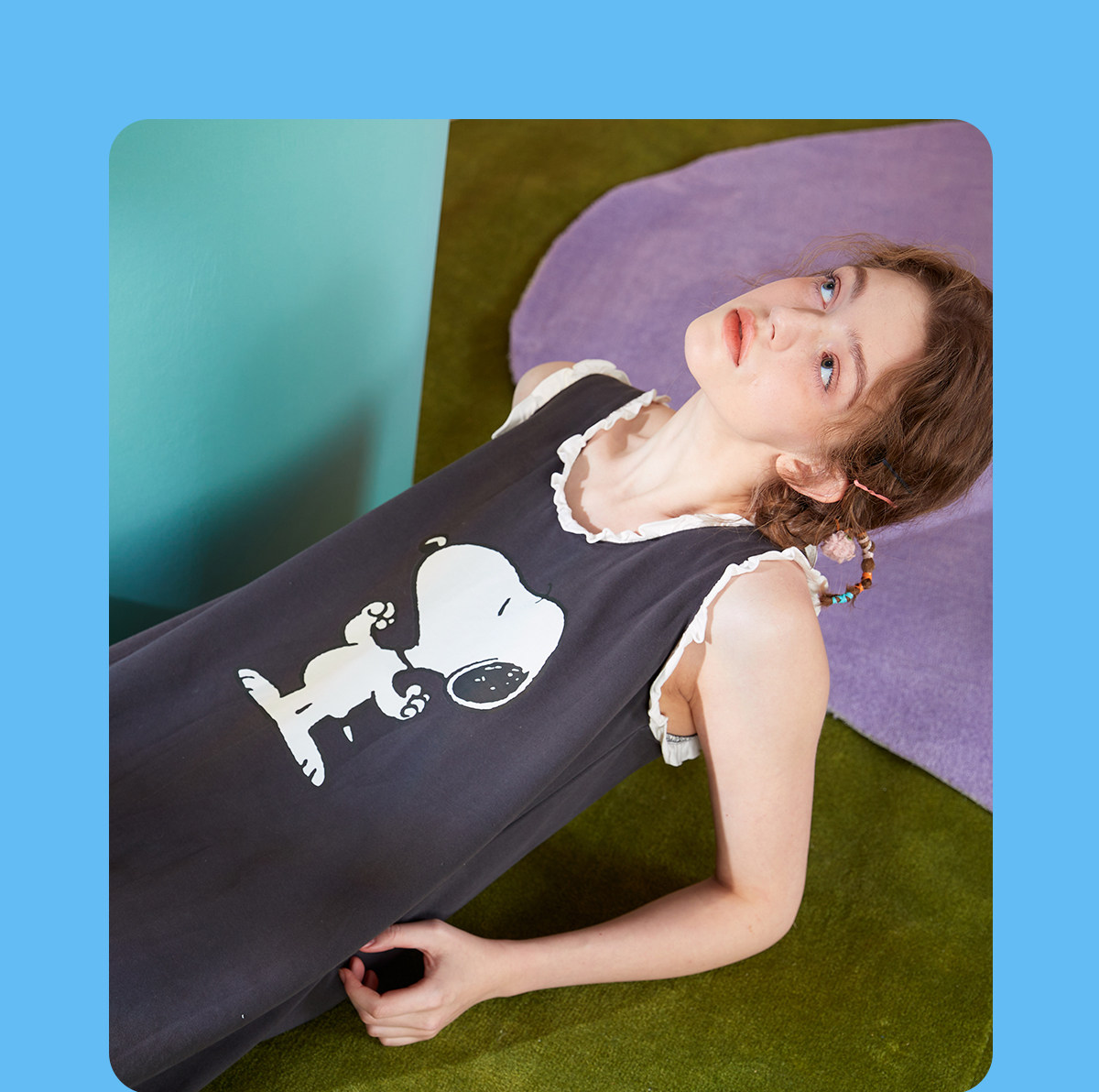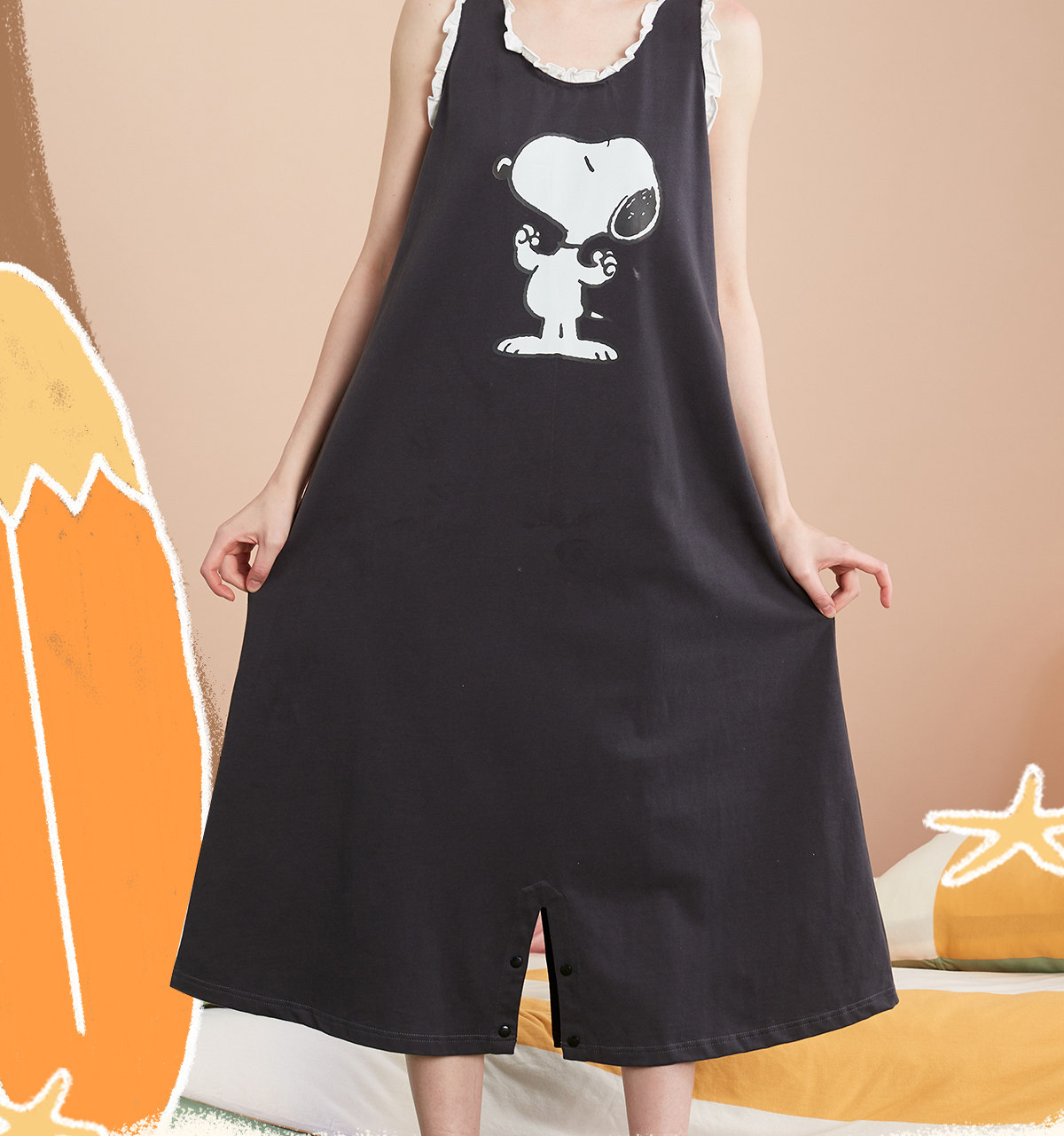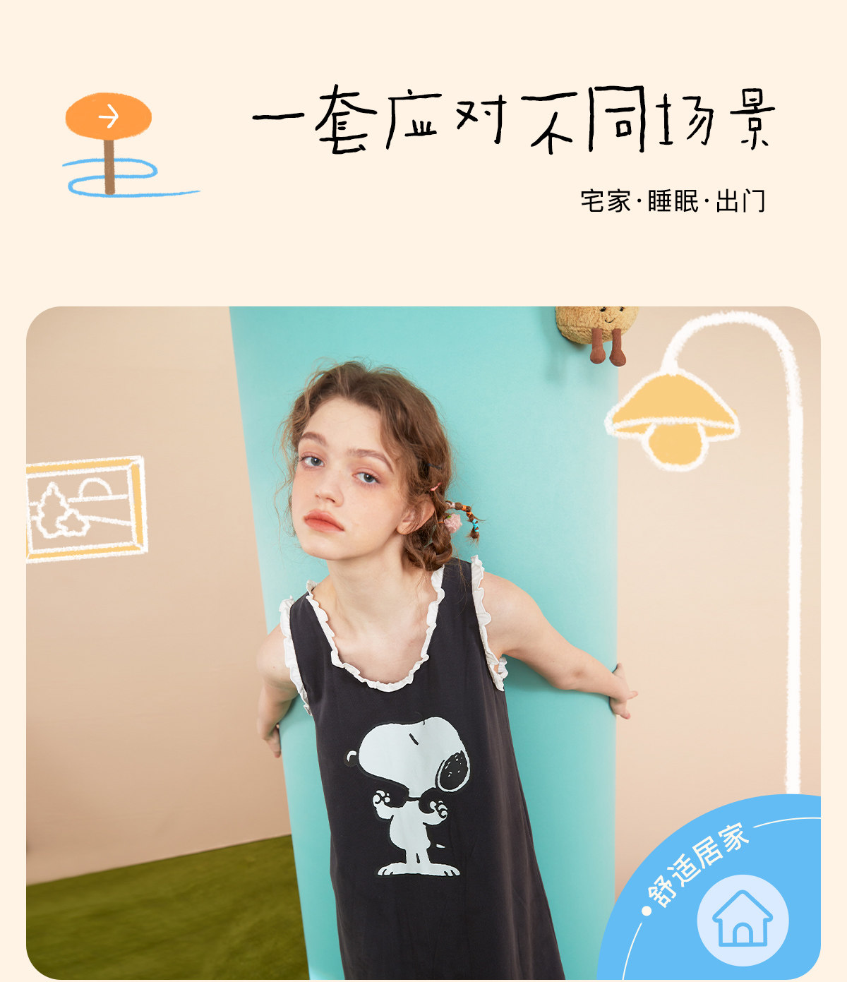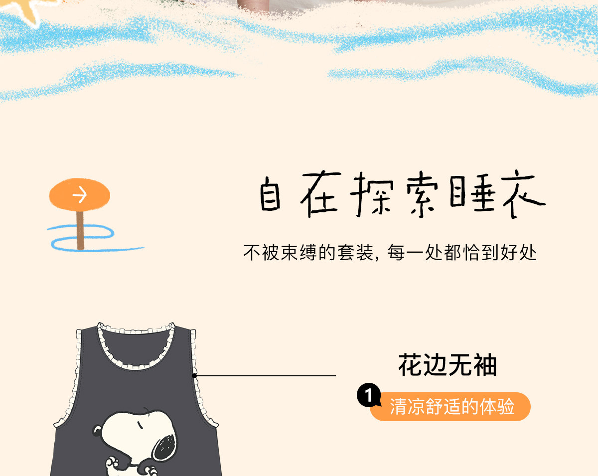 yso【史努比】睡衣女夏季纯棉吊带睡裙女连体衣感可外穿家居服B