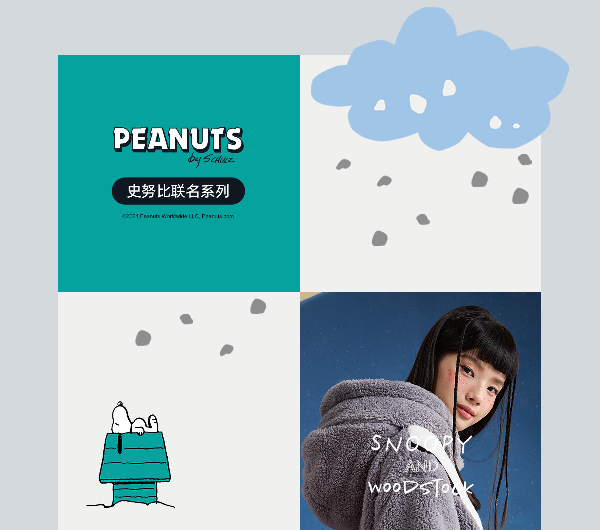 yso【史努比联名】睡衣女秋冬卡通可爱小狗珊瑚绒加厚连体睡衣D