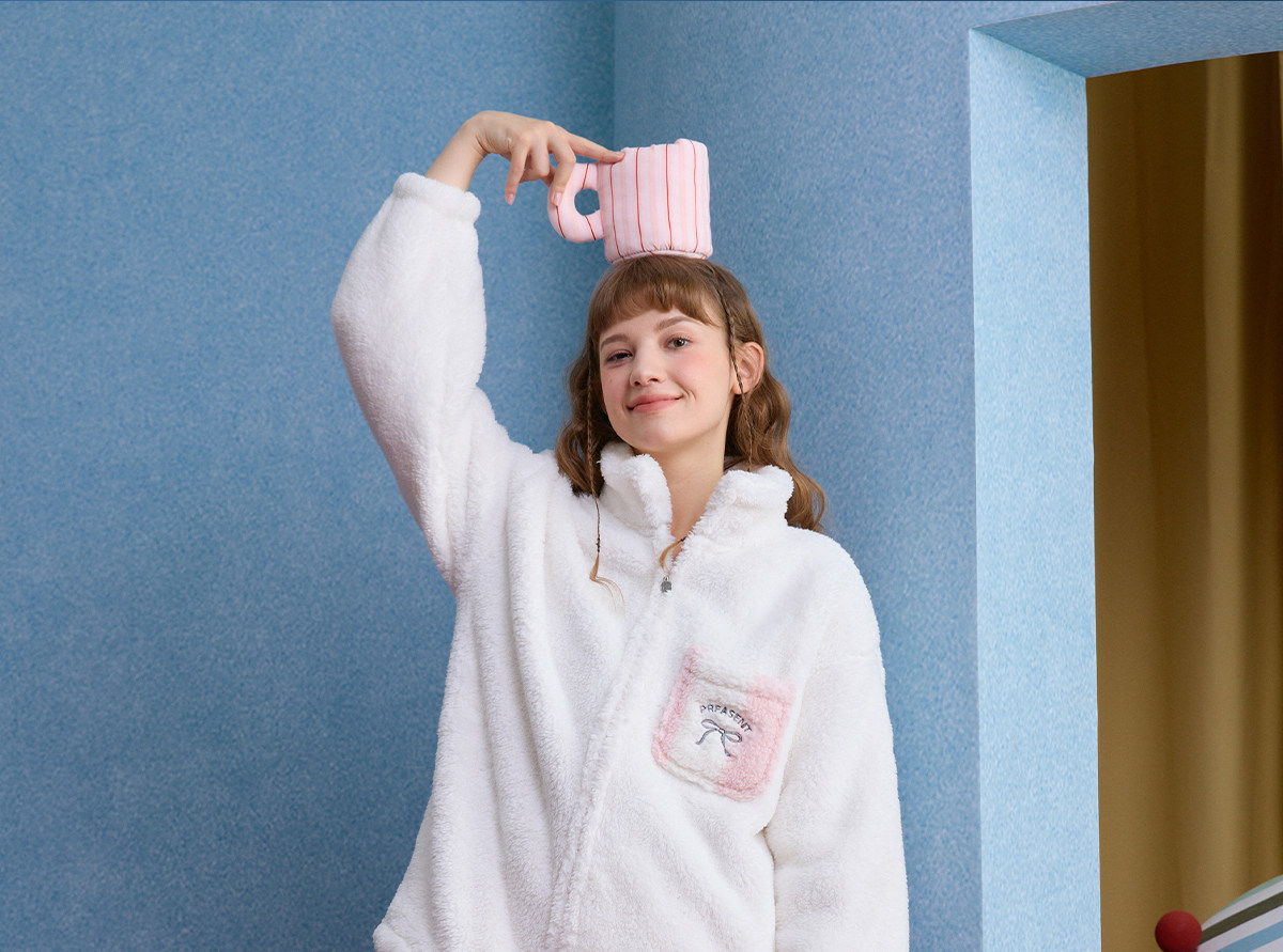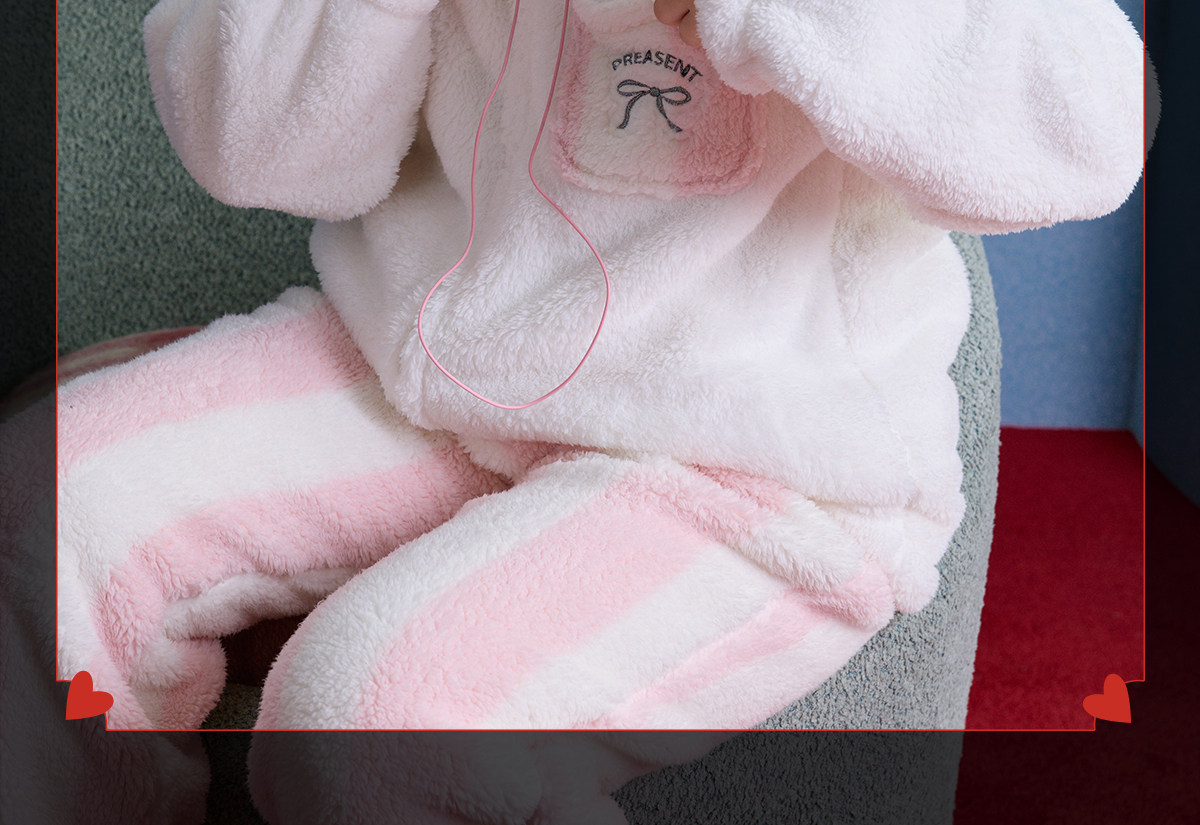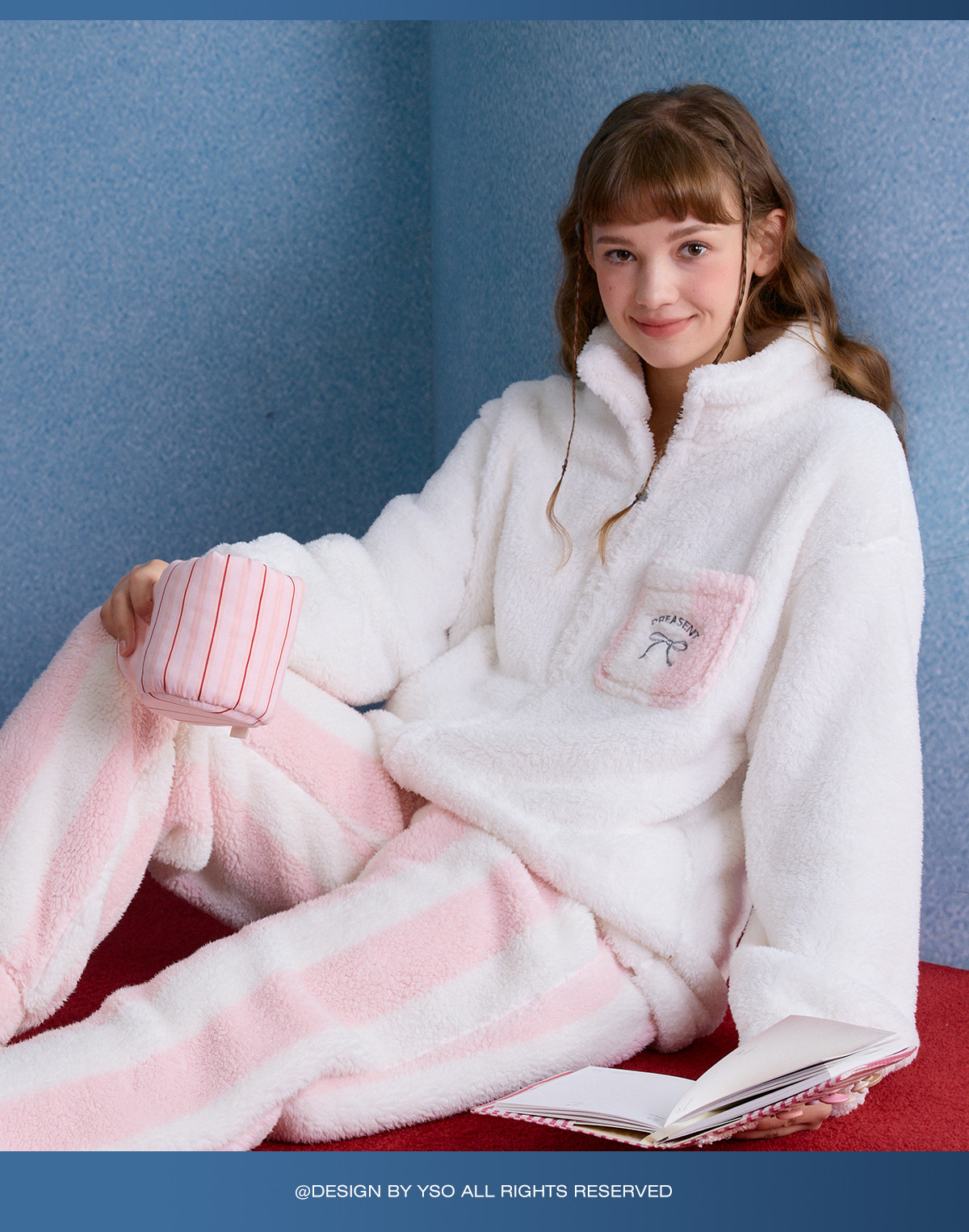 yso【礼物系列】睡衣女珊瑚绒秋冬暖绒套装甜美可外穿冬家居服D