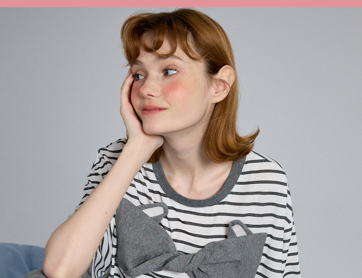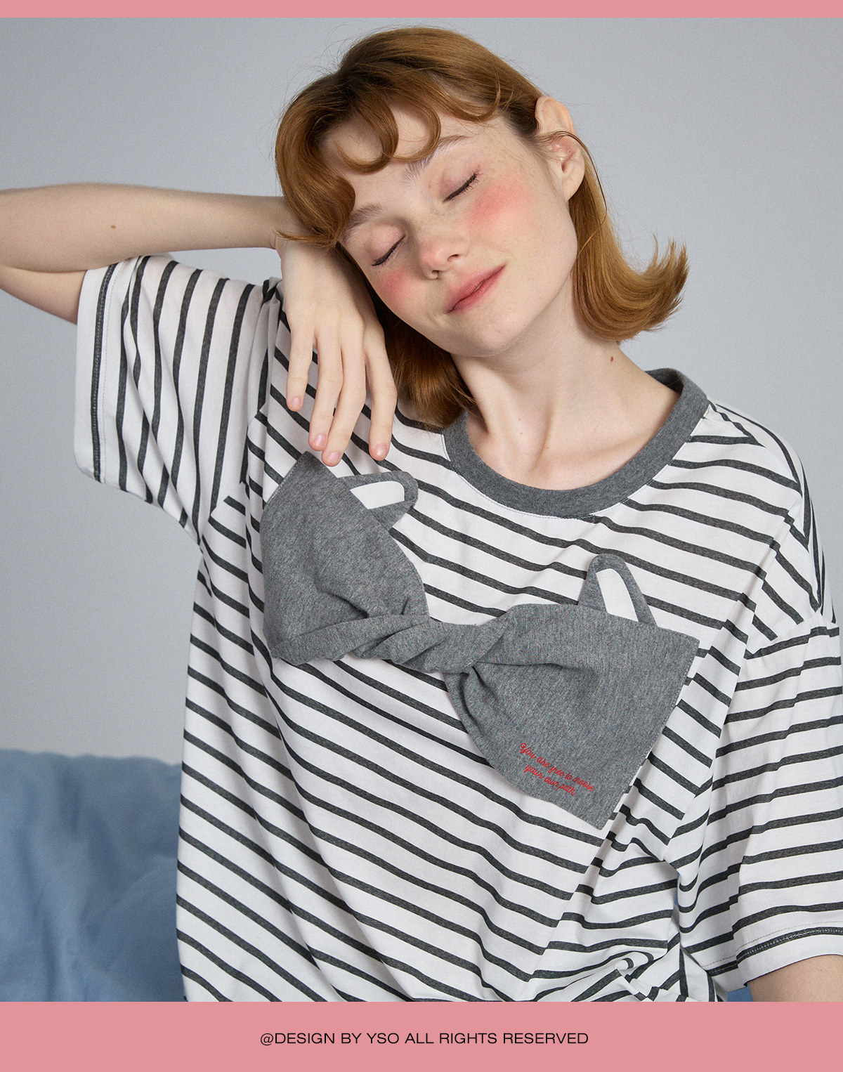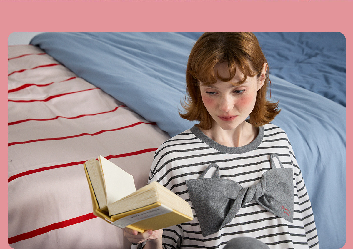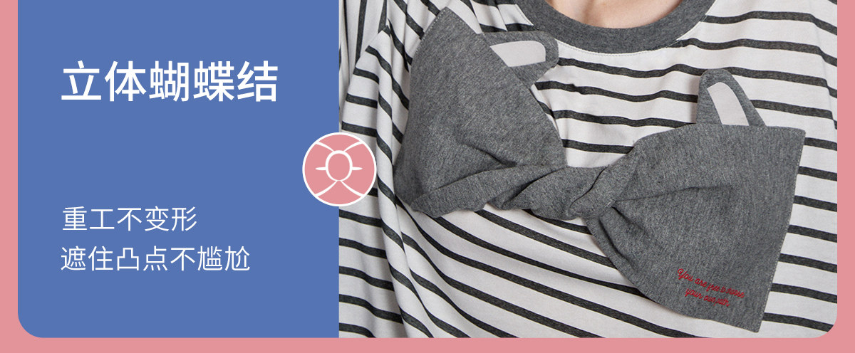 yso【礼物系列】睡衣女秋季蝴蝶结免胸垫长裤家居服可外穿套装C