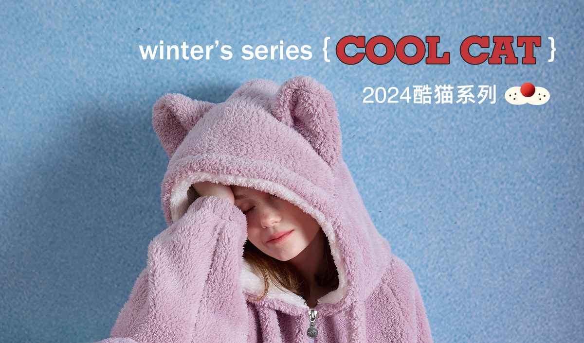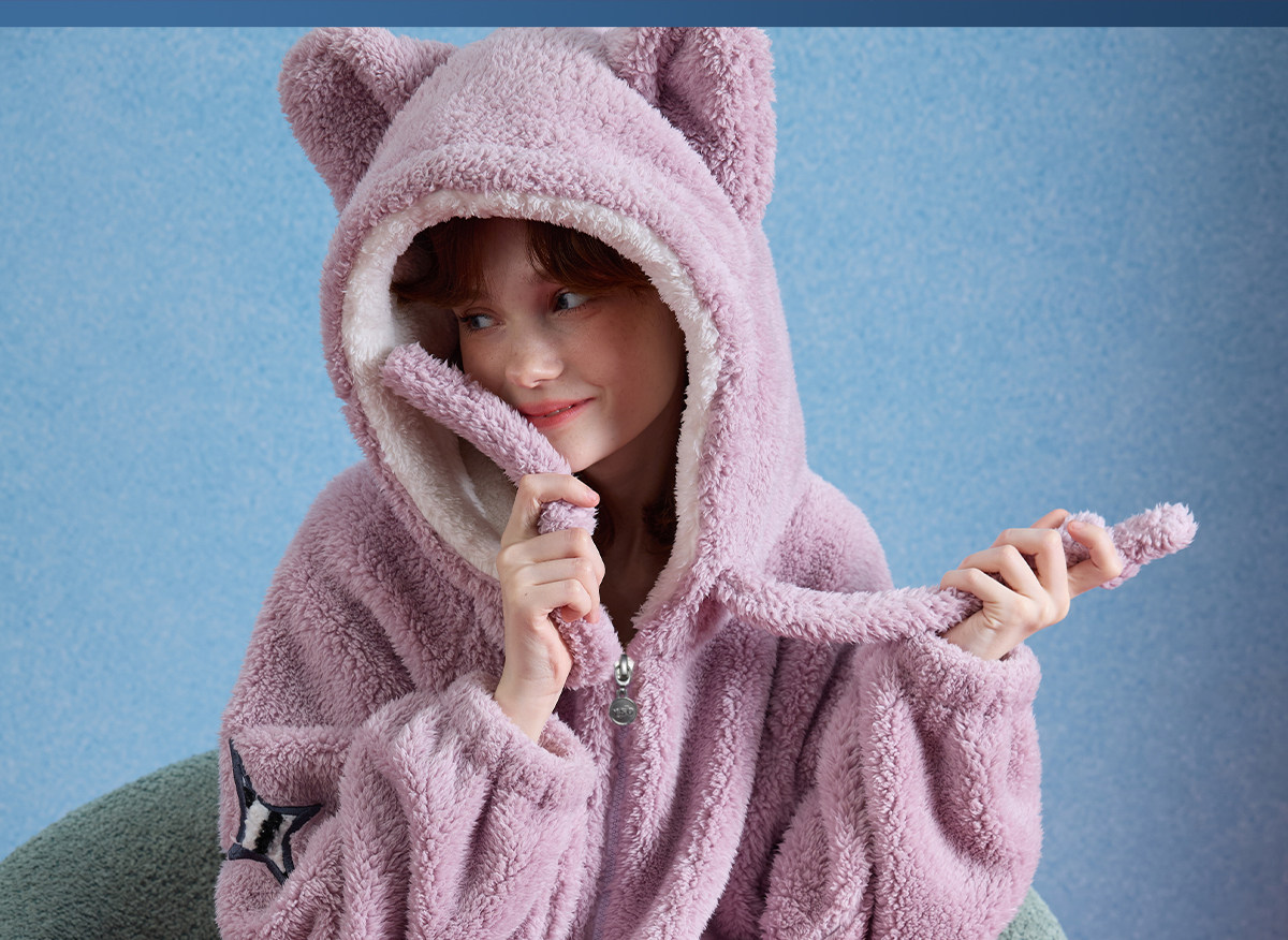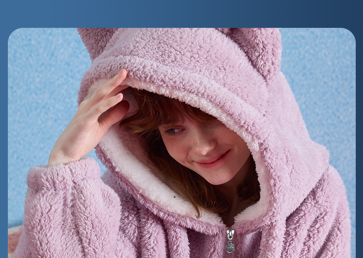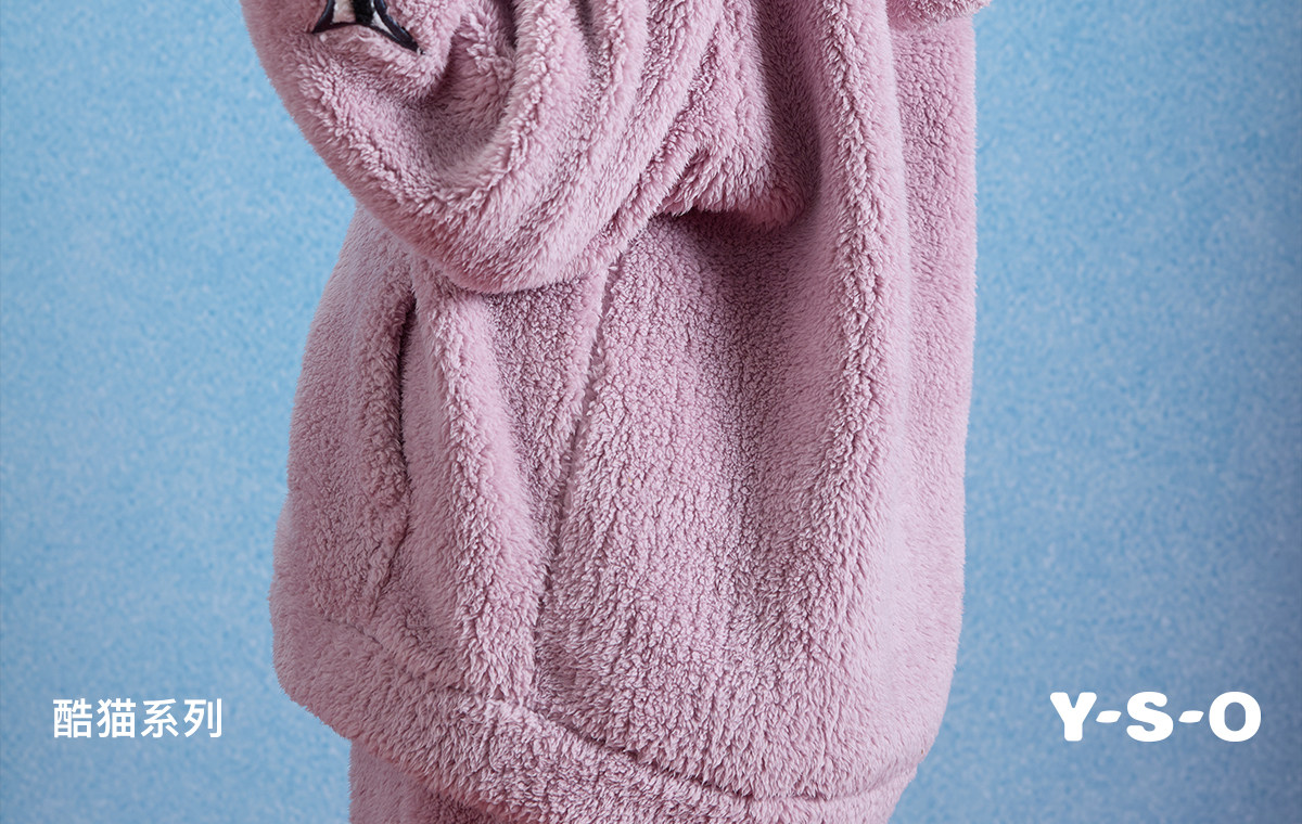 yso【酷猫系列】睡衣女秋冬加绒连帽保暖套装珊瑚绒可爱家居服D