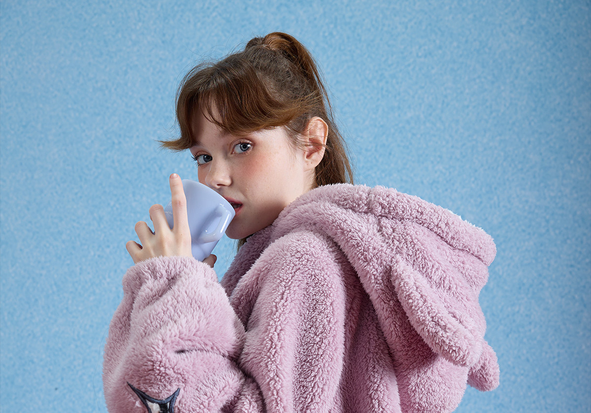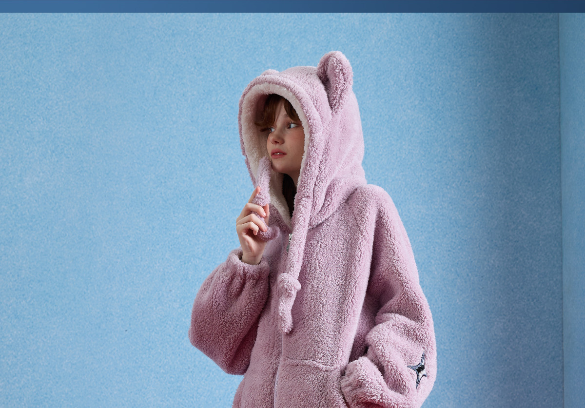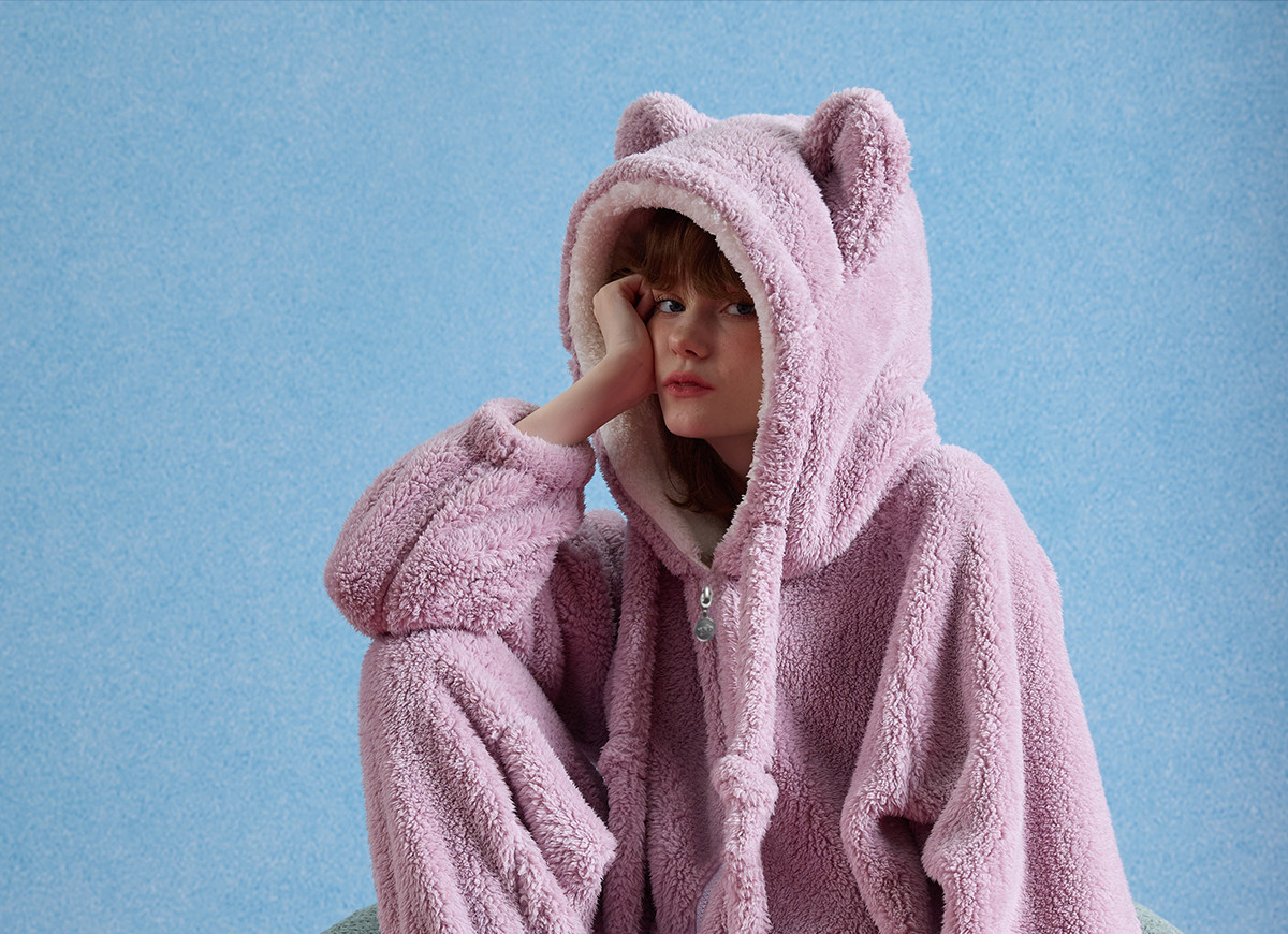 yso【酷猫系列】睡衣女秋冬加绒连帽保暖套装珊瑚绒可爱家居服D